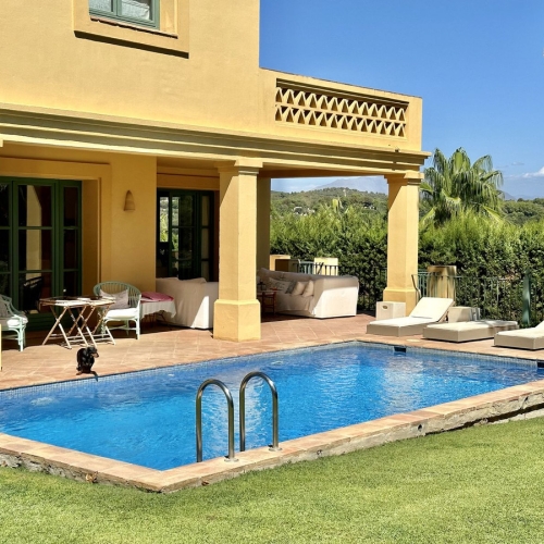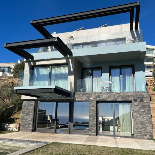 Discover this luxurious and elegant pool villa for sale in the exclusive urbanization Punta de la Mona, La Herradura, on the Costa Tropical. This spacious home offers five bedrooms with en-suite bathrooms and an additional guest bathroom. The well-planned garden spans over a plot of more than 800 sqm. Perfectly located, just an hour's drive to Malaga Airport and a 20-minute walk to the nearest beach.