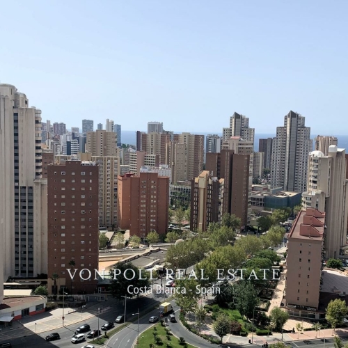 Exquisite accommodation with panoramic sea views in the famous Intempo complex located in Benidorm, Alicante province, on the Costa Blanca. This luxury apartment is a superb offer in one of the best residential complexes in the whole region, just a step away from Poniente beach in Benidorm.The apartment already holds a tourist license and has been 85% occupied for 2022 and 2023.Intempo is the tallest residential building in Spain and the second tallest in the European Union. It offers a wide range of amenities such as restaurants, cafes, fitness area, Sky Wellness, play area and much more. It is an ideal choice for those considering buying real estate in Intempo.The newest luxury apartments are located on the top floors of the INTEMPO tower on Poniente Beach in Benidorm. It comprises a spacious living room, separate kitchen and laundry room, two bedrooms, one of which is en-suite; and a 23m2 terrace with magnificent views of the sea and cityscape. The design, amenities and finishes of these apartments represent the pinnacle of quality on the market. All apartments have large balconies with access from the bedrooms and living room, providing complete privacy.EQUIPMENT:Every detail of these apartments, from the smallest to the largest, has been carefully considered to provide residents with a sense of luxury and comfort.The apartments are fitted with double glazing and low solar heat transmittance windows, ensuring comfortable temperatures all year round. Built-in closets with white lacquered doors and shelves. Each apartment has an individual air conditioning system with energy efficient heat pump. The kitchen is equipped with high quality white furniture, impact resistant worktops, stainless steel, electric oven, microwave, dishwasher, stove hood and glass ceramic hob, and refrigerator. The walls are painted white, the whole house is equipped with modern electrical equipment and the floors are covered with porcelain tiles.The apartment is located on a corner plot, providing a privileged view of the whole city. Owners can also enjoy the club area with common facilities such as a gym with a view, spa, massage rooms and a bar with freeshes.