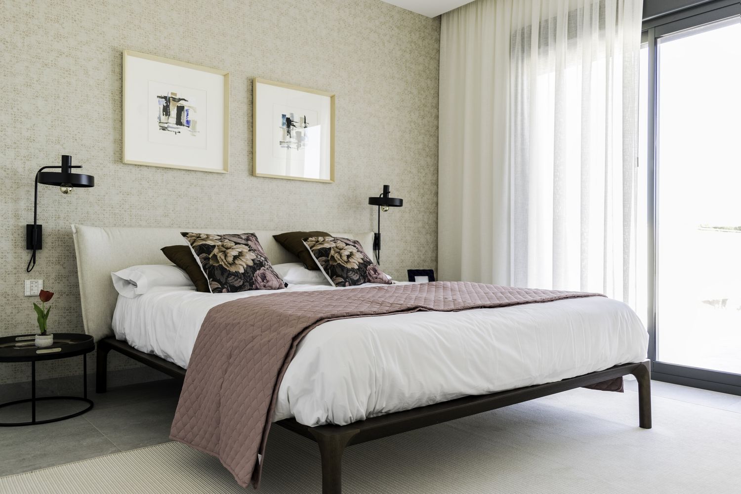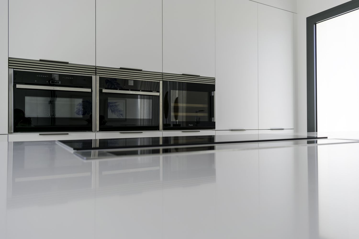 The villas have 3 bedrooms and 3 bathrooms, the kitchen will be designed based on customer premises. Fitted with base and wall units, equipped with a full set of high quality electric appliances “Siemens” ( fridge-freezer, oven, microwave, dishwashing and washing-machine with the highest eciency class)Fitted single sinkin stainless Steel, vertical single-hand lemixertap with osmosis system. “Silestone” quartz worktop & stylish extractor.