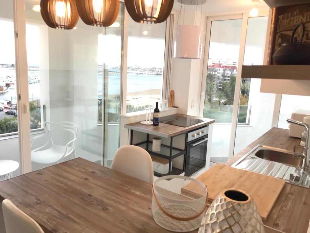 Impressive apartment with a marine air over the sea!Enjoy the huge terrace and the incredible views of the port of Torrevieja and the Mediterranean Sea.Located on the beach, in the city center, a few minutes walk from all services.SpaceThis large apartment of more than 100 square meters is literally on the Mediterranean Sea. Open the windows and enjoy the sea breeze! Completely exterior, all the windows look directly at the sea. The huge terrace that presides over the apartment is a joy for day and night with overwhelming views of the Torrevieja port and the Mediterranean. Do not miss the different spaces on the terrace to read, have a coffee, listen to music, and dine.. . You don't want to leave there!It has 3 comfortable rooms (2 doubles and one double) with beds for 6 people. You will sleep listening and watching the sea from your bed!The kitchen is brand new with everything you need: refrigerator, oven, ceramic hob, washing machine, utensils for 6 people, microwave, toaster, juicer, etc.The living room has a large sofa and television, in addition to the unsurpassed views that are repeated throughout the house.The apartment has a toilet and a complete bathroom with shower and bathtub.· Services and common areasWe rent the entire apartment and you can enjoy all the comforts we have for you.To take a bath, we recommend the quiet beach of the port and its services that are at the foot of the building. If you prefer a beach with a more lively atmosphere and waves, 5 minutes away is the best beach in Torrevieja: Los Náufragos. If fresh water is your thing, on the ground floor is the large community pool with sea views.