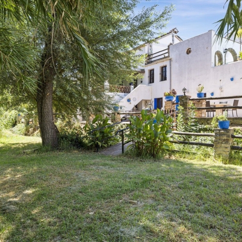 The well-kept house has 3 bedrooms, 3 bathrooms, kitchen with dining area, a bright and friendly living room with glas panels. One of the bedrooms with bathroom is separated from the main house. The outdoor area with partially covered terraces invites to linger in the sun or shade. The outdoor spaces are easy to maintain and have an automated irrigation system.