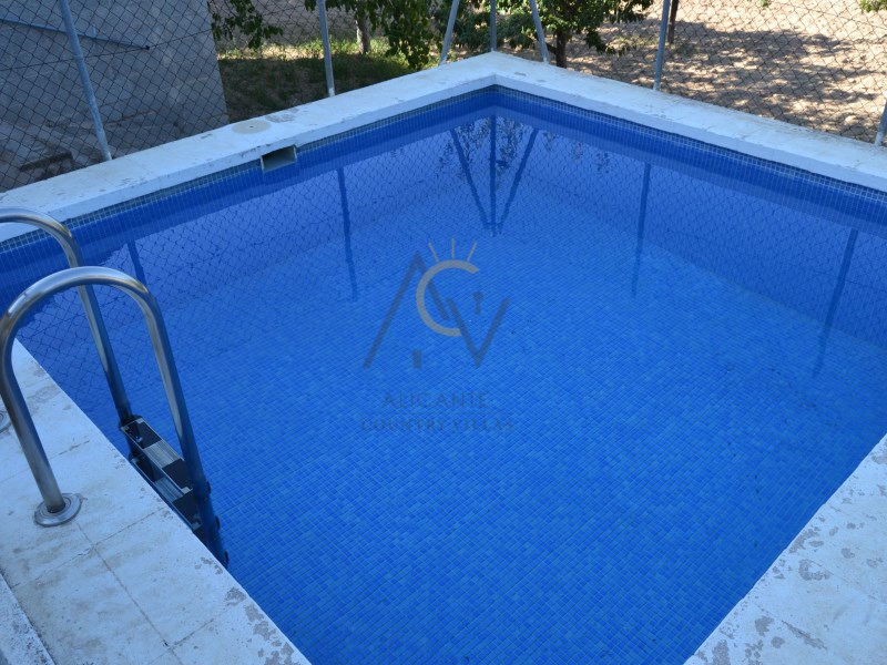 Alicante country villas is pleased to market this fantastic villa a few minutes drive from the city of Monóvar. This beautiful villa is located on a very generous plot of 8,000 m2 and is completely fenced with automated entrance door and alarm. The property is well situated in an elevated position enjoying total privacy, but within walking distance of the village centre. This villa with enveloping views of the gardens and the surrounding valley consists of porch, good sized living-dining room with fireplace, 3 generous bedrooms, 1 full bathroom with shower, fully equipped kitchen with pantry and cistern. There is a charming swimming pool, outdoor kitchen, garage, ample parking and beautiful gardens with a large selection of mature plants, palm trees and fruit trees. #ref:DNV0224