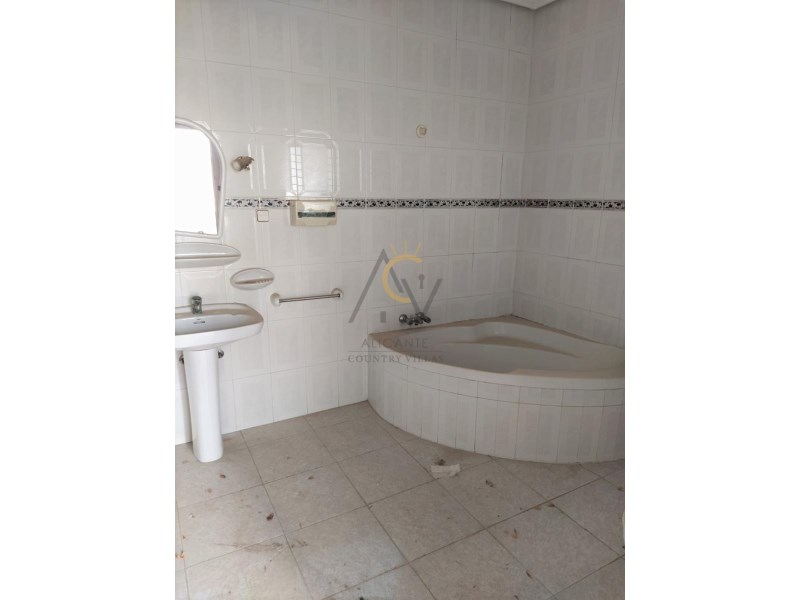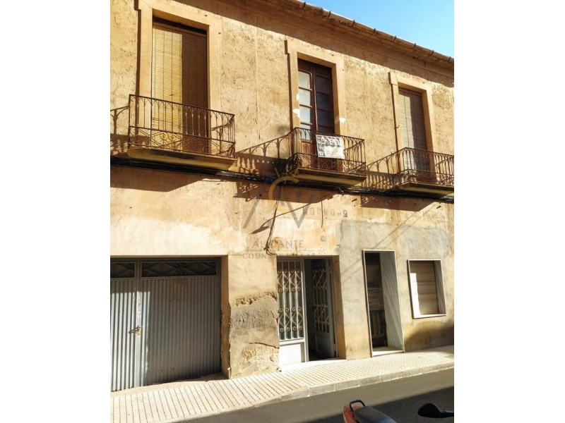 Alicante Country Villas presents this manor house located in the town of Novelda. Village house of two heights with commercial premises and garage, on a plot area of 390m² in the area of la glorieta. It consists of living / dining room, kitchen with pantry, five double bedrooms, two bathrooms with bathtub, storage room, laundry area, large interior patio and terrace. The wooden exterior carpentry with huge windows with balcony, high ceilings, original hydraulic floors, fitted wardrobes, two wood ovens and south facing. The house needs rehabilitation and has water and electricity The historic town of Novelda is very well connected and is only 25 km from Alicante Airport and the beautiful beaches of the Costa Blanca. #ref:DNV0361