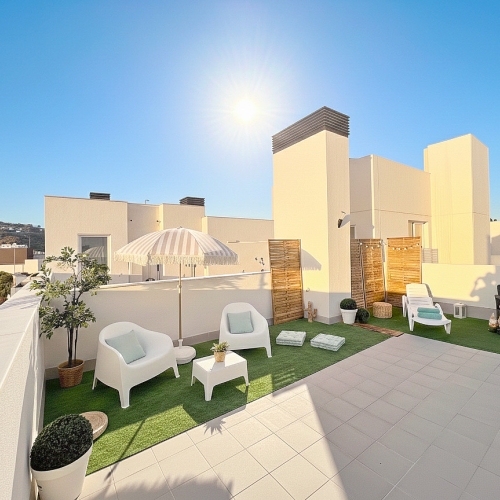 Alicante Country Villas is pleased to present this fantastic penthouse located in the centre of the town of La Romana and just 40 minutes from beaches and airport. The 90m2 house is located on the second floor, a penthouse with abundant natural light and a splendid 70m2 terrace. The house inside is distributed in a spacious living/dining room, a kitchen with a utility room, a master bedroom with bathroom, two single bedrooms and a family bathroom. From the lift landing we can access the main house or the completely independent terrace. The terrace is also accessed through a corridor from the house. It benefits from pre-installation of air conditioning with heat pump, lift, garage in another location. Don't miss the opportunity to visit it! #ref:DNV0558