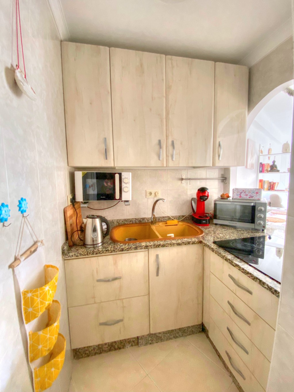 Discover this cozy studio located in an exclusive residential complex just 30 meters from the beach. The property features a bright living-dining area, seamlessly integrated with a practical American-style kitchen, and a full bathroom, offering a functional and comfortable space. Ideal both as an investment and for enjoying a charming second holiday home on the Costa del Sol. The complex boasts a stunning communal pool with sea views, spacious garden areas, and tennis courts. Additionally, it includes a shared storage room. Prime location, close to supermarkets, restaurants, and all essential services. With direct access to the highway, Málaga city is just 30 minutes away, allowing you to enjoy its vibrant cultural and leisure scene. The property has a tourist rental license. Don’t miss this unique opportunity! Contact us for more information.