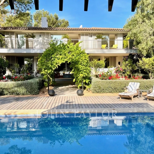 This modern villa is located in an exclusive area of Sol de Mallorca. It impresses with its special construction. Large bright rooms, large open living area with a special kitchen by Birgit Müller. The floors are equipped with a beautiful Gris Farci stone floor or with solid oak wood and underfloor heating. The 10x5m saltwater pool is located on the beautiful sun terrace and surrounded by the beautiful botanical garden. A 240 m2 roof terrace, 4 large double bedrooms with bathrooms ensuite and equipped with Grohe showers, stone, oak and glass elements, a spacious living room / dining area with the open American kitchen and a guest toilet. There are 2 parking spaces and a garage space.