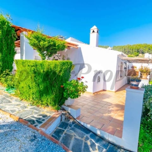 a large terrace area of about 350 square metres for sunbathing and an out-door shower next to the pool. The plot has an area of approximately 10 000 square metres, where there are 116 olive trees, 26 orange trees, 35 almond trees, 14 garrofera, apricots, etc., and one extra rustic field of around 4.300 square meters, both plots of land can be purchased separately.
