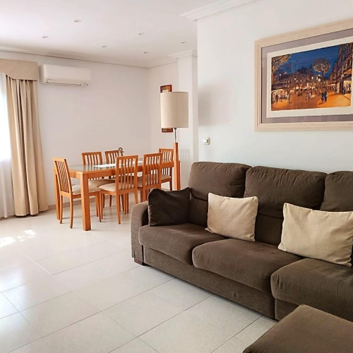 Bright sunny semi-new 3 bed apartment in new area ideal for young families. 20 mins from the beach and airport. Quiet pleasant area near one of the best green urban areas in Alicante. Has a large park and is on a street with abundant pine trees. The apartment is 86 meters squared consisting of: 3 bedrooms, office kitchen, 2 bathrooms, sitting room and glazed terrace with unobstructed views. Interior oak carpentry, stoneware floor, aluminum / double glazed windows and air conditioning. Complete urbanization with garden, pool and garage included. Building with lift, close to bus and TRAM stops, very good shopping center, medical centers and hospitals, near the University, several schools, supermarkets, areas and playgrounds for leisure and sports. Cool apartment in summer and warm in winter