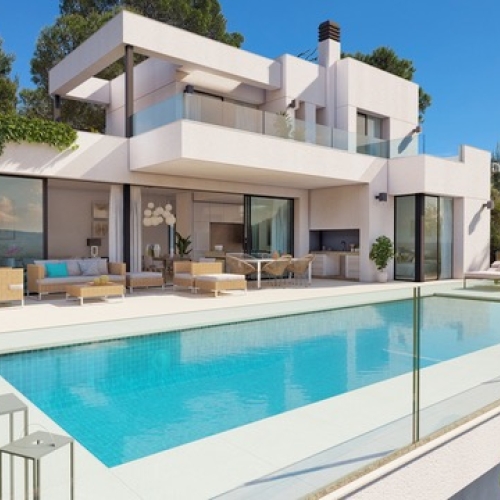 Modern great family house near the bay of Cala Pi with partial - sea view and view of the pool and garden.