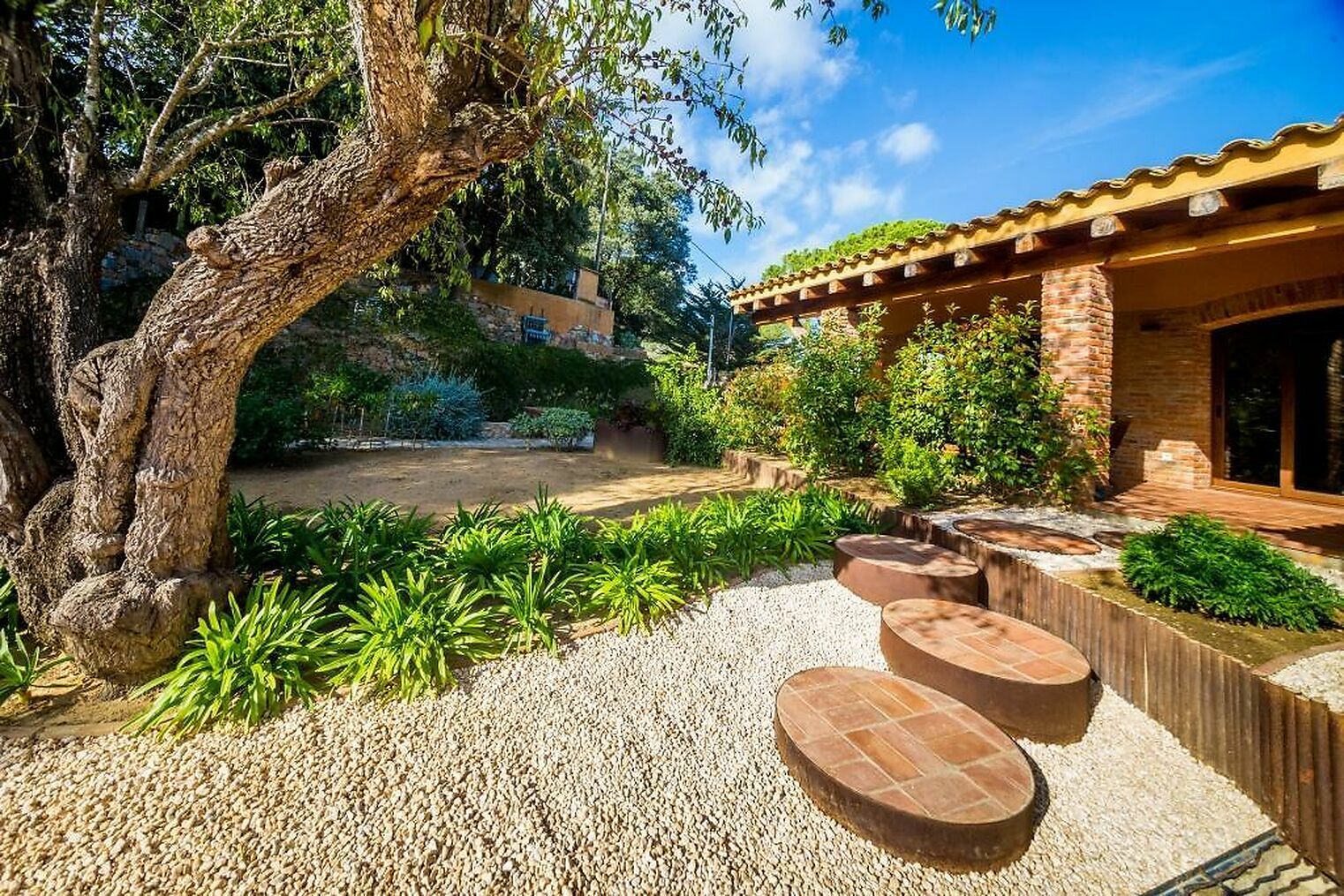 Beautiful rustic villa in Mont-Ras APIALIA PRODUCT: Located in a quiet environment, in a town with few inhabitants, and with privileged and clear views of the surroundings of Palafrugell and Mont-ras. Built in 2013, it is distributed in: Ground floor consisting of the main entrance, the garage, the impressive designer staircase to access the first floor, a living room, laundry room, a toilet, a home cinema room and/or gym, meeting room, two offices, a bedroom with a private bathroom. This floor has an area of 250.67 m2 that allows the construction of a completely independent apartment or two small ones. On the upper floor, we find: the dining room - living room and kitchen - office, all integrated into a single space, guest bathroom and three bedrooms with private bathrooms. All rooms are exterior, bright and with views. From the living room you can access the outside, where you will find the porch, the pool and the garden with a water well. Geothermal energy for the use of hot water and underfloor heating with heat-cold. There is another secondary road to access the house, private and very quiet, surrounded by nature. Don't miss the opportunity to live in a unique place.