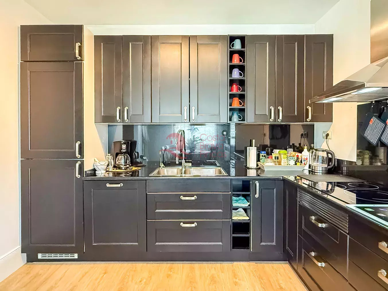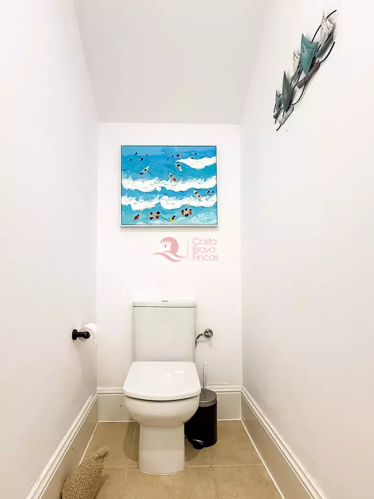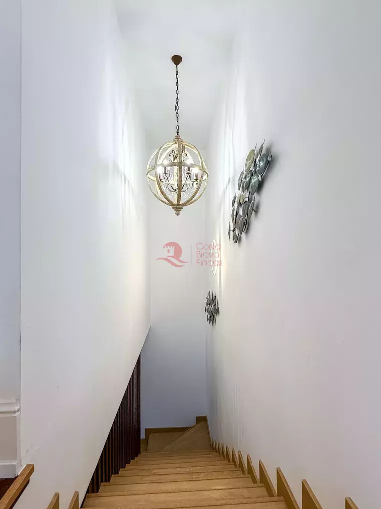 Beautiful villa with pool and solar in Calonge The house was built in 2005 on a plot of 492m2 and is distributed over 2 floors. Upon entering, we find a spacious entrance with access to the bedrooms and bathrooms. On this floor, there are 2 double bedrooms with a shared bathroom with a shower and a master bedroom with an en-suite bathroom with a bathtub. On this floor, there is also access to a large room that can be converted into an additional bedroom. Through the hallway, you can go down a floor via the stairs, where there is a spacious living room with a fireplace and air conditioning. Large windows provide plenty of light and give access to the garden. On this floor, there is another bedroom currently used as an office and a bathroom with a shower. The large kitchen is fully equipped and also has access to the garden. In the garden, there is a large covered terrace, a chill-out area, and a pool. Currently, there are 16 solar panels installed, and there is a solar panel system for hot water. This ensures that the energy consumption in this house is very low. For the best houses for sale in Calonge and the Costa Brava in general, please contact Costa Brava Fincas.