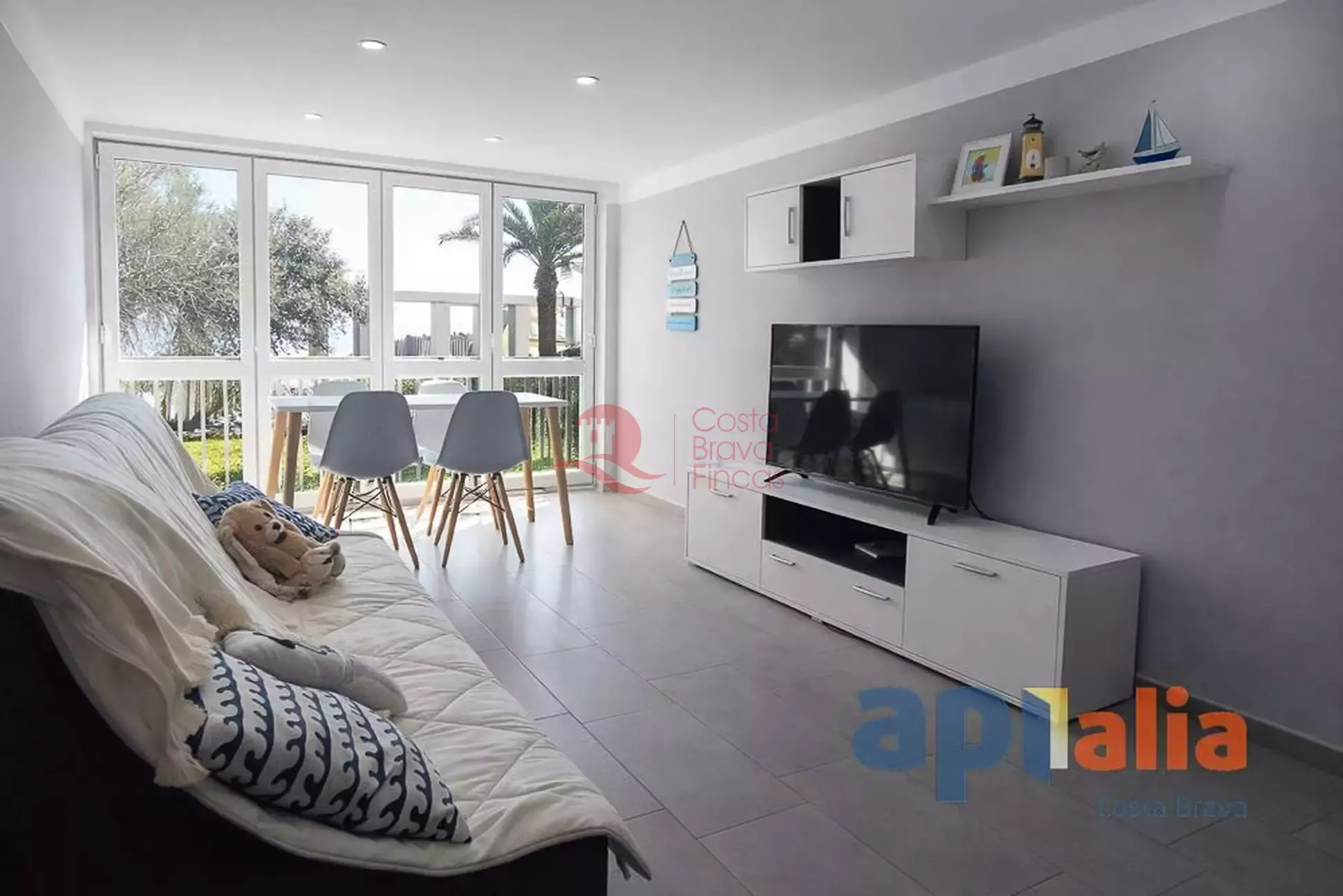 Frontline apartment for sale in Platja d'Aro EXCLUSIVE PROPERTY FOR SALE APIALIA COSTA BRAVA. Apartment on the beachfront in Platja d’Aro, with a tourist license and southeast orientation, ideal for enjoying the sun as well as the views. Direct access to the beach from the gardens of the community. The property has been fully renovated and consists of two floors. It features a fully equipped kitchen open to the living-dining room with a large window that completely opens to the outside with sea views. On the upper floor, there are two double bedrooms, a full bathroom, and a toilet. Additionally, it includes an outdoor parking space within the community and concierge service throughout the year. Community with elevator. An excellent option for both investment and enjoying the Costa Brava. For the best apartments for sale in Platja d'Aro and the Costa Brava in general, please contact Costa Brava Fincas.