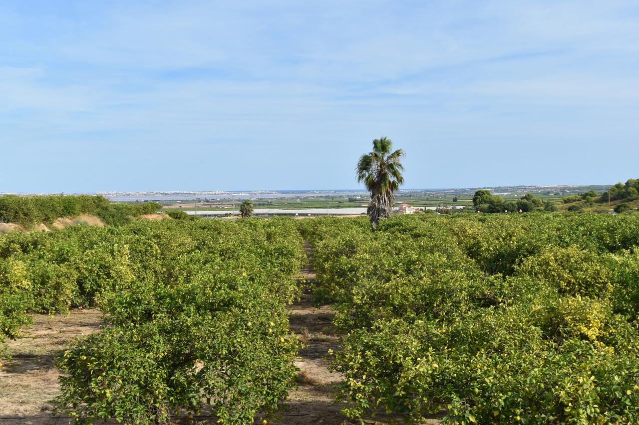Fantastic spacious villa in green surroundings with proximity to popular golf courses. The location is quiet, private and offers fantastic views of orange groves, the salt lake and the Mediterranean! We reach the property via a pedestrians gate or a wider gate to park the car on the plot. At the front there is a very spacious terrace with pool. We enter the house and arrive in a bright, spacious living room with open plan dining area. Right in front of us we find the separate well-equipped kitchen. On this floor there are also two bedrooms, two bathrooms and laundry room. We go upstairs and find another 3-4 bedrooms and 3 bathrooms. The main bedroom has a jacuzzi, walk-in shower, toilet and balcony with stunning views. Upstairs we find the roof terrace and another room.