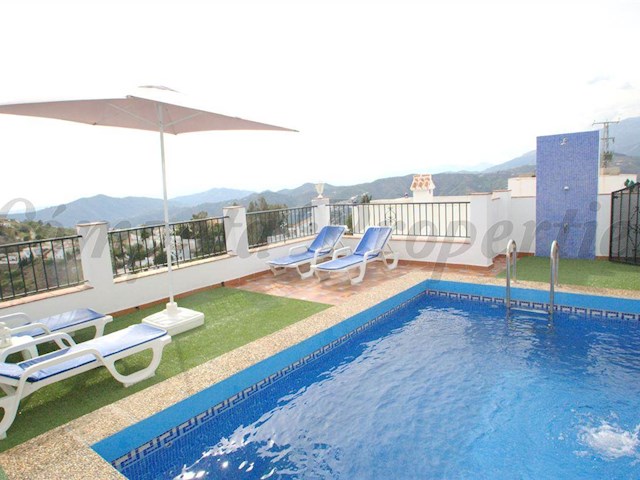 Only winter rental available. Charming holiday villa with private swimming pool in Spain. This villa is located within 2 kilometres from the village of Cómpeta and it has easy access mostly by concrete road. From the terrace it is possible to enjoy wonderful views to the white village of Cómpeta, Canillas de Albaida and Corumbela; the mountains, the valley and the Mediterranean. The villa has got a beautiful covered front terrace and a side terrace with BBQ making this a perfect space to have meals or relax on the shade. There is also plenty of space where to sunbathe and a cosy 5x3 metres swimming pool. The inside of the property comprises a living-dining room with a wood burner to warm up in winter, a fully equipped kitchen with a breakfast bar, 2 double bedrooms and a family bathroom with bathtub. At the back of the property there is a carport to park the car on the shade. This country property has the perfect location if you are looking for peace and tranquillity, the ideal place to unwind and relax and to reconnect with the beauty of nature.