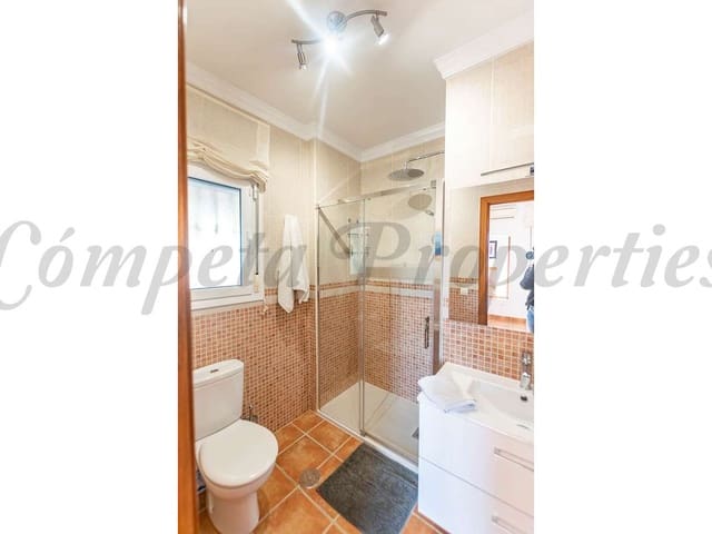 This fantastic country property is set in a peaceful area but less than ten minutes drive from the village of Cómpeta. The property has beautiful views over the surrounding verdant countryside and up to the Sierras. The living area of this superb property comprises an open plan living area with wood burning fire in the corner, fully equipped kitchen, guest toilet, utility room and two double bedrooms, both of them with ensuite facilities. The exterior of this country property is very attractive with flowers shrubs and trees. The swimming pool terrace also has a barbecue and outside kitchen area. This is the ideal place for spending ones time, sunbathing beside the pool, or relaxing with a good book under the shade of the pretty pergola. Air conditioning, gas central heating and double glazing make the property comfortable all year round.
