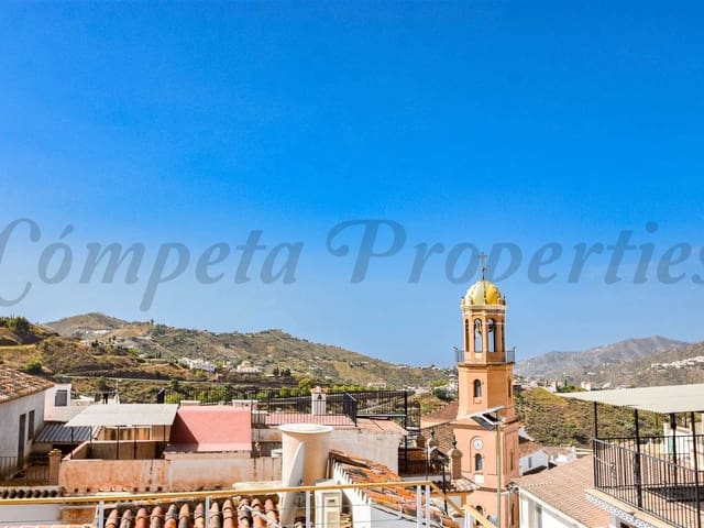 Spacious townhouse in the centre of the village of Cómpeta that offers a fantastic oportunity to create a B&B. This property comprises an entrance hall, a cellar/bodega with an internal charming patio and a large storage room; a bright living/dining room with Juliet balconies, a kitchen, a sitting room, 2 double bedrooms, 2 single bedrooms and a bathroom. This property benefits of a small terrace and a spacious roof terrace from where it is possible to enjoy the fantastic views of the church tower and down to the sea.