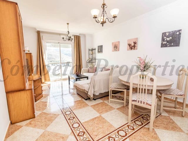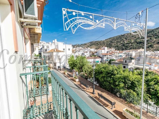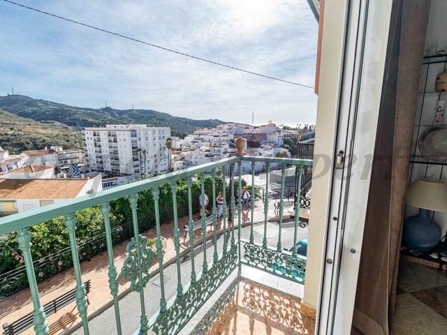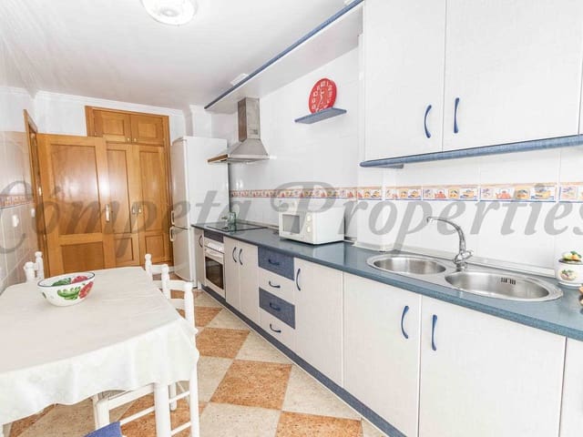 Long term rental apartment in the centre of Torrox, just before the main square with sea & town views. 3 large bedrooms, bathroom, large well equipped kitchen and a beautiful spacious lounge dining room. Located on the first floor, as you enter there is a long hallway, turning right, the first room we meet is a large bedroom with a double bed which has windows onto the interior patio, the next door is the entrance to the interior patio, where there is a washing machine. After the patio we have another double bed room with windows onto the patio. To the left of this bedroom we have the smaller bedroom, with a single bed, which has a window facing North, going back along the passageway, opposite the patio there is a full bathroom, with a bath tub. The kitchen is to the left after the main entrance hall with an oven, hob, extractor fan, fridge-freezer, plenty of cupboards and work surface, there is also a larder on the back wall. At the end of the kitchen French doors lead you onto a Juliet balcony facing East with wonderful views and affording plenty of light and air. The lounge-dining room faces the same way as the kitchen and again it has French windows and wonderful East facing views, over the park, the town, over fields, hills and to the sea. The rental is paid monthly up front, plus water and electricity (no gas in this one). It sleeps a maximum of 5. The owner does not allow pets.