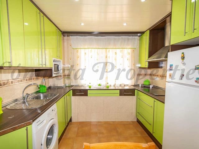 Inside, the spacious living room flows seamlessly into a fully fitted kitchen, creating a comfortable and functional living space. A staircase leads down to the three bright and cozy bedrooms, accompanied by a convenient guest toilet and a storage room.