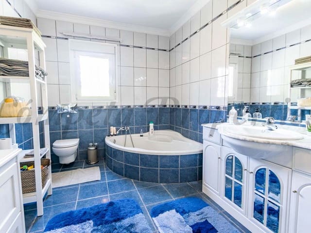 This property has a main house and a separate apartment located under the property. It has 4 bedrooms plus a sofa bed providing ample amounts of space for many guests. It has 3 bathrooms one of which is a family bathroom having access from both bedrooms. There is a large pool with brand new anti-slip tiles located all around. The property also comes with premium sun loungers, a pellet burner for the winter, modern A/C, a summer lounge and a large garage.