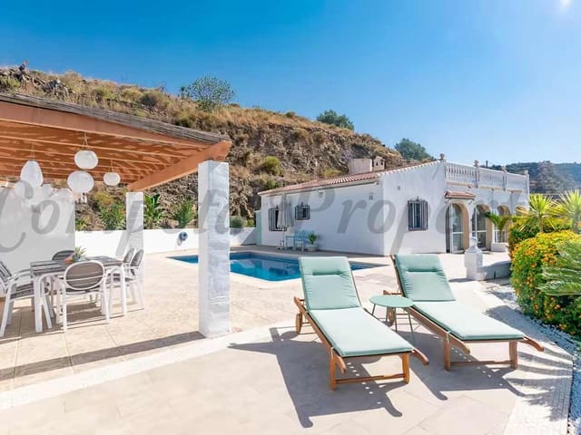 Set atop a hill, this villa offers breathtaking panoramic views of the valley and the sea, surrounded by the natural beauty of rural Andalusia. The path leading up to the villa winds through olive groves, and once you reach the top, the serene surroundings offer a peaceful retreat.
