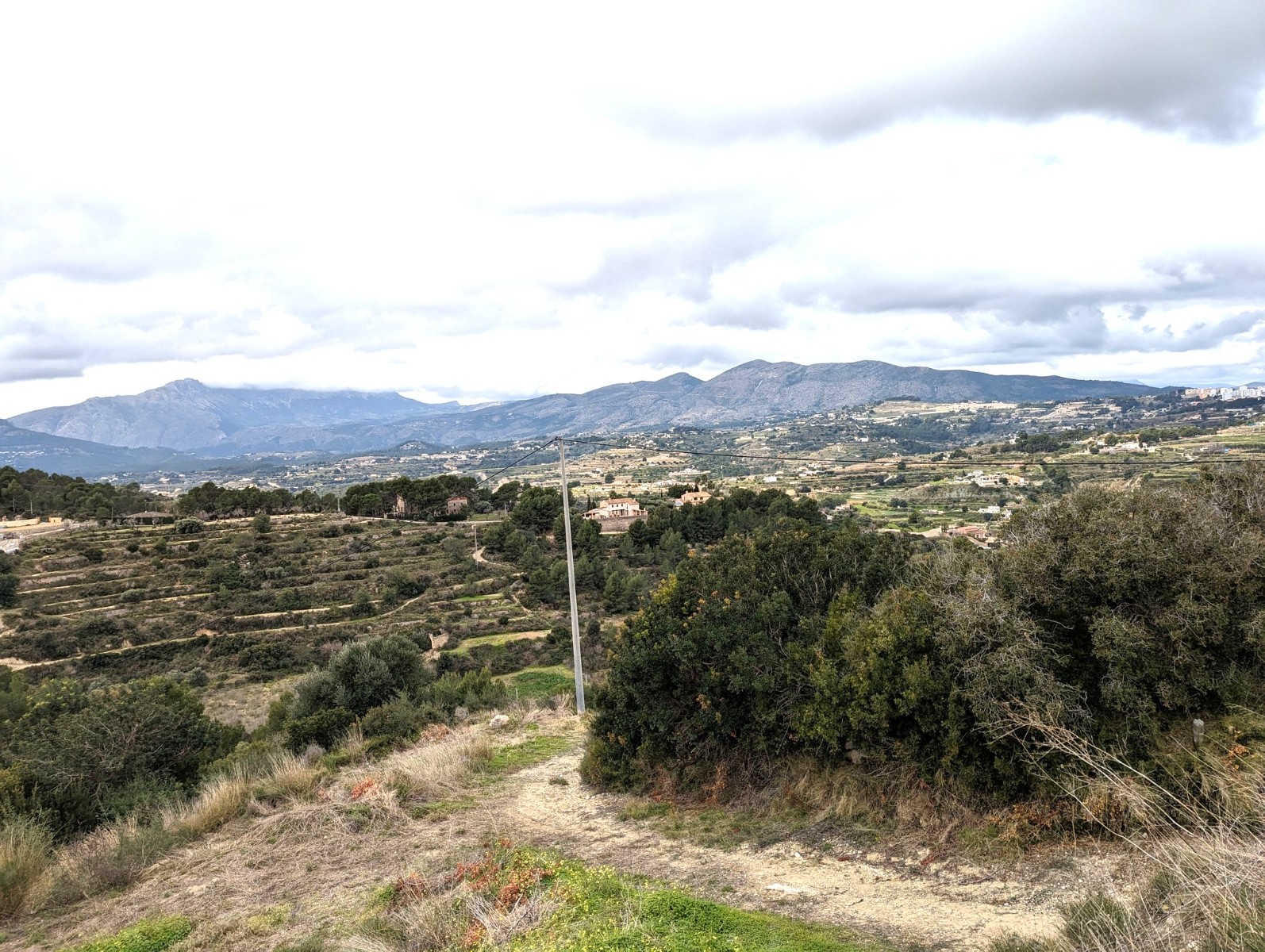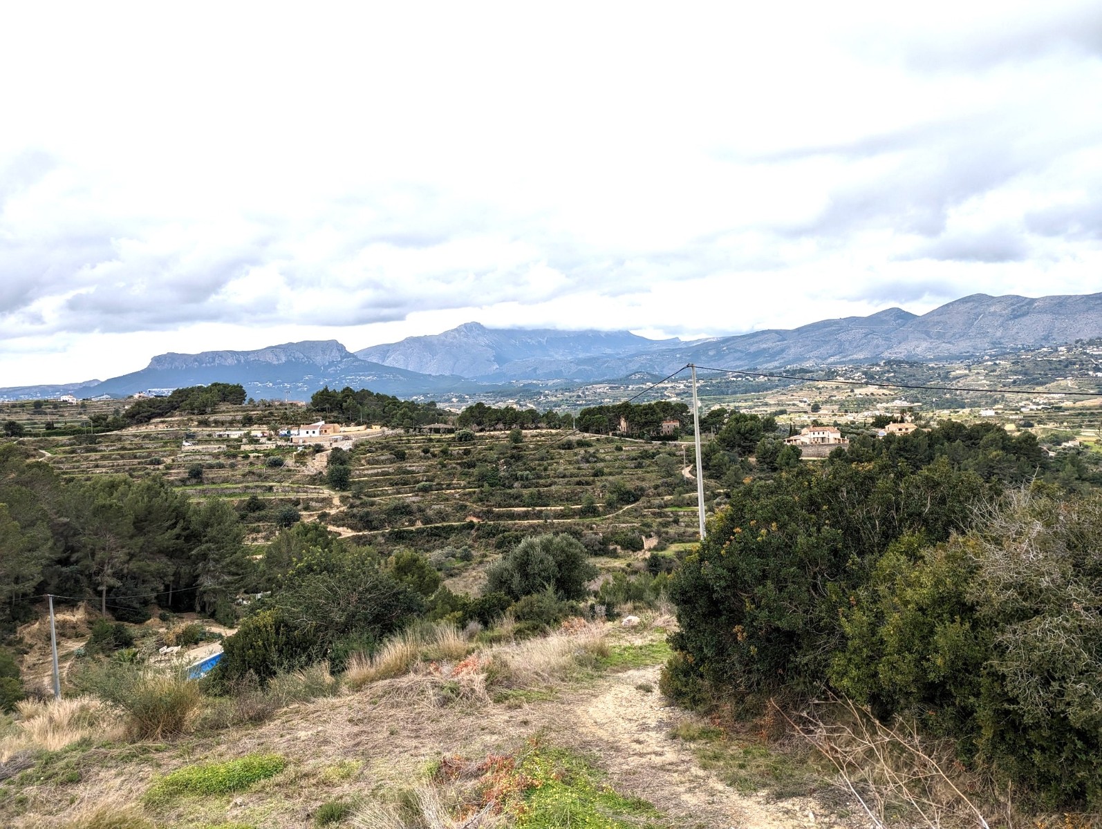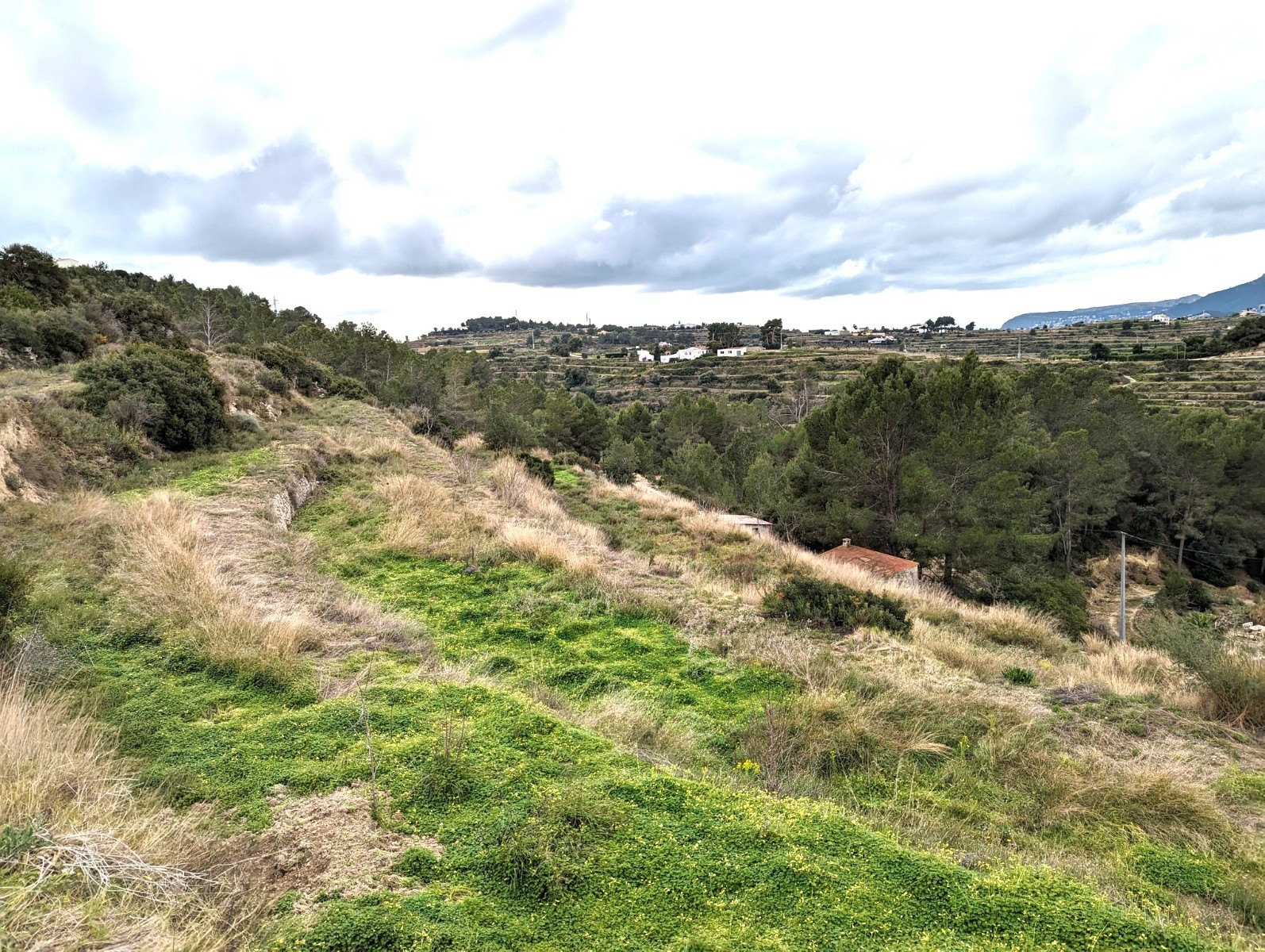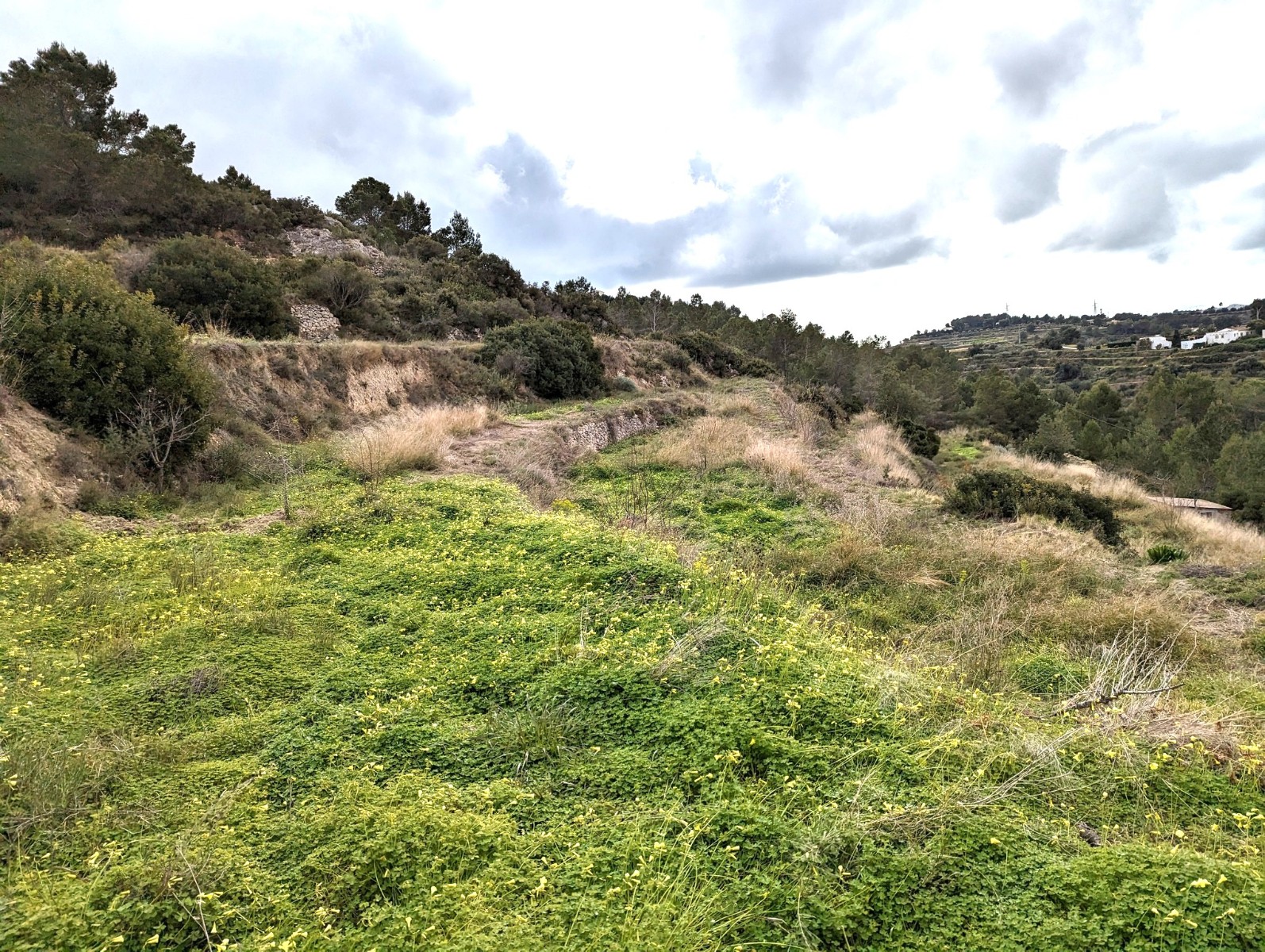 Large terraced plot for sale in the Llenes area of Benissa. The plot has wonderful panoramic views over the valley to the Sierra Bernia mountain range and also some sea view. Electricity and water are available next to the plot and the plot also has a water deposito. One of the terraces has almond trees. If you require more land an adjacent plot is available from a different owner.