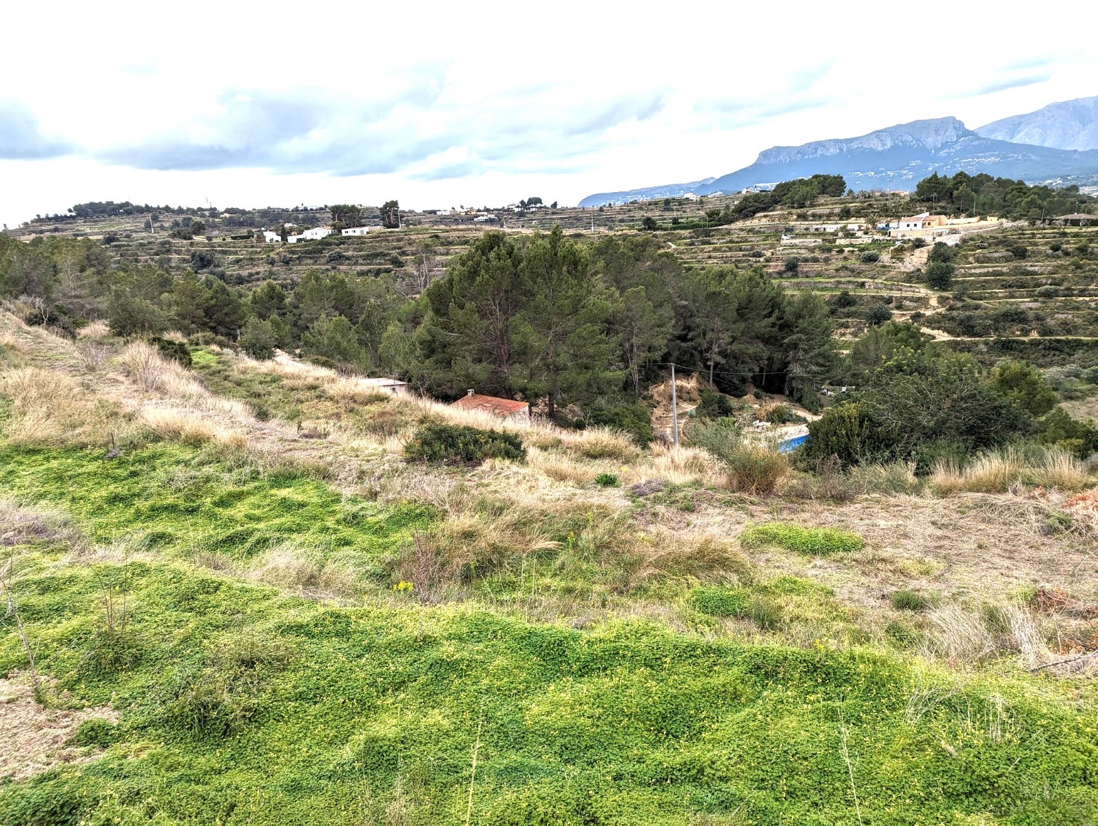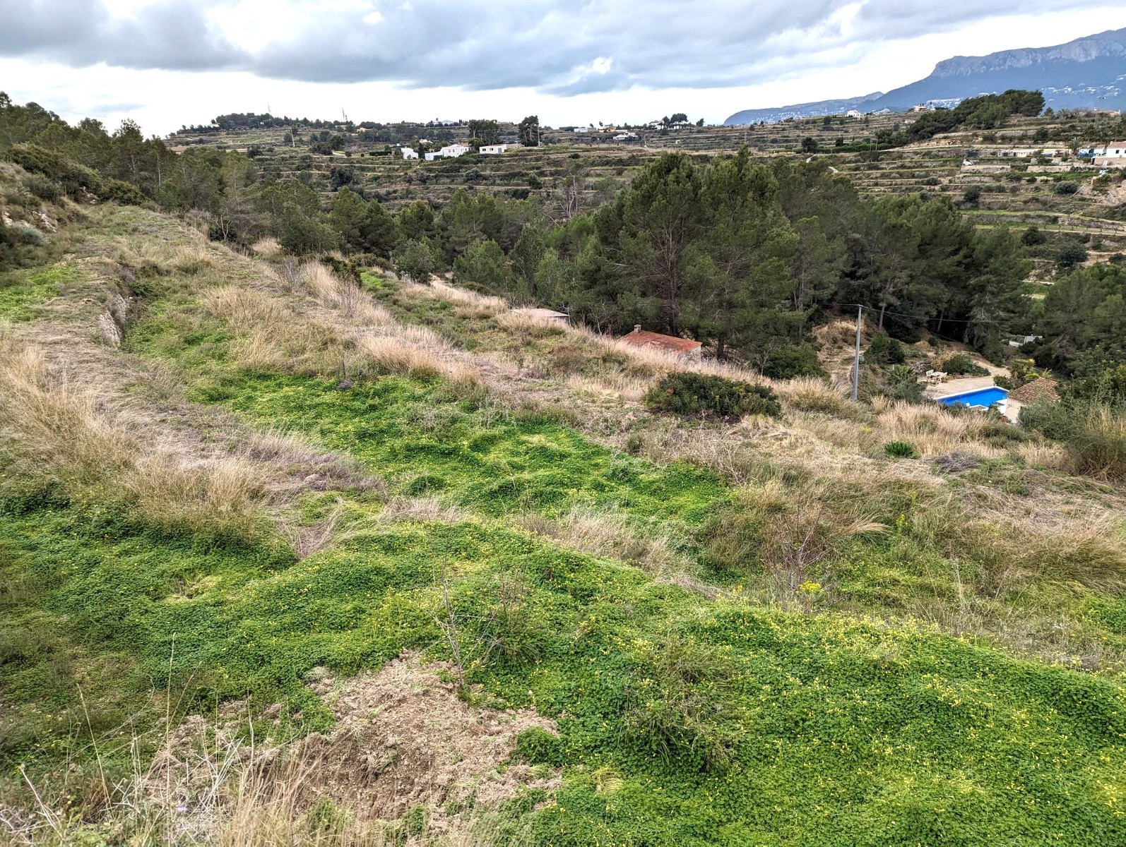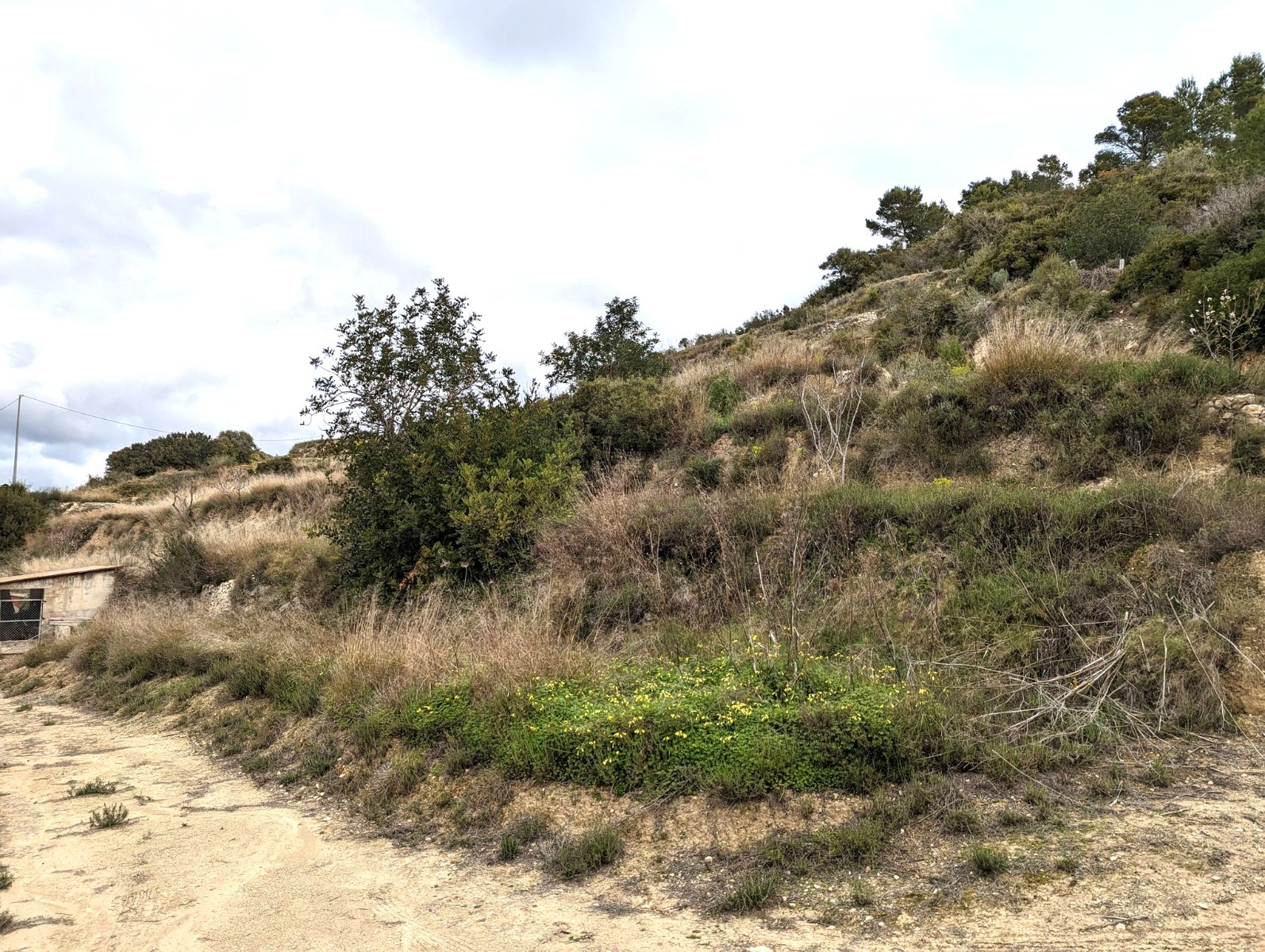Large terraced plot for sale in the Llenes area of Benissa. The plot has wonderful panoramic views over the valley to the Sierra Bernia mountain range and also some sea view. Electricity and water are available next to the plot and the plot also has a water deposito. One of the terraces has almond trees. If you require more land an adjacent plot is available from a different owner.