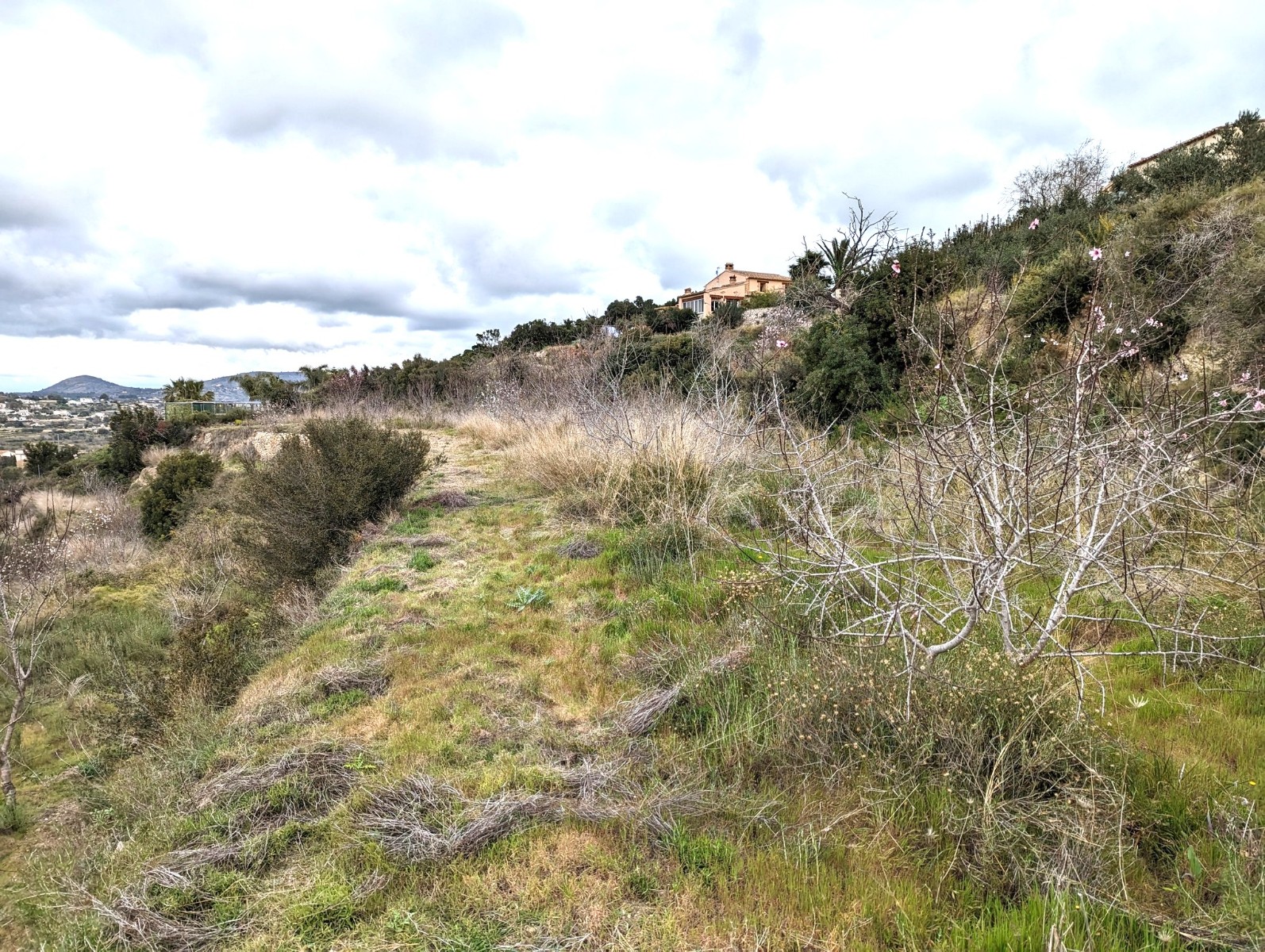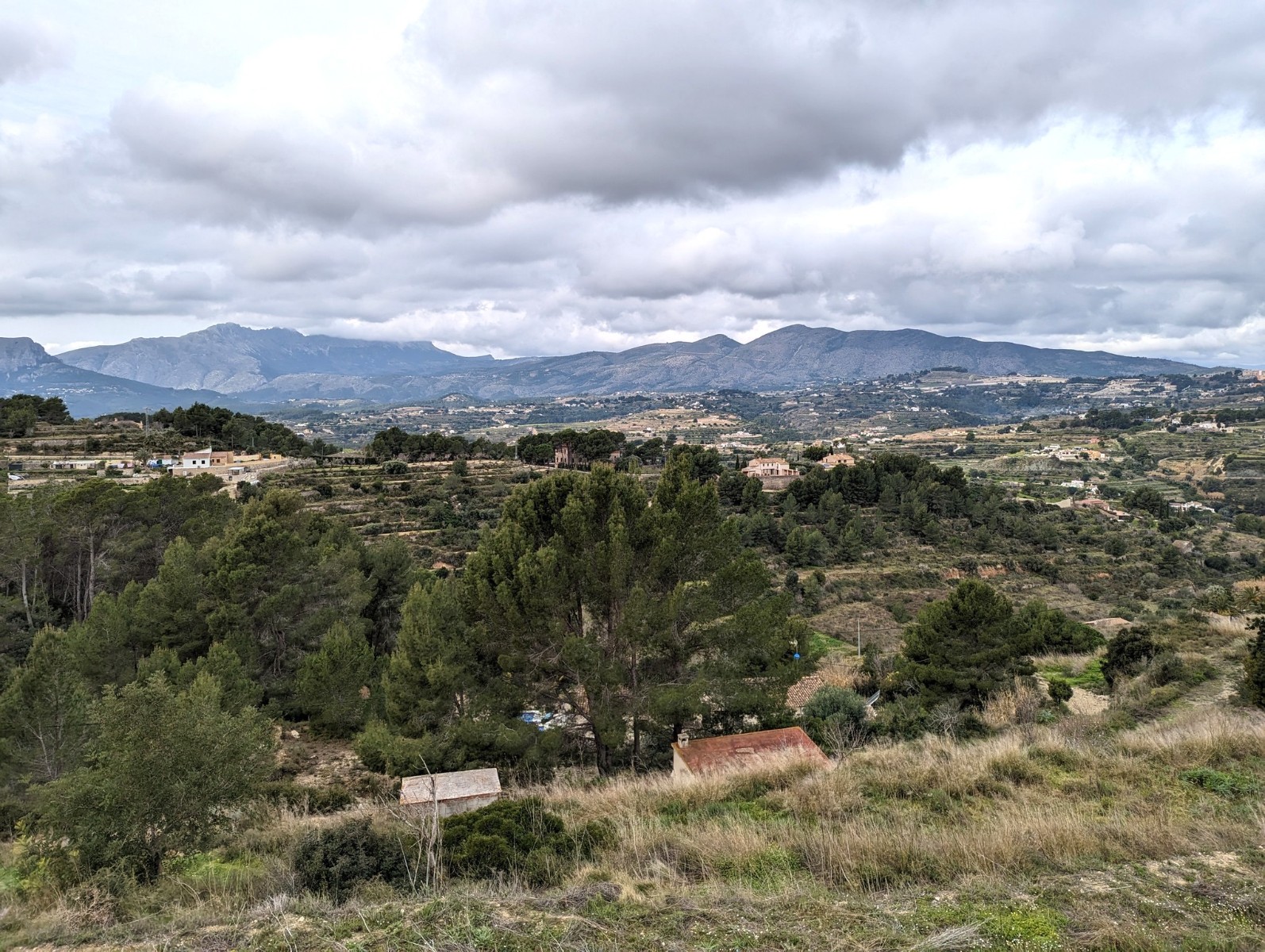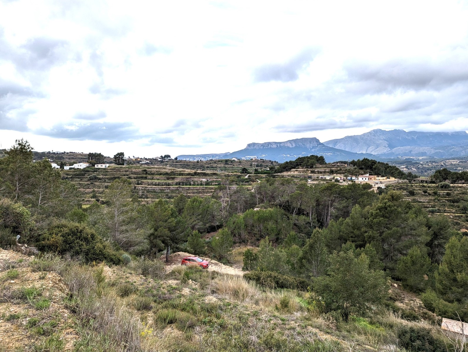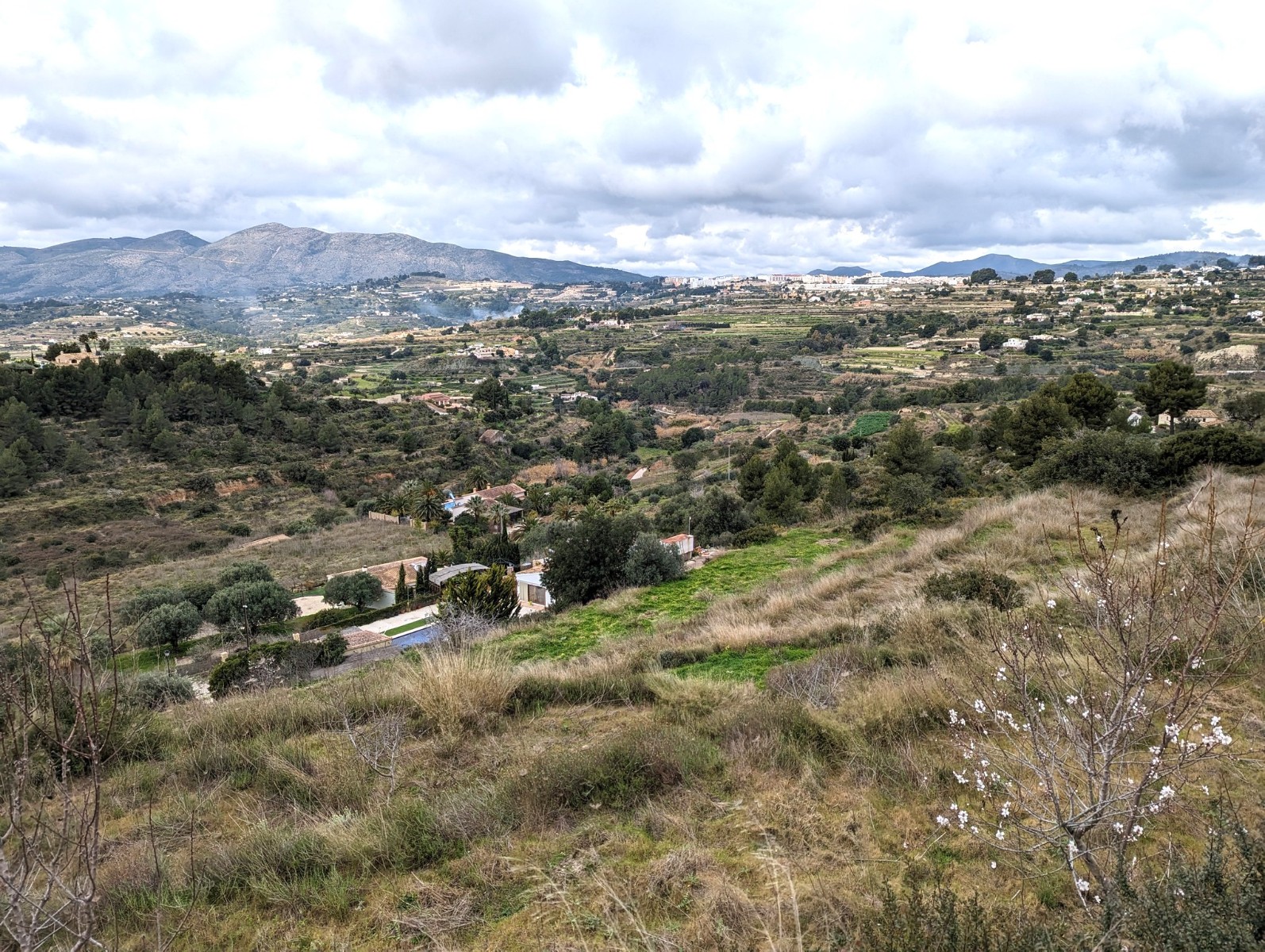 Large terraced plot for sale in the Llenes area of Benissa. The plot has wonderful panoramic views over the valley to the Sierra Bernia mountain range and also some sea view. Electricity and water are available next to the plot and the plot also has a water deposito. One of the terraces has almond trees. If you require more land an adjacent plot is available from a different owner.