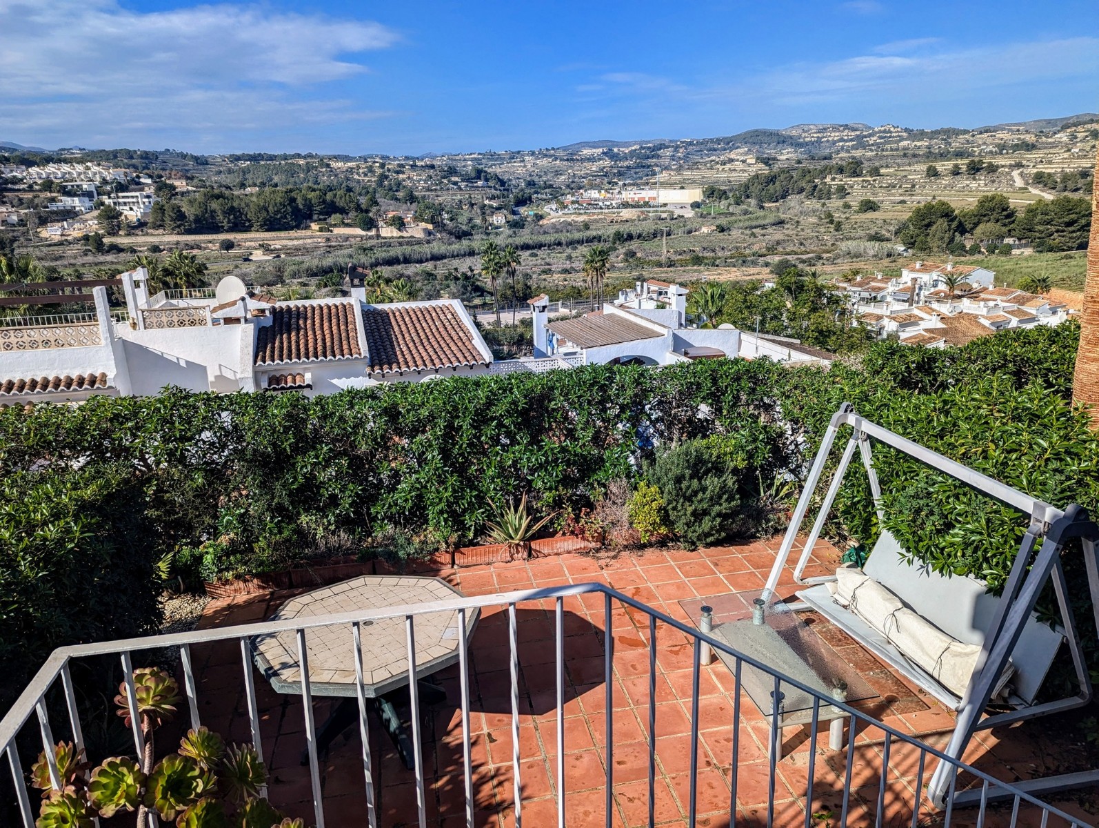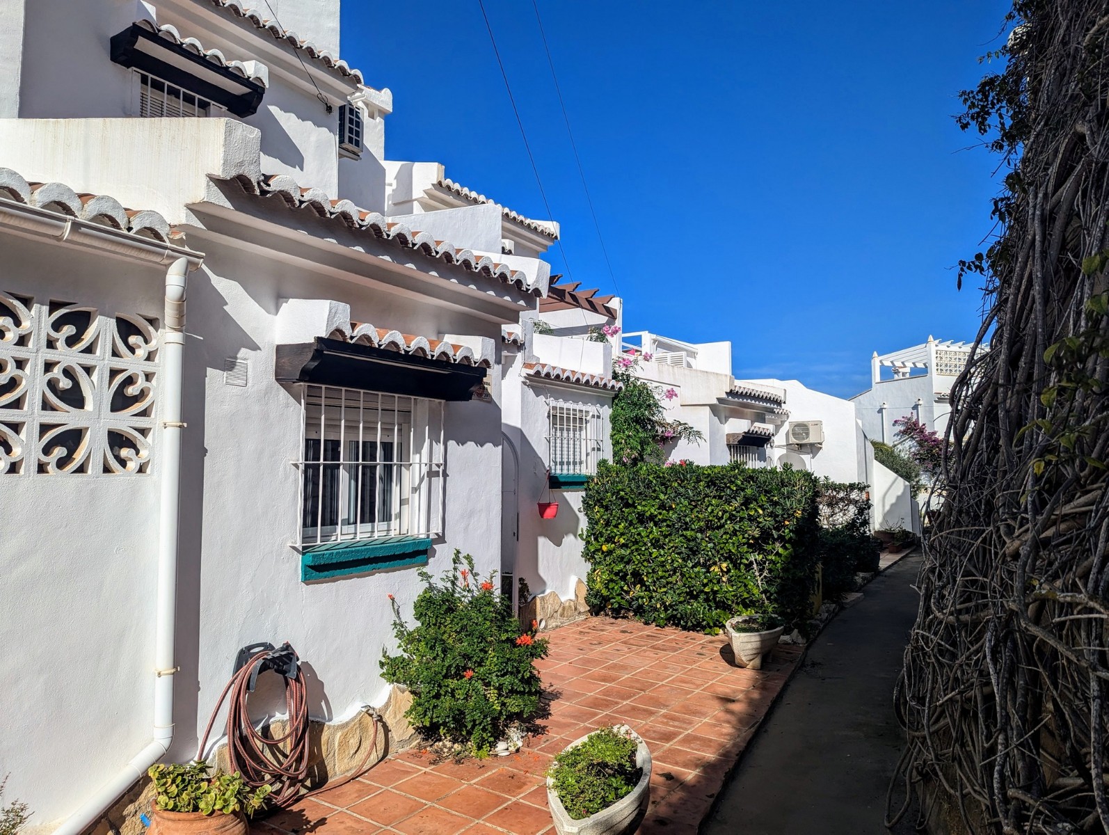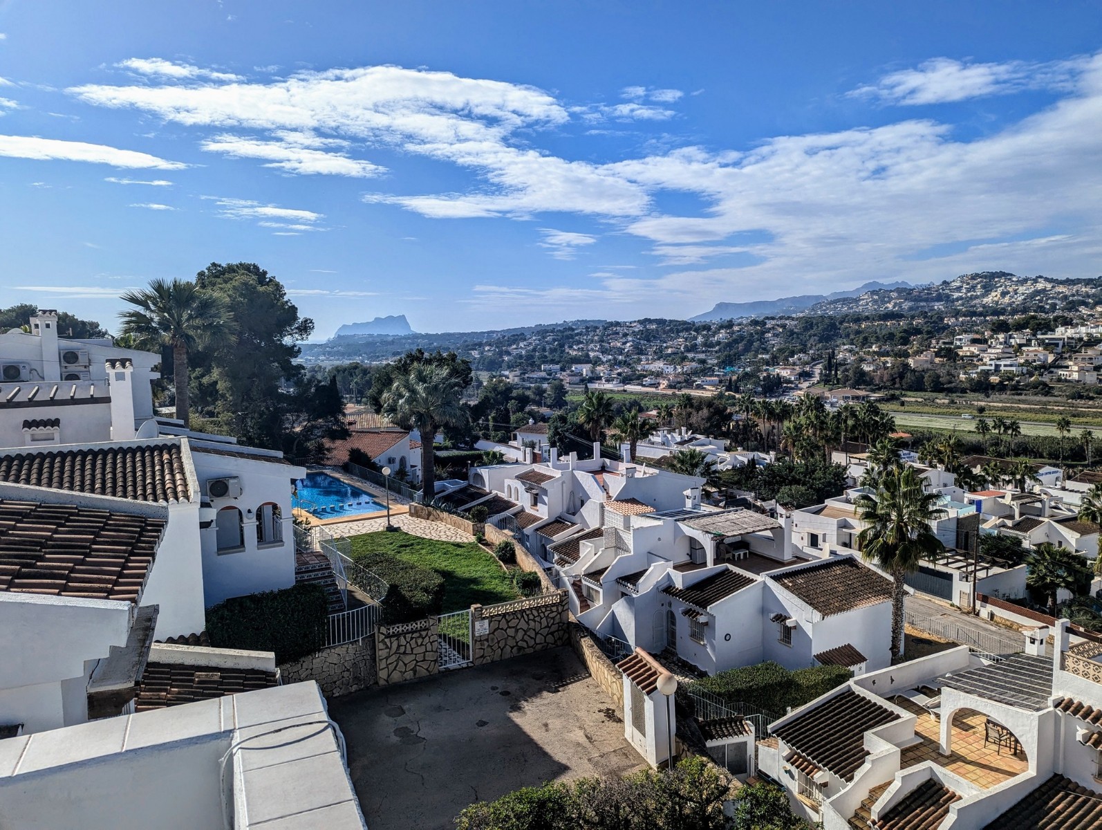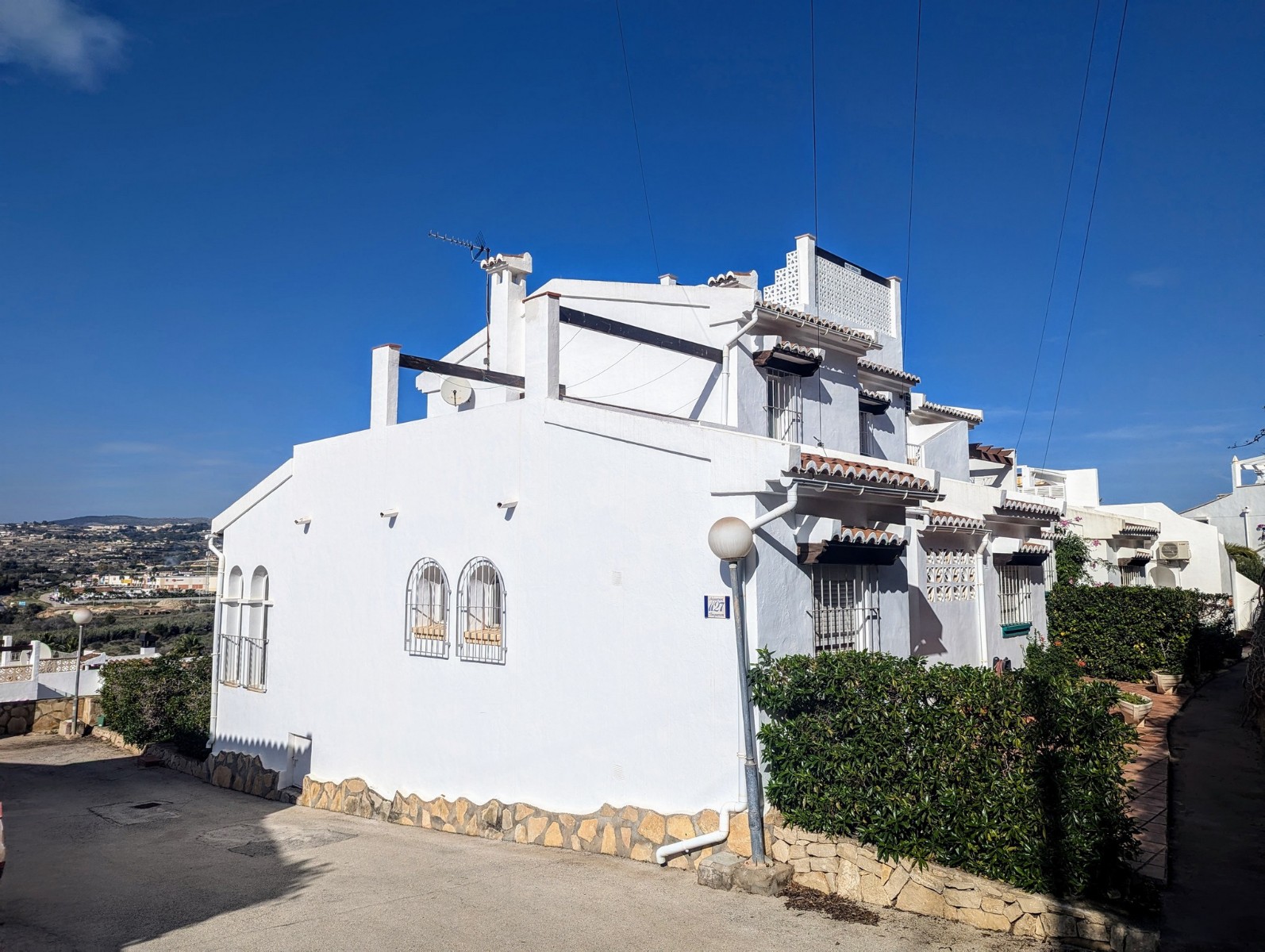 Price Negotiable.This lovely townhouse is located in the Maryvilla urbanisation in Paichi, close to all of the amenities and just a short drive to the beach and town centre. Close to the property there is a residents parking area, a flat walk to the front door. You enter into a small hallway, to the right is a walk-in pantry and to the left you enter the kitchen through an archway. The kitchen is compact, but fully fitted with oven, gas hob, extractor, dishwasher and fridge/freezer, and it also includes an arched opening for serving directly to the dining area. After the kitchen you enter a spacious living/dining room and at the far end there is a glazed naya where you can relax and enjoy the lovely views, a perfect place to enjoy the sunsets. Off the living area there is a double bedroom with built-in wardrobe and lovely views through the window. Next to the bedroom is a shower room which includes a vanity unit and a large linen cupboard. Up the staircase from the entrance you reach the first floor, to the left is another double bedroom with a large dressing room and to the right is the second bathroom which includes a vanity unit, bath with shower attachment and storage cupboards. At the end of the hallway you will find the third double bedroom which has a built-in wardrobe and good views through the window, this room is currently used as a reading room. At the other end of the landing there is a glass door that leads to the staircase to the roof terrace. Here there are wonderful views from the Penon de Ifach all the way to the Montgo, a built-in barbecue and built-in seating. Down the external steps from the glazed naya you reach a terrace, perfect for alfresco dining or just relaxing. From here you access the spacious basement which is used as a utility room and for dry storage, it includes a washing machine, fridge/freezer and a large water heater. It is a very short walk to the communal pool area, which includes a lawn, pool terrace and pool shower, and also enjoys views to the mountains. - Key points:- Built: 1990 - Bedrooms: 3, one with large dressing room- Bathrooms: 2, one with linen cupboard- Glazed naya- Open terrace- Well maintained and recently painted by the present owners- Furniture included- Air conditioning H/C in living/dining room and 1 upstairs bedroom- Heated towel radiators in both bathrooms- Double glazed windows with shutters and mosquito screens- Roof terrace with barbecue and wonderful views- Community fees 680€ per year- Annual taxes 406.82€ (total of property tax and rubbish tax)- Do not delay your visit to this lovely home.- Distances:- Supermarket 900m- Bakery and chemist 1.1km- Town centre 2.5km- Beach 2.7km- Golf 5.6km- Motorway access in Benissa 8.9km