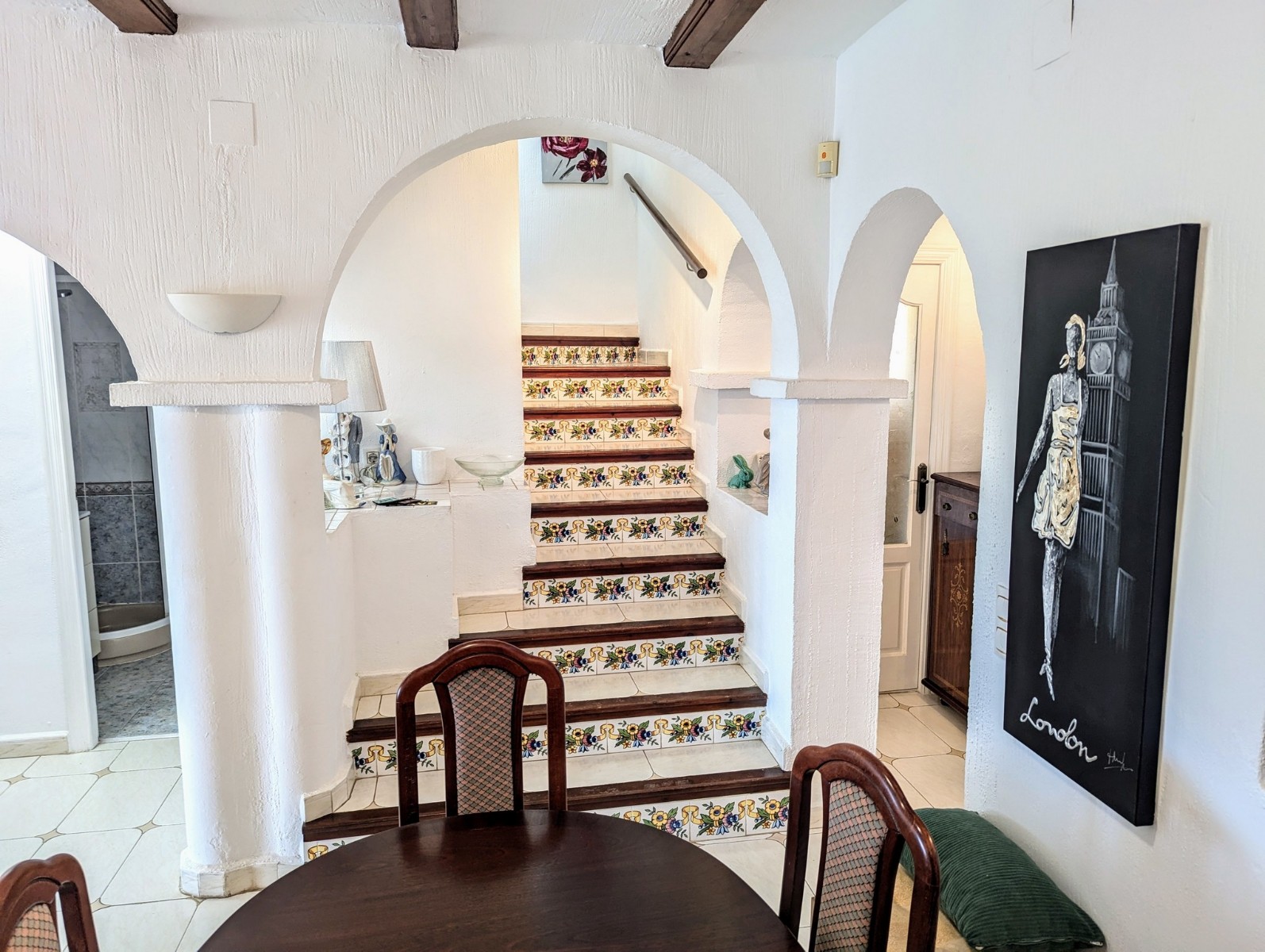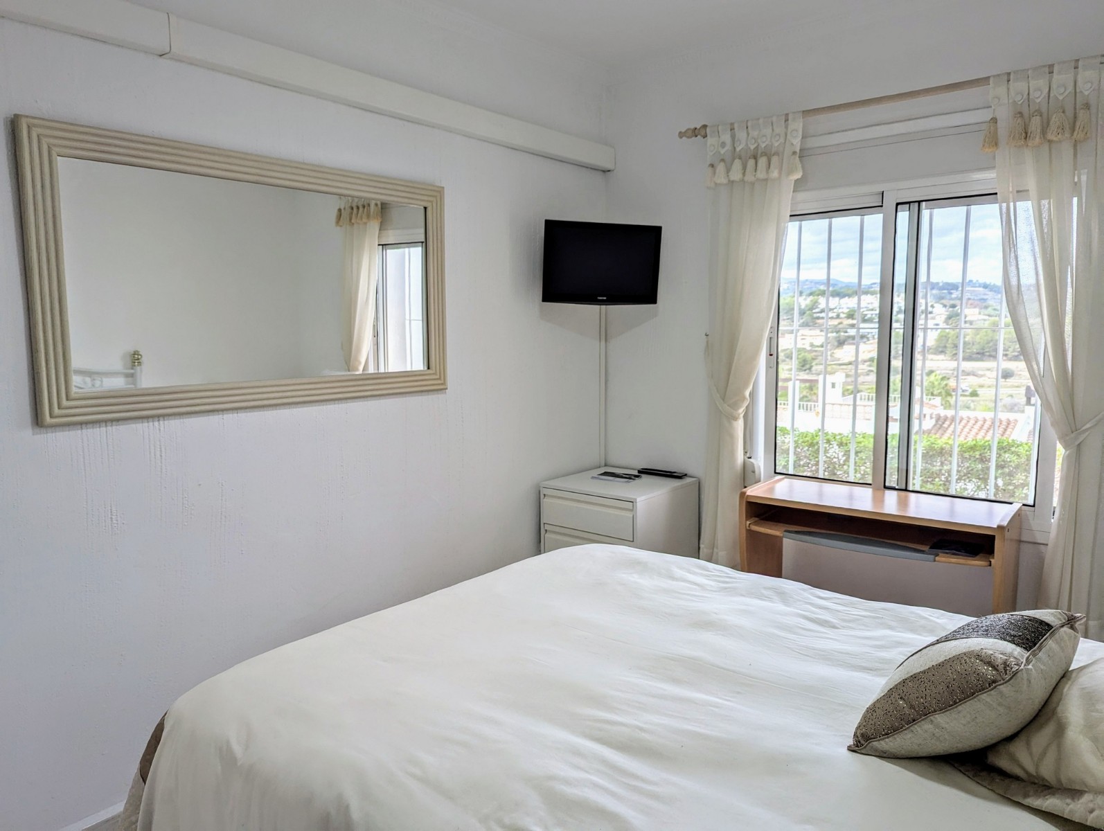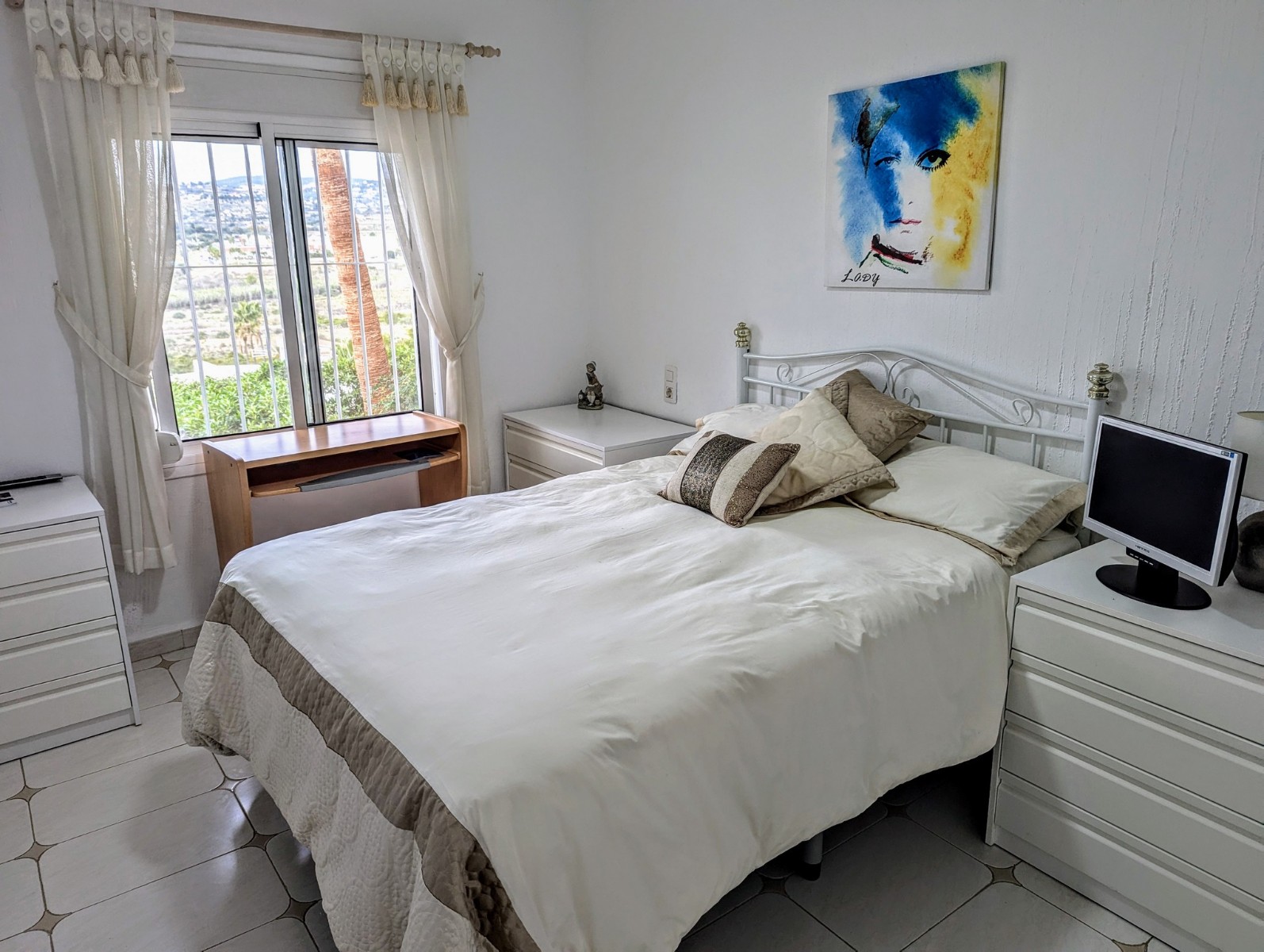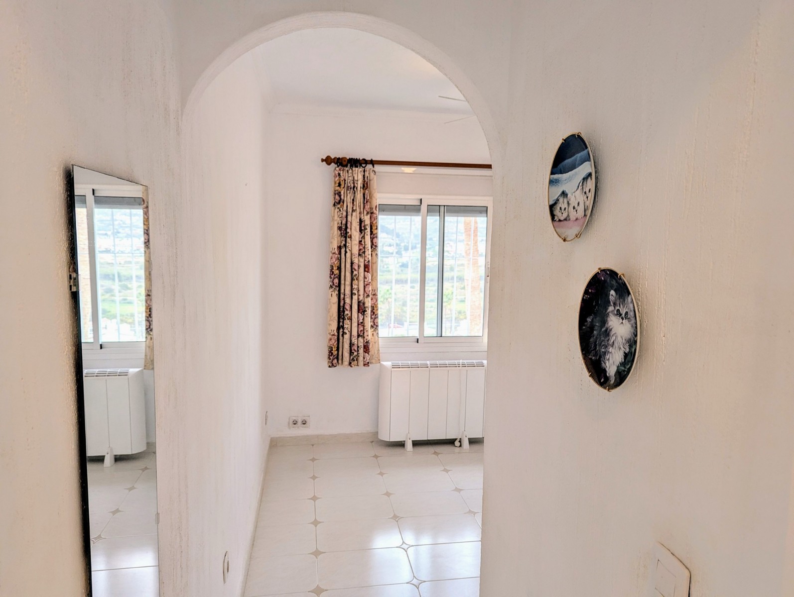 Price Negotiable.This lovely townhouse is located in the Maryvilla urbanisation in Paichi, close to all of the amenities and just a short drive to the beach and town centre. Close to the property there is a residents parking area, a flat walk to the front door. You enter into a small hallway, to the right is a walk-in pantry and to the left you enter the kitchen through an archway. The kitchen is compact, but fully fitted with oven, gas hob, extractor, dishwasher and fridge/freezer, and it also includes an arched opening for serving directly to the dining area. After the kitchen you enter a spacious living/dining room and at the far end there is a glazed naya where you can relax and enjoy the lovely views, a perfect place to enjoy the sunsets. Off the living area there is a double bedroom with built-in wardrobe and lovely views through the window. Next to the bedroom is a shower room which includes a vanity unit and a large linen cupboard. Up the staircase from the entrance you reach the first floor, to the left is another double bedroom with a large dressing room and to the right is the second bathroom which includes a vanity unit, bath with shower attachment and storage cupboards. At the end of the hallway you will find the third double bedroom which has a built-in wardrobe and good views through the window, this room is currently used as a reading room. At the other end of the landing there is a glass door that leads to the staircase to the roof terrace. Here there are wonderful views from the Penon de Ifach all the way to the Montgo, a built-in barbecue and built-in seating. Down the external steps from the glazed naya you reach a terrace, perfect for alfresco dining or just relaxing. From here you access the spacious basement which is used as a utility room and for dry storage, it includes a washing machine, fridge/freezer and a large water heater. It is a very short walk to the communal pool area, which includes a lawn, pool terrace and pool shower, and also enjoys views to the mountains. - Key points:- Built: 1990 - Bedrooms: 3, one with large dressing room- Bathrooms: 2, one with linen cupboard- Glazed naya- Open terrace- Well maintained and recently painted by the present owners- Furniture included- Air conditioning H/C in living/dining room and 1 upstairs bedroom- Heated towel radiators in both bathrooms- Double glazed windows with shutters and mosquito screens- Roof terrace with barbecue and wonderful views- Community fees 680€ per year- Annual taxes 406.82€ (total of property tax and rubbish tax)- Do not delay your visit to this lovely home.- Distances:- Supermarket 900m- Bakery and chemist 1.1km- Town centre 2.5km- Beach 2.7km- Golf 5.6km- Motorway access in Benissa 8.9km