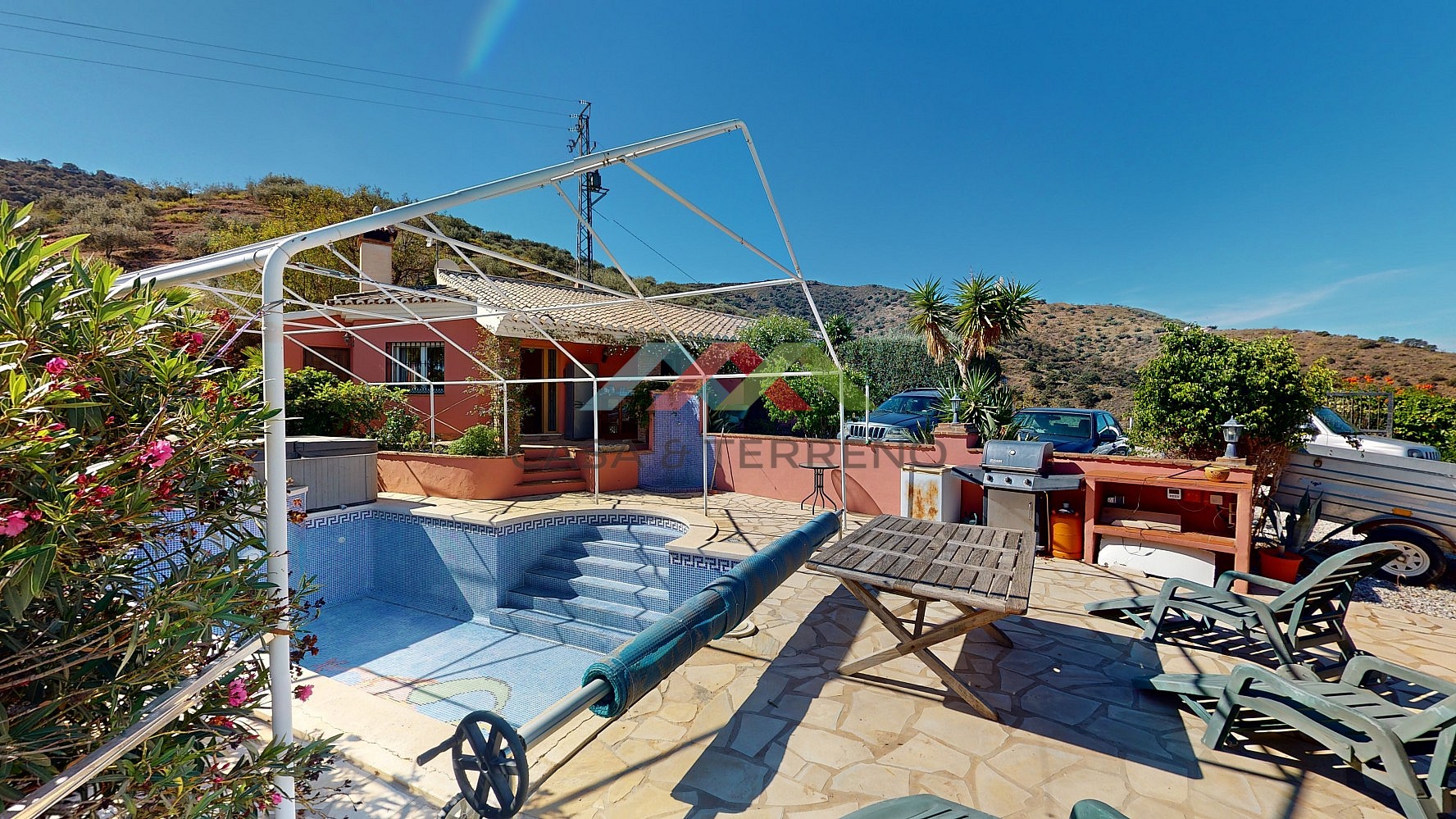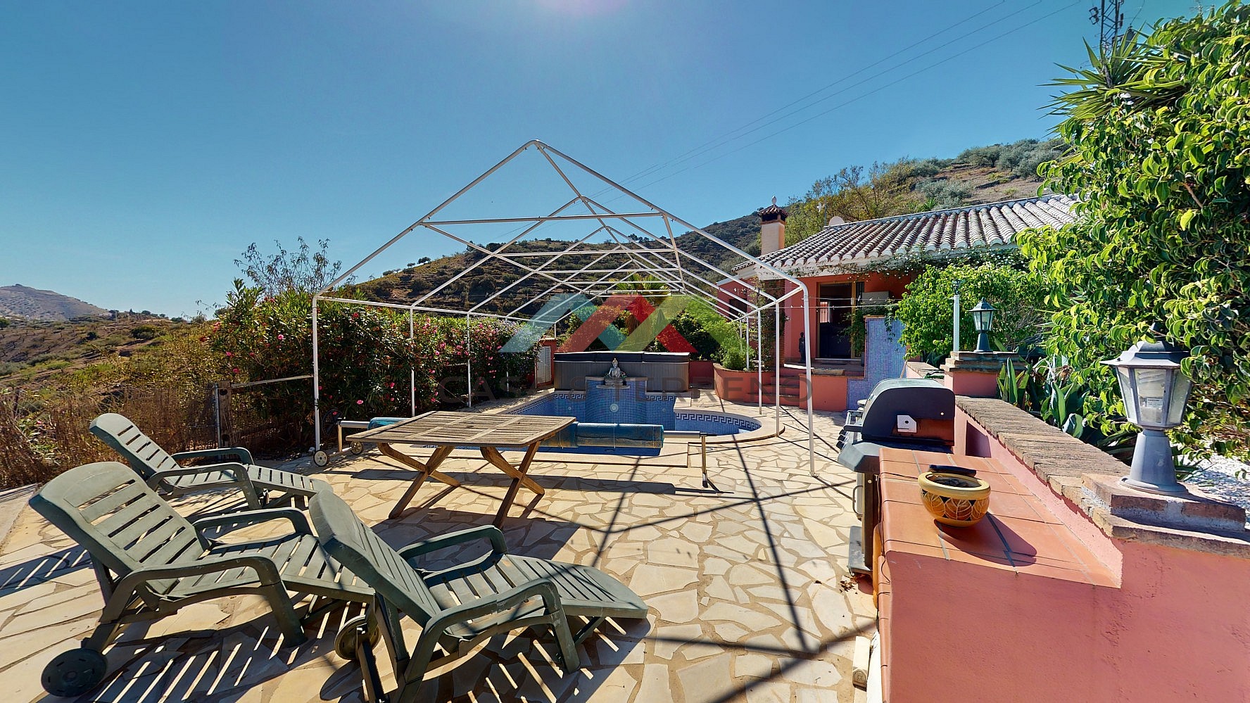 We ́re introducing a charming house in the Hills of Arenas. Escape to the serene beauty of the picturesque hills of Arenas with this fantastic house that truly captures the essence of a tranquil retreat. Nestled among the rolling hills, this property offers a unique blend of comfort, privacy, and breathtaking views. Boasting three spacious bedrooms, each with its own on-suite bathroom, this home provides ample space for relaxation. What sets this property apart is the separate, small house, perfectly designed to accommodate guests or even serve as an artist's studio or home office. In addition to the on-suite bathrooms, there is also a guest bathroom for the utmost convenience. The kitchen and living-/dining room have been designed to facilitate ease of living and are ideal for entertaining guests or simply enjoying moments of togetherness with family and loved ones. Step outside onto the covered terrace and immerse yourself in the natural beauty that surrounds this enchanting property. Whether you choose to bask in the warm sunshine, savor a summertime barbecue, or simply unwind with a good book, this space will undoubtedly become your go-to spot for relaxation. For those seeking a refreshing dip or a soothing soak, a pool and inviting jacuzzi await you. Imagine leisurely evenings spent unwinding in the jacuzzi or taking refreshing swims on hot summer days. The property also offers open parking space, ensuring convenience for you and your guests. Embracing sustainable living, this house features solar panels, allowing you to enjoy the luxuries of modern living while minimizing your carbon footprint. Capture the warm glow and breathtaking beauty of the sunsets against the hills from the comfort of your own home. This property is a true gem in an idyllic location. Don't miss out on the opportunity to call this delightful retreat your own. We are pleased to be able to present this dream property to you soon, either personally or via virtual viewing. Because this world is unique - just like our Axarquía. In Andalusia. On the Costa del Sol. Here, on the sunny side of life...