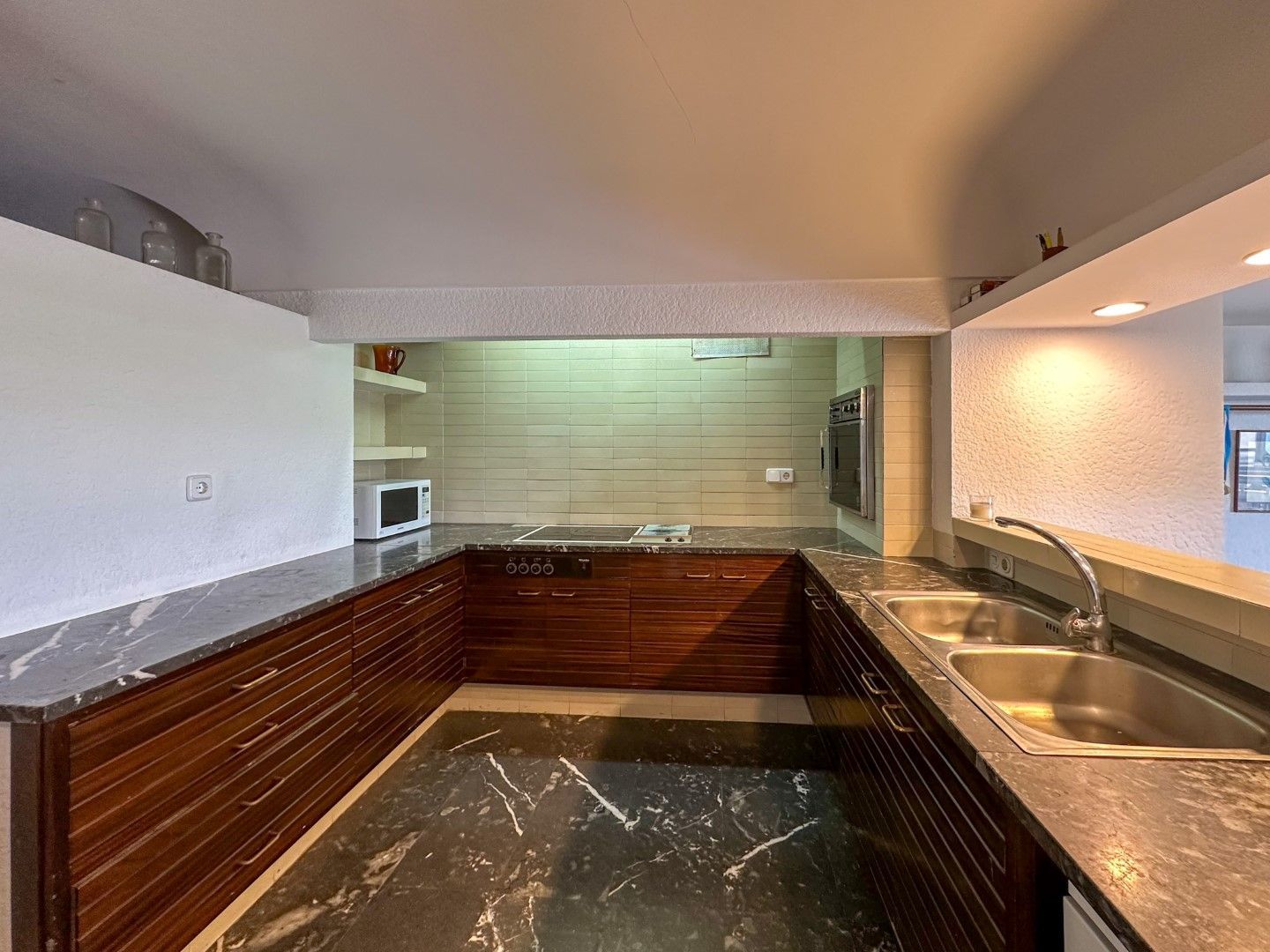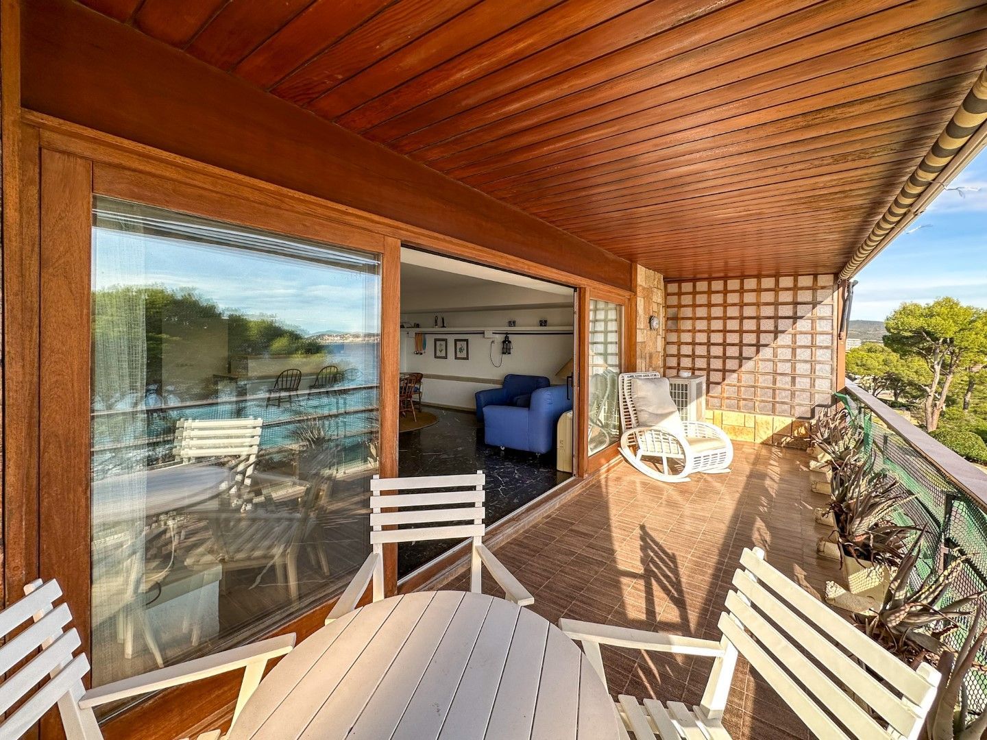 Edén Mar building built in 1969, 3rd floor with elevator. It has 229m² constructed of which 204'85m² are useful, distributed in hall, kitchen open to the living room with access to a 13'65m² terrace with open views of the sea, 5 bedrooms and 4 bathrooms. West-facing rear terrace of 37'50m². 2 parking spaces of 14m² each. Communal area with 3 swimming pools, gym, 400m² natural sun solarium, billiards room, Pim Pom room, restaurant open in summer, 3 tennis courts, playground and reception service. Very quiet and privileged environment.[IW]