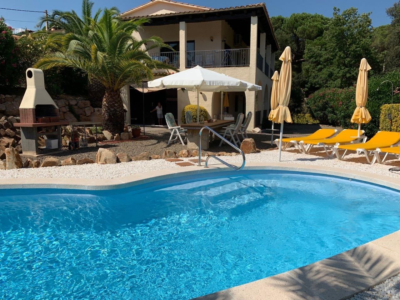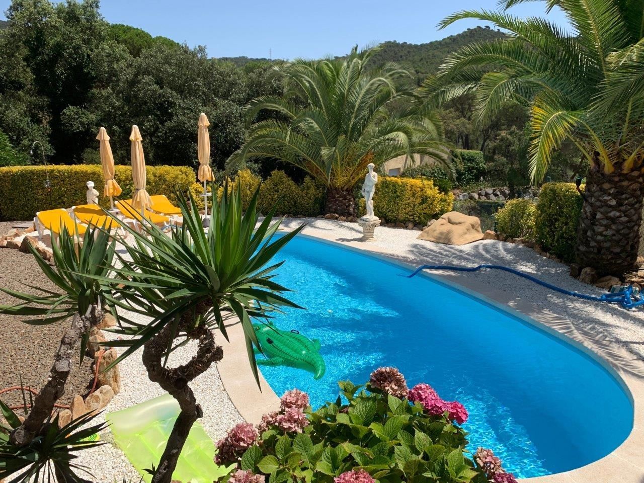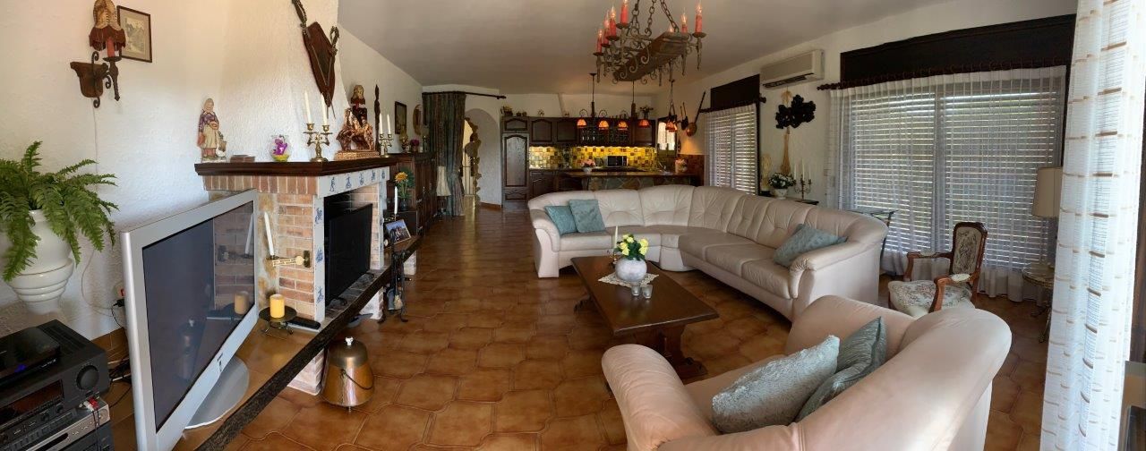 296m2 Catalan rustic style villa with pool on a 1,000m2 plot in the Roca de Malvet Urbanization, a short distance from the town of Sta Cristina d'aro and about 7kms from the coast. This house has an excellent conservation. The house has spacious rooms and is divided into 2 floors, which could be two independent houses: Street level floor: On this floor there is a large living room with kitchenette and fireplace, 3 double bedrooms, 1 bathroom with bathtub and a large covered terrace with spectacular views of the mountain. Garage level floor: This floor consists of a living room with a kitchenette, very spacious and with high ceilings, which was the old garage, 2 double bedrooms and 1 bathroom with a shower. The upper floor is equipped with an underfloor heating system based on hot water that passes through the fireplace, as well as electric radiators. It has air conditioning in the living room and the water heater is 100l. Is there a pool. There is lighting and automatic irrigation in the garden.[IW]