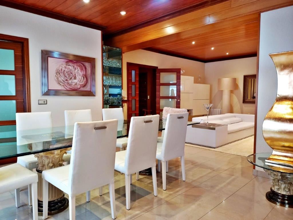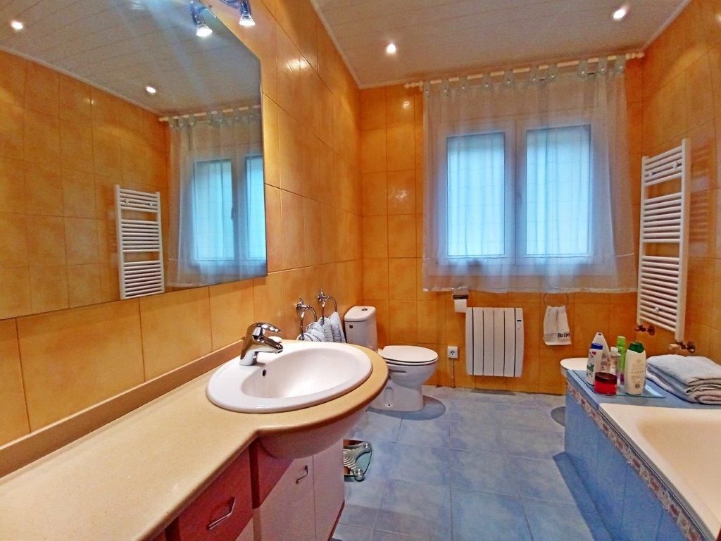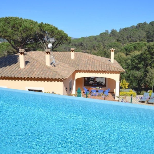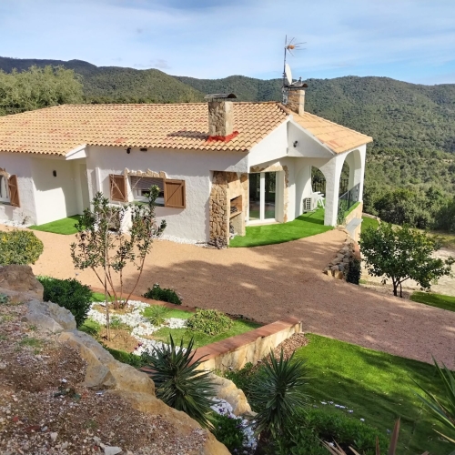 Magnificent independent VILLA, with swimming pool and sea views from a distance, large private garage for 4 cars, small wooden house, spectacular outdoor spaces that require little maintenance in Santa Cristina d'Aro in the heart of the Costa Brava. From the access to this fantastic villa you will love every space, the quality of its finishes, its beautiful terraces with sea and mountain views, marble floors in contrast with the wood, all designed for your enjoyment from the comfort and quality of all its elements as every detail in all its spaces. Located in Santa Cristina d'Aro, only 20 minutes from the best beaches of the Costa Brava: Sant Feliu de Guíxols, S'Agaró, Platja d'Aro, less than 10 minutes from the Golf d'Aro, its location perfectly combines tranquillity with an environment that offers all the possibilities to enjoy a diversity of activities and at the same time tranquillity and nature. The house has 298 mt2, on 3 plots, and is distributed in: Basement floor: Direct access from the street through an automatic door to the private garage with capacity for 4 cars with direct access to the main floor of the house. Charming space with open plan room, fireplace, space for exercise room, wardrobes, large guest toilet and cleaning area. Swimming pool area with wooden decking and barbecue area Wooden guesthouse with kitchen, space for 8 people, lounge and guest toilet Terraces with sea views and garden areas Covered porch as a chill out area Once inside the house on the main floor: Large entrance hall Courtesy toilet Separate kitchen with breakfast bar with access to the porch - Chill out area Large dining room Spacious living room with beautiful fireplace 1 single bedroom, currently used as a dressing room 1 double bedroom 1 very spacious bedroom in SUITE with private bathroom with whirlpool bath (formerly there were 2 bedrooms, the reform could be reversed to have 1 more bedroom) 1 complete bathroom with bathtub Updated double glazed windows, "osmosis" system for water, electric heating, quality parquet and marble floors, installation done to put oil boiler if required, surrounded by nature with maximum privacy.[IW]