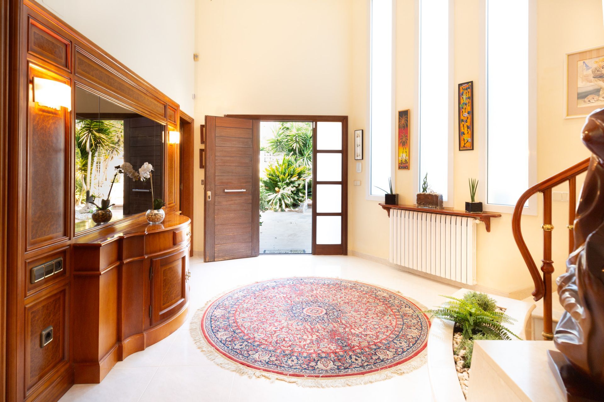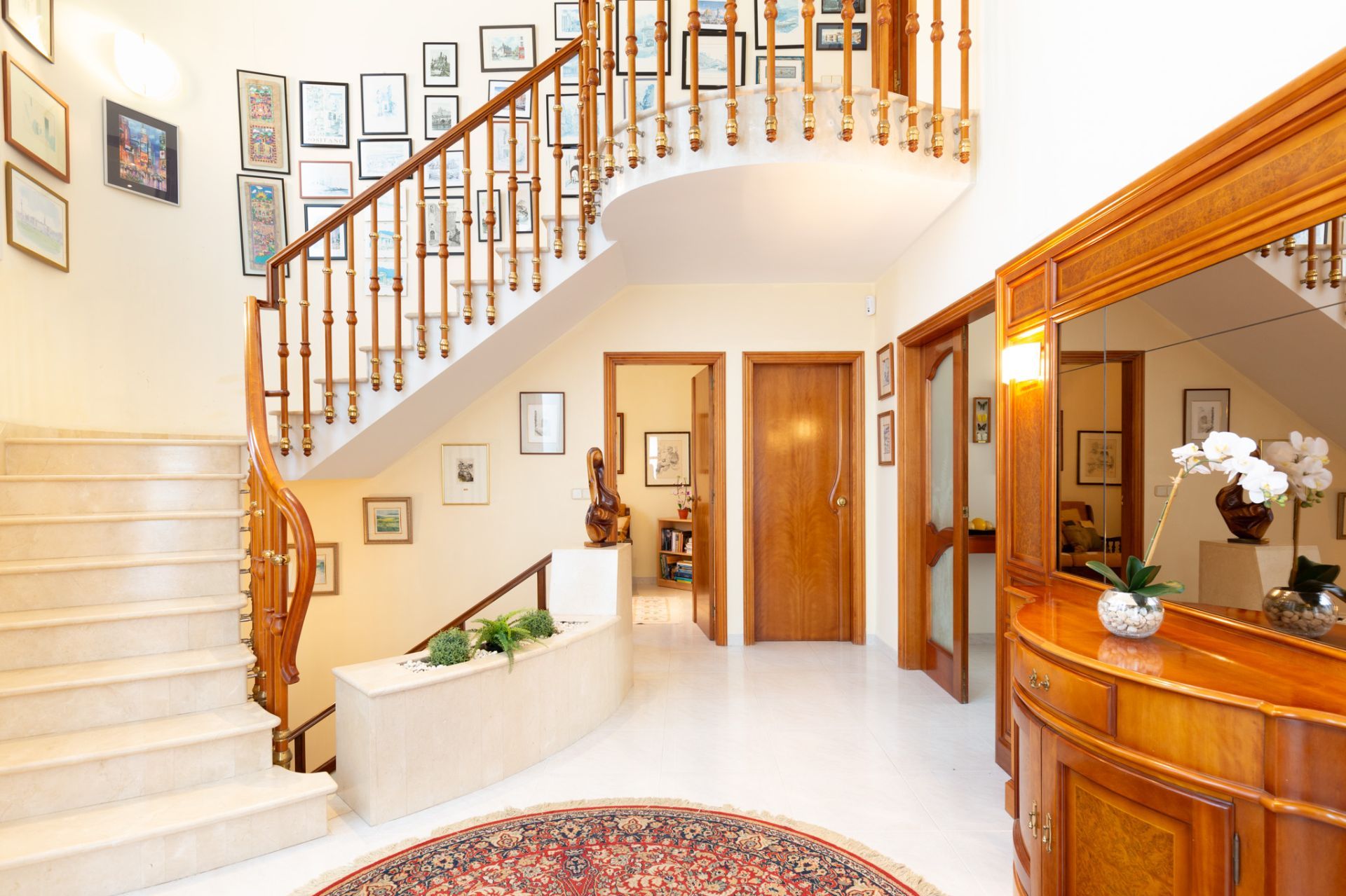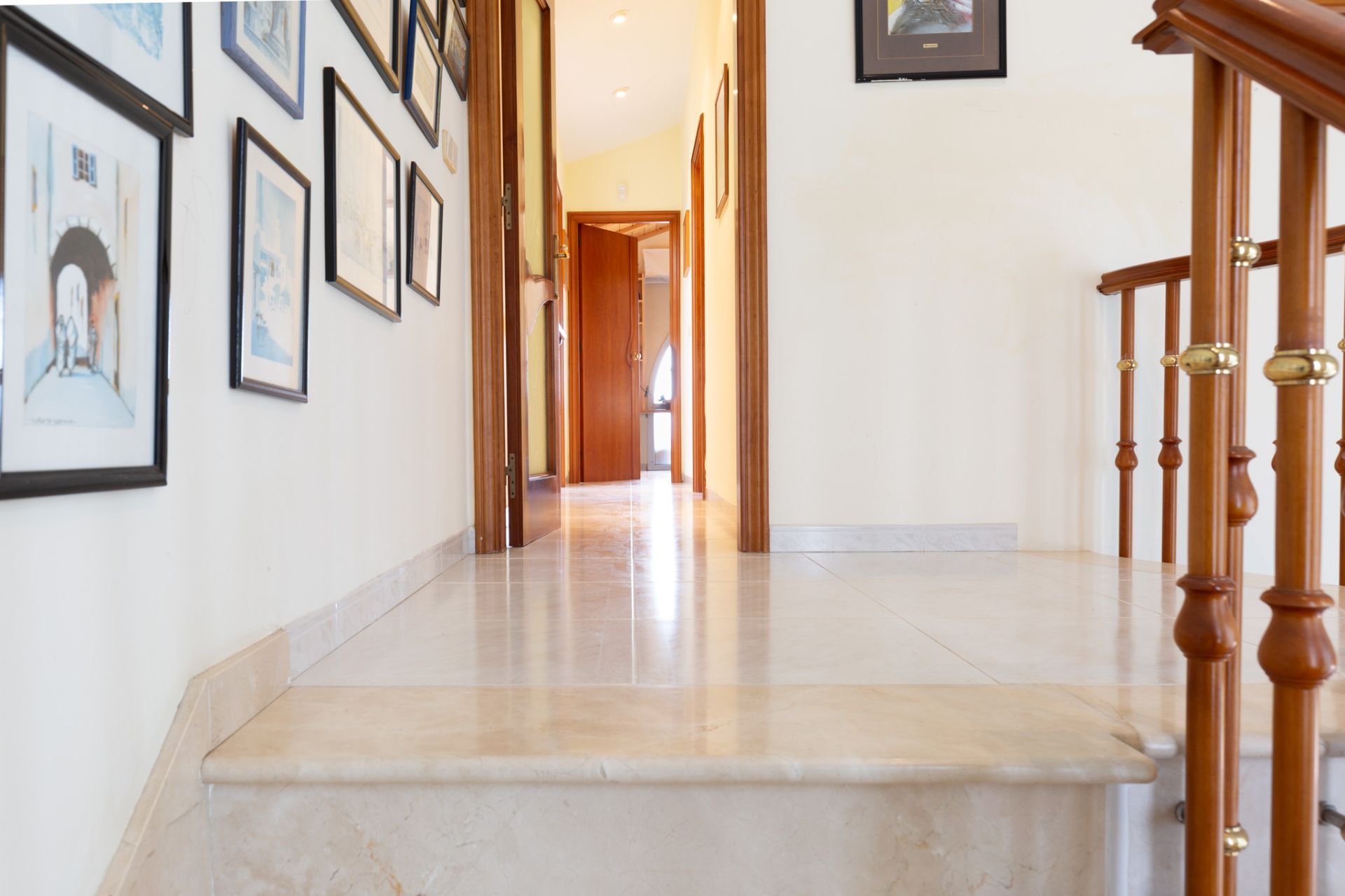 Upon entering, a spacious den welcomes you, connecting to a spacious living-dining room that opens to a lovely porch. The modern and functional kitchen is perfect for those who enjoy cooking. This floor also has a room for laundry and ironing, a pantry for storage and three cozy bedrooms. The master bedroom is an elegant suite with en-suite bathroom and dressing room, while the other two bedrooms, one double and one single, share a full bathroom. On the upper floor, we find two large double bedrooms, each with access to private terraces. In addition, this floor has a full bathroom. The semi-basement is a versatile space that adapts to all your needs. Here, a cozy living-dining room with a fireplace creates a warm and welcoming atmosphere, while the open kitchen facilitates interaction during meals. It also has a toilet, an engine room and a multipurpose room. In the garage, with capacity for several vehicles, we also find the laundry. The private garden with swimming pool invites you to enjoy the sunny days. The property has heating and aluminum carpentry, guaranteeing comfort and energy efficiency in all seasons of the year. Don't miss this opportunity and come visit![IW]
