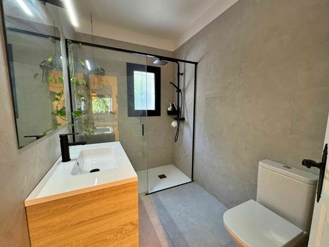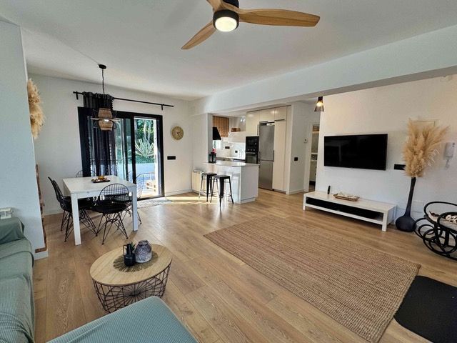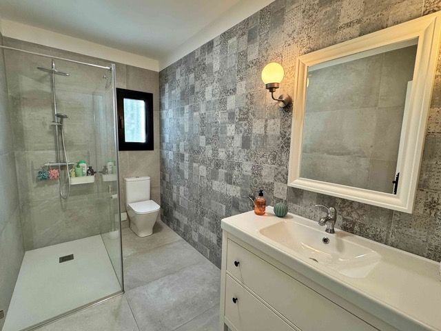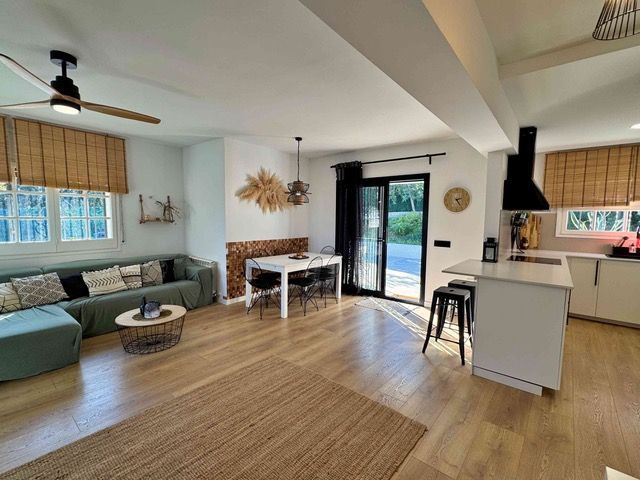 This beautiful house distributed on one floor, with a swimming pool and a plot of more than 2000m2, could be the house of your dreams. It is located in the middle of nature, just 15 minutes from the nearest town, but with neighbours and very well connected. This comfortable house has everything you may need: large garage with laundry room and full bathroom with shower and plenty of storage space. Living room and kitchen, in the same space, cozy and pleasant, with access to the pool area and large terrace. Patio under the trees to meditate, read, play with the children or simply watch time go by. 3 large bedrooms, one of them en suite, and a full bathroom, make up this excellent house, very well connected to nearby towns. The house has been recently renovated with quality materials. New kitchen, new windows and aluminium doors, new flooring both inside and outside, etc. Ideal for people with mobility difficulties. Additional costs to purchase: 10% ITP + notary + registration[IW]