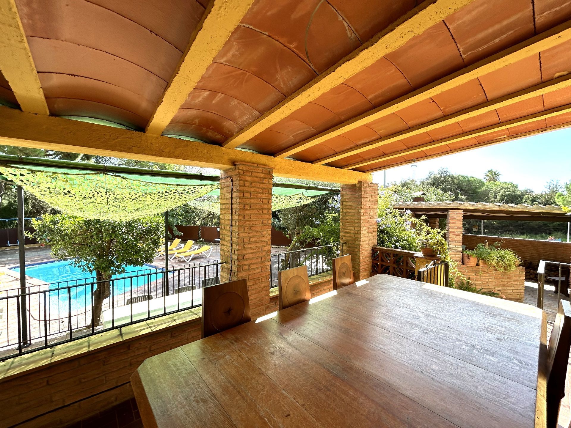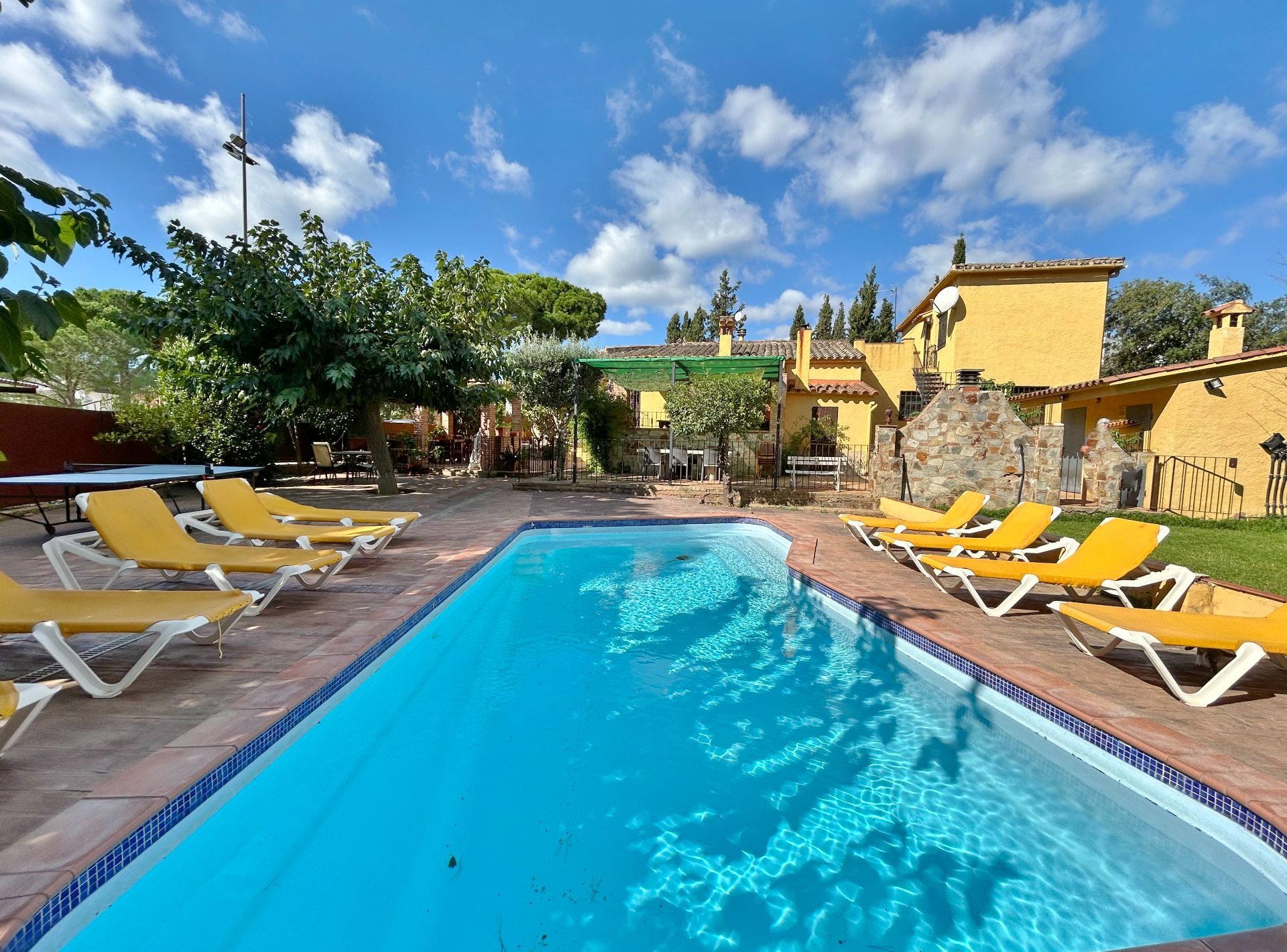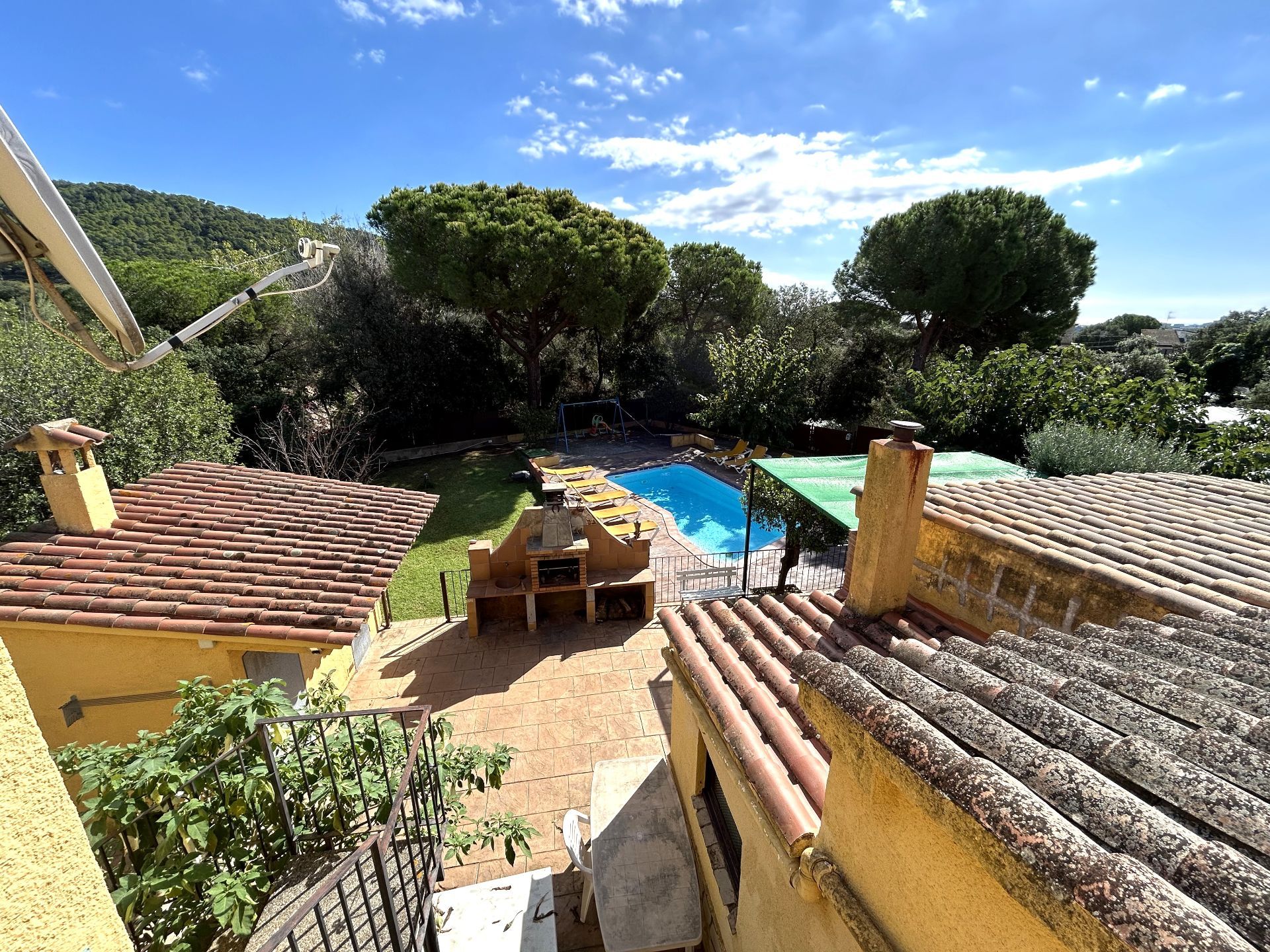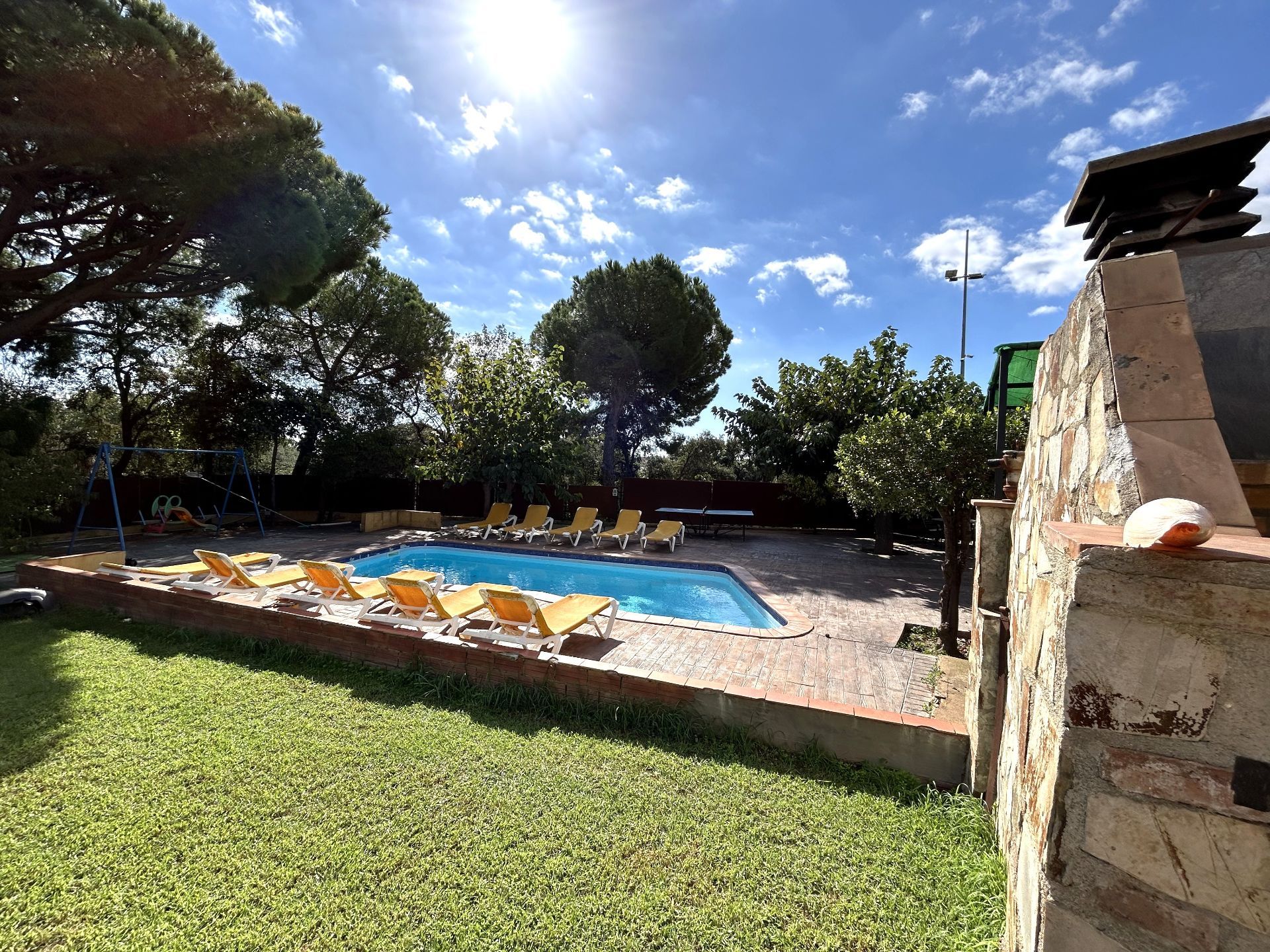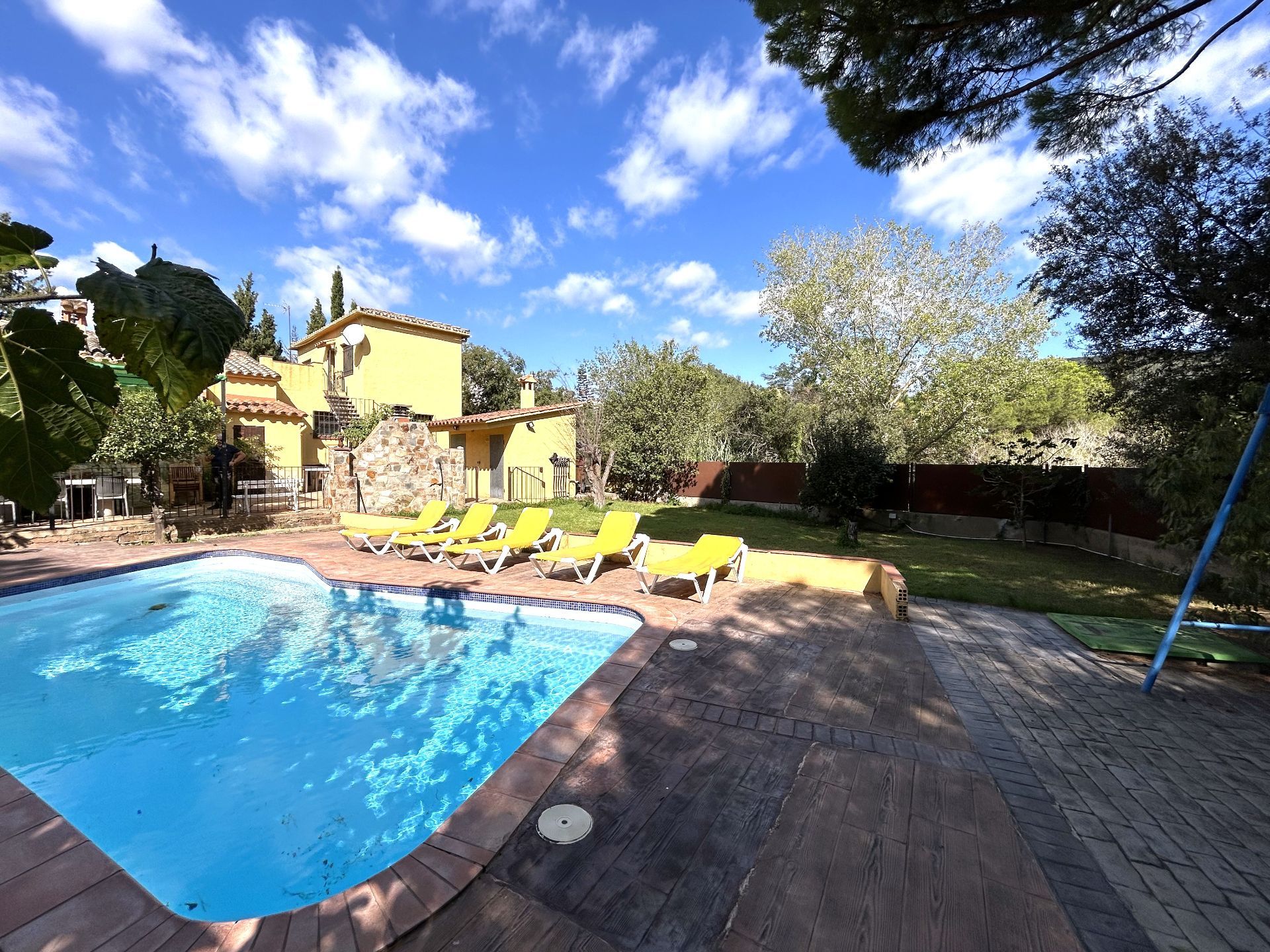 Discover the perfect retreat in Calonge! This charming detached house, located in a quiet urbanization, offers you the opportunity to enjoy sea views and an unrivaled Mediterranean lifestyle. With 244 m² built and 198 m² usable, this versatile property has a HUT tourist license, making it ideal for both permanent residence and rental. The interior of the main house welcomes you with a cozy living room with fireplace, three bedrooms and two bathrooms. In addition, a large living room with direct access to the garden will allow you to enjoy unforgettable moments outdoors. The beautiful garden, adorned with natural grass and fruit trees, houses a large swimming pool and a swing for the little ones. The porch, outdoor dining area and barbecue are perfect for family or friends gatherings. The property also includes an independent apartment with two bedrooms and one bathroom, offering flexibility and additional options for guests or rental. Built in 1981 and in good condition, this house has oil-fired electric heating, built-in wardrobes, storage room, terrace and balcony. With a plot of 965 m² and south-east orientation, you will enjoy natural light all day long. Don't miss the opportunity to live in this Mediterranean oasis with a parking space included. Come and see your new home in Calonge![IW]