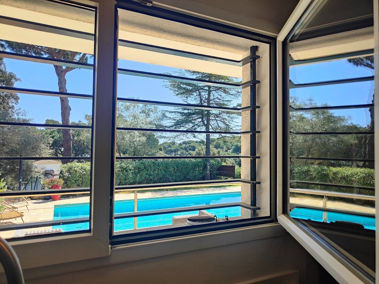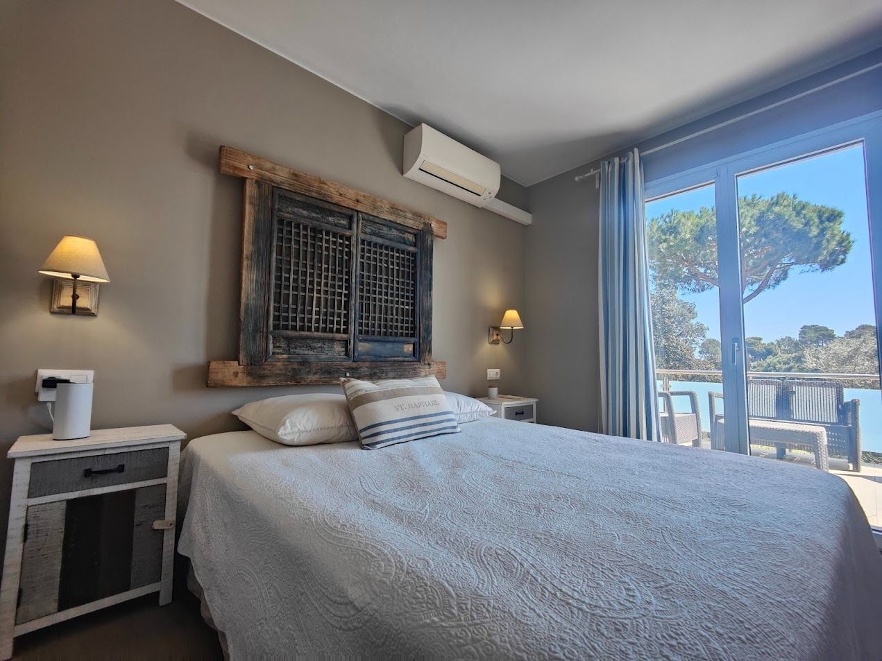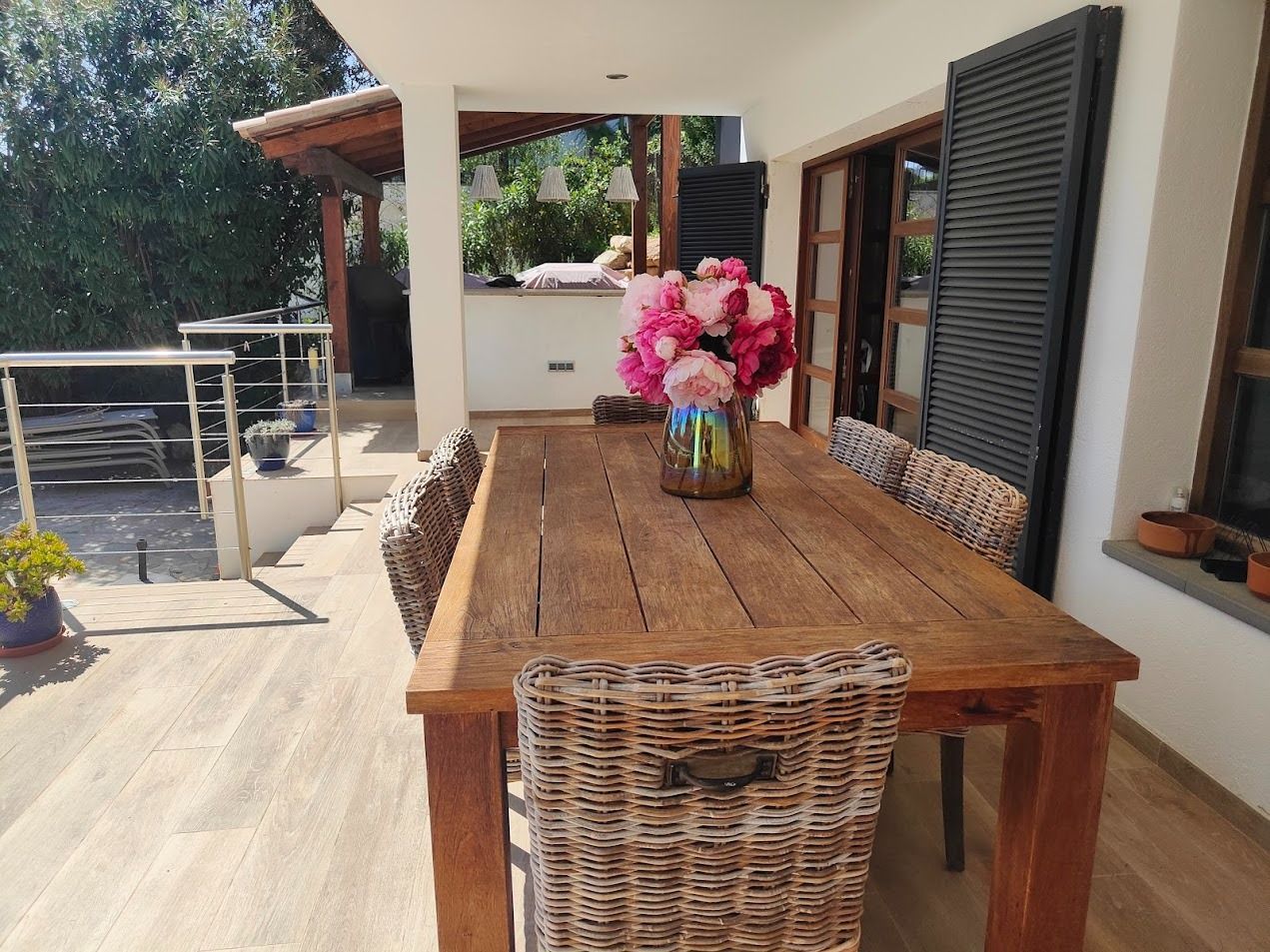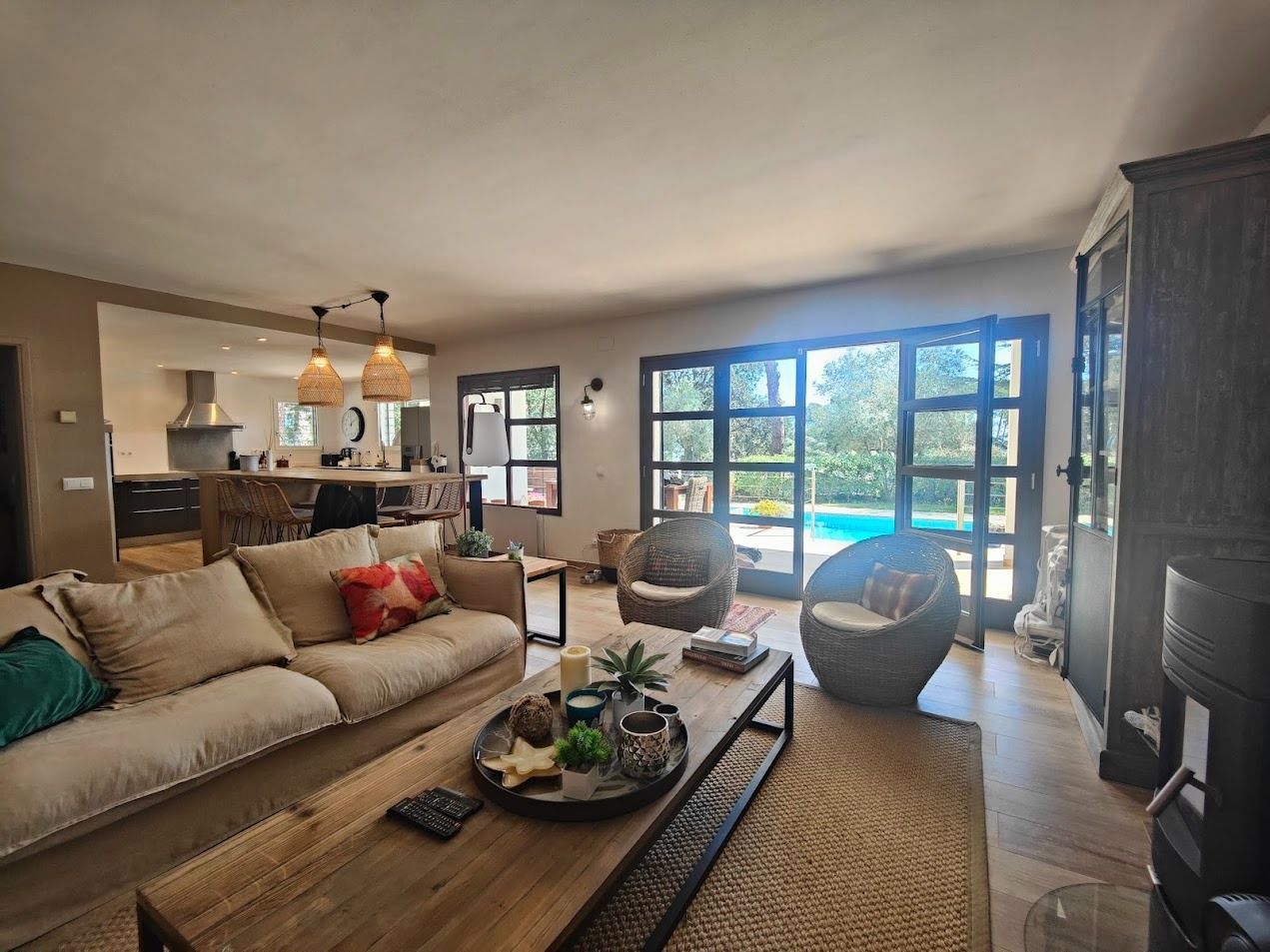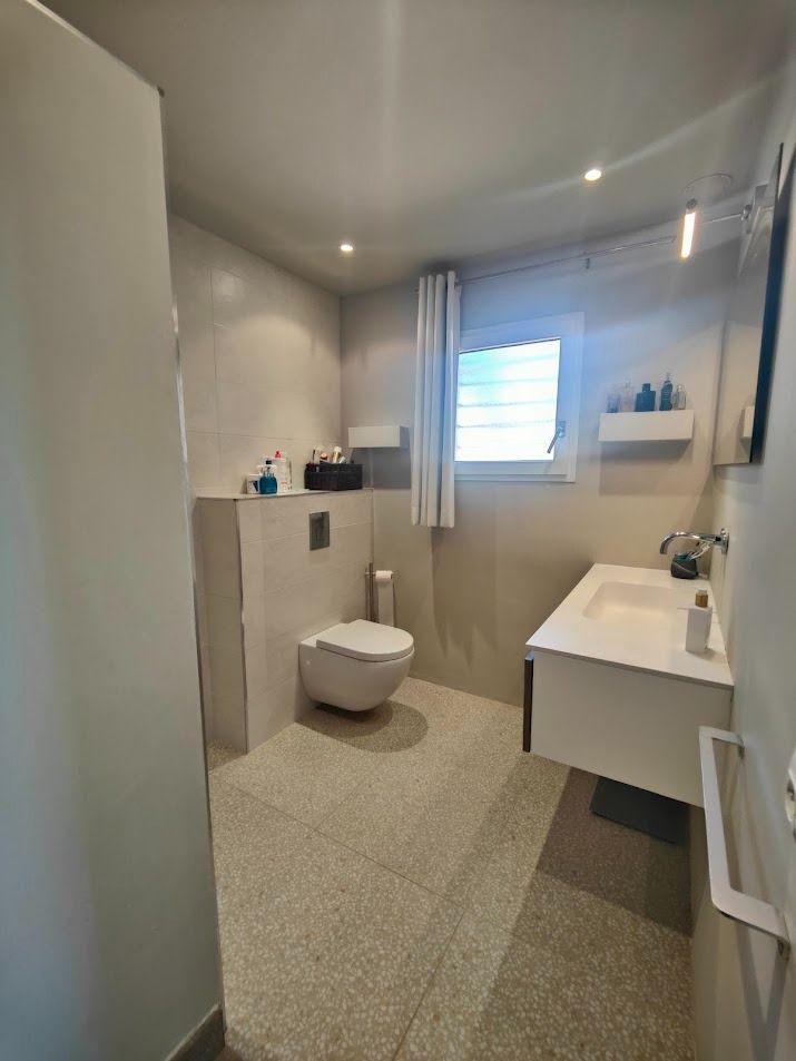 Just 800 metres from the beach and 2 kilometres from the lively centre of Platja d’Aro, this beautiful detached villa is situated in the exclusive residential area of Mas Treumal. Here you can enjoy the perfect balance between peace, privacy and the vibrant life on the Costa Brava. The villa is situated in a dead-end street in a green, quiet area and offers complete privacy. Thanks to its location, you can easily walk to the beach or cycle to the centre. The house has been completely renovated in recent years and has also been expanded with a separate guest room with private bathroom on the ground floor and a newly constructed swimming pool (10 x 5 metres, approx. 2015). This stylish villa has a total built-up area of 257 m² and is situated on a generous plot of 1,451 m². Ground floor: - Representative entrance - Spacious and bright living/dining room with wood stove and direct access to the covered terrace - Luxurious open kitchen, fully equipped with modern built-in appliances - Guest toilet First floor: - Master bedroom with bathroom en suite - Two comfortable double bedrooms - Modern shared bathroom All bedrooms on the upper floor give access to a terrace with a beautiful view of the green surroundings of the urbanization. Adjacent to the house is a separate guest bedroom with private bathroom and private entrance - ideal for guests. You also have a spacious separate storage room. An absolute eye-catcher is the cozy covered barbecue area with bar - the perfect place to spend long summer evenings with family or friends. Special features: - Aluminum frames with double glazing - Aluminum shutters for windows and doors - Built-in wardrobes in the bedrooms - Air conditioning in the bedrooms - Electric radiators - Automatic garden irrigation - Recently renovated infrastructure in the area (including roads and sewer) This villa combines Mediterranean charm with modern living comfort and a fantastic location - an ideal (second) home under the Spanish sun. Taxes, notary fees and registration costs are not included in the sales price.[IW]