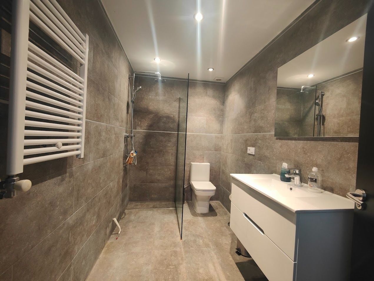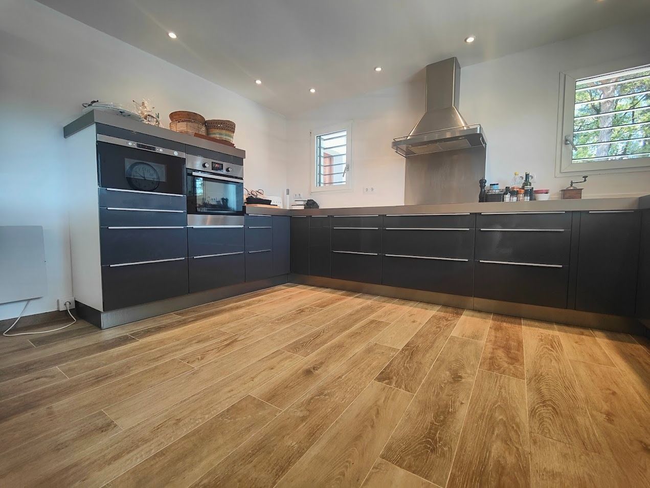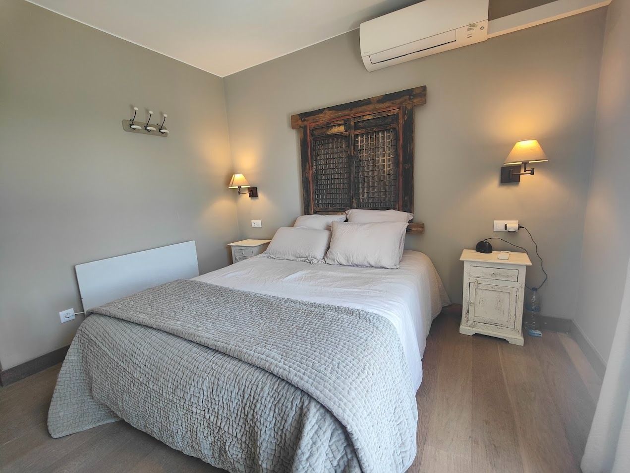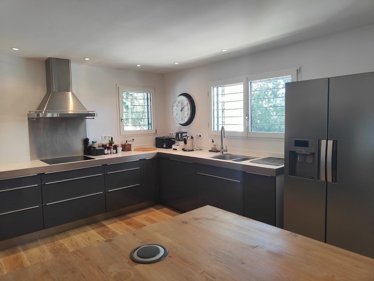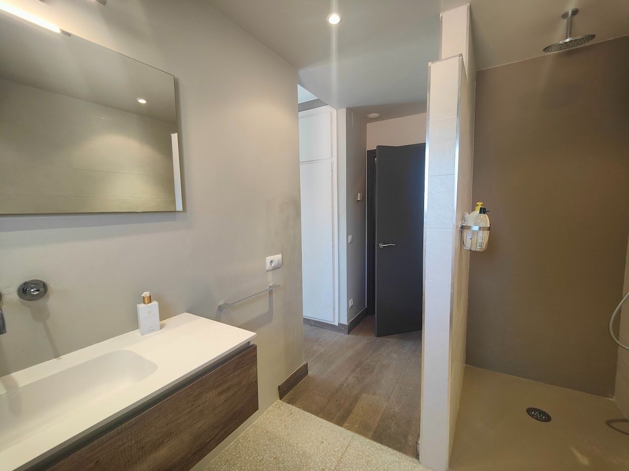 Just 800 metres from the beach and 2 kilometres from the lively centre of Platja d’Aro, this beautiful detached villa is situated in the exclusive residential area of Mas Treumal. Here you can enjoy the perfect balance between peace, privacy and the vibrant life on the Costa Brava. The villa is situated in a dead-end street in a green, quiet area and offers complete privacy. Thanks to its location, you can easily walk to the beach or cycle to the centre. The house has been completely renovated in recent years and has also been expanded with a separate guest room with private bathroom on the ground floor and a newly constructed swimming pool (10 x 5 metres, approx. 2015). This stylish villa has a total built-up area of 257 m² and is situated on a generous plot of 1,451 m². Ground floor: - Representative entrance - Spacious and bright living/dining room with wood stove and direct access to the covered terrace - Luxurious open kitchen, fully equipped with modern built-in appliances - Guest toilet First floor: - Master bedroom with bathroom en suite - Two comfortable double bedrooms - Modern shared bathroom All bedrooms on the upper floor give access to a terrace with a beautiful view of the green surroundings of the urbanization. Adjacent to the house is a separate guest bedroom with private bathroom and private entrance - ideal for guests. You also have a spacious separate storage room. An absolute eye-catcher is the cozy covered barbecue area with bar - the perfect place to spend long summer evenings with family or friends. Special features: - Aluminum frames with double glazing - Aluminum shutters for windows and doors - Built-in wardrobes in the bedrooms - Air conditioning in the bedrooms - Electric radiators - Automatic garden irrigation - Recently renovated infrastructure in the area (including roads and sewer) This villa combines Mediterranean charm with modern living comfort and a fantastic location - an ideal (second) home under the Spanish sun. Taxes, notary fees and registration costs are not included in the sales price.[IW]