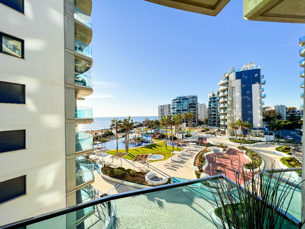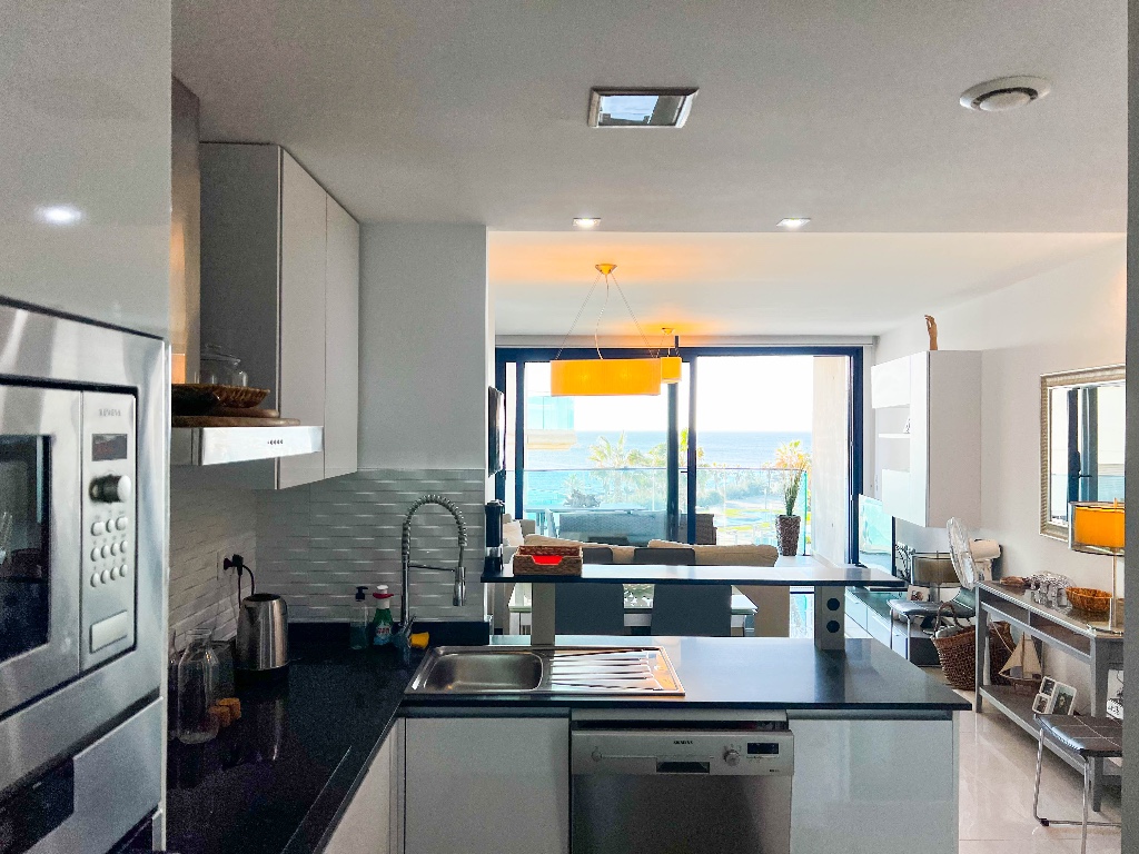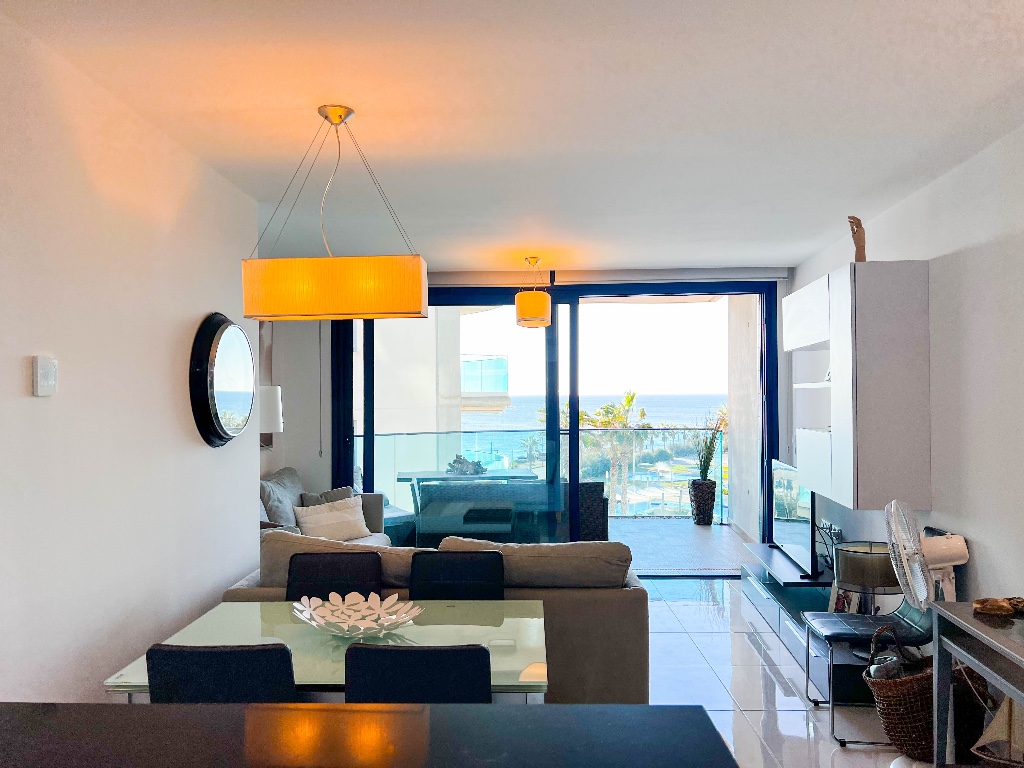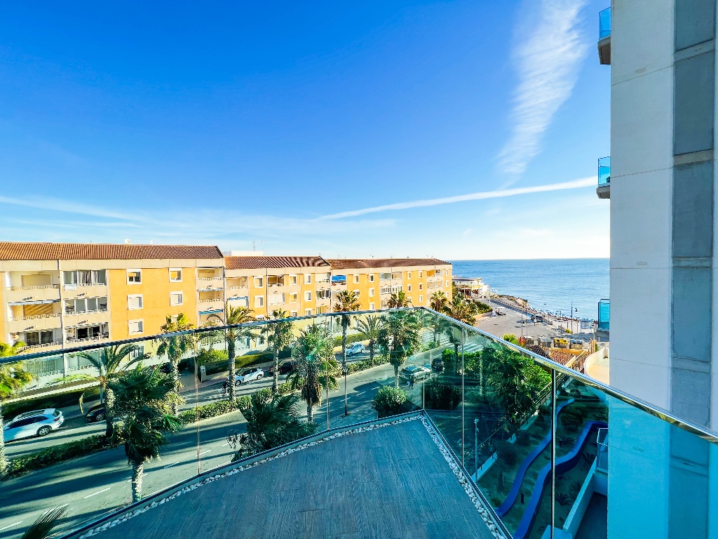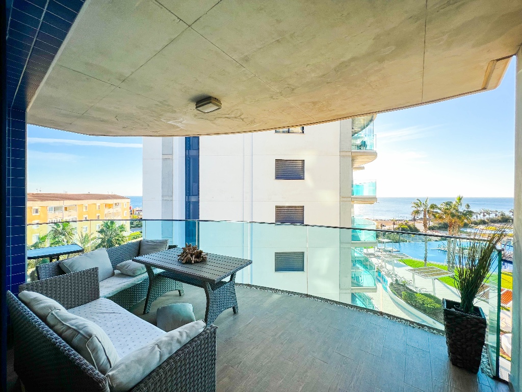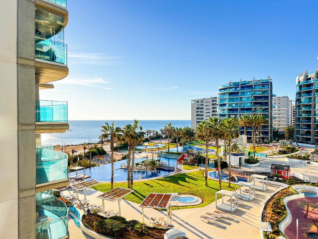 Apartment for sale on the beachfront in a gated luxury residential complex with swimming pools including heated one, gym, sauna, children's playground and chill out area.This beautiful apartment is fully furnished and equipped with everything necessary for a comfortable stay. On the spacious terrace you can enjoy stunning panoramic views of the sea and the pools. The apartment has 2 bedrooms, 2 bathrooms, living room with a sofa, kitchen and a spacious terrace with table and chairs. The apartment has a place in the underground garage as well.The residential complex ¨Sea Senses¨ has landscaped area with infinity pool. One of the pools is heated, the other - with a Jacuzzi, water slides and a water massage bed. There is a cafe and two bars. The complex is equipped with sports facilities: paddle court and a basketball playground, gym overlooking the sea, spa with Turkish and Finish Saunas, children's playground with a toy house, ping pong, zone with free wifi, as well as underground parking.In walking distance there are restaurants, shopping centers, bus stop, supermarket, bank offices of Punta Prima. Also within 10-minute drive you will find several golf courses, water park, clubs and discos, go-karting, sports centers, yacht port and a variety of stunning sandy beaches of Costa Blanca.