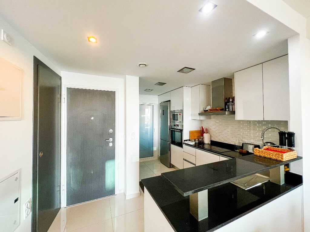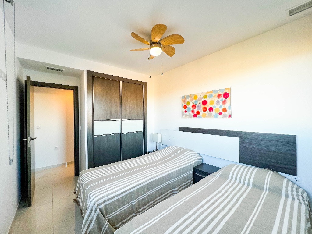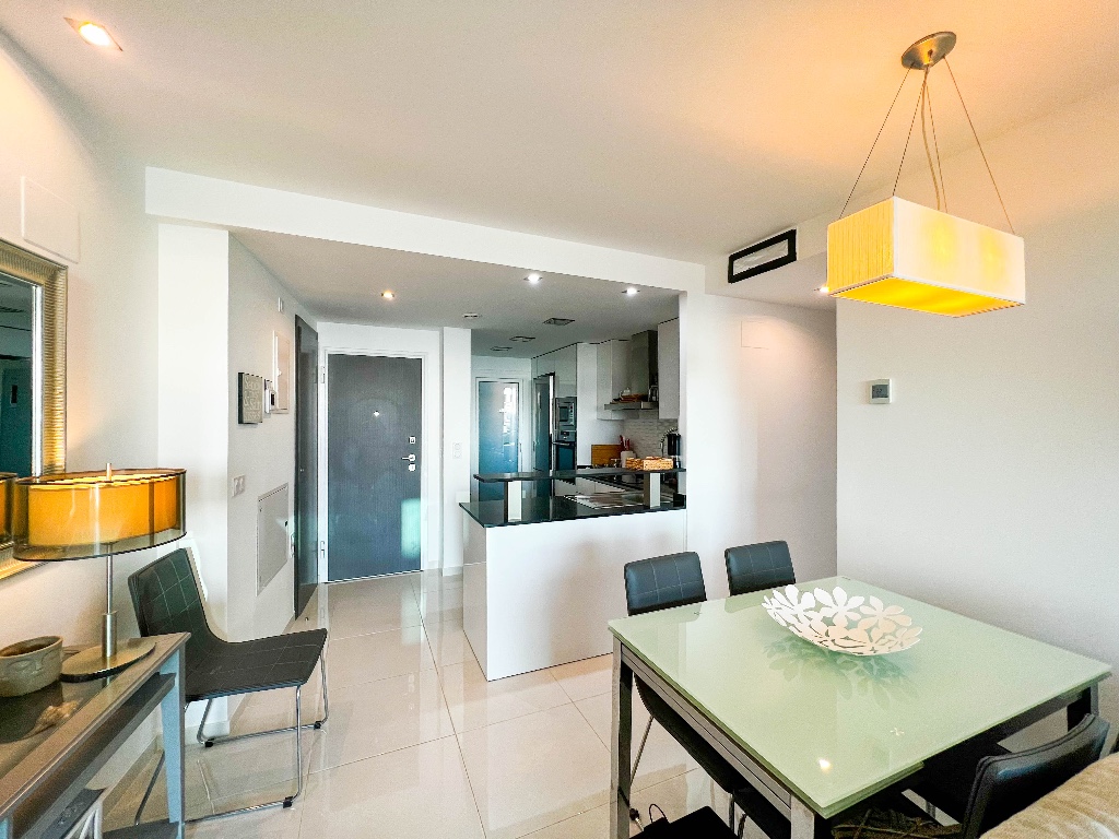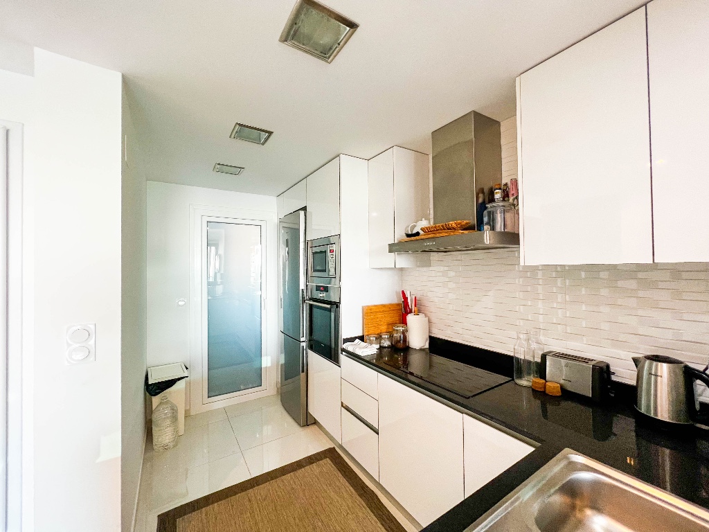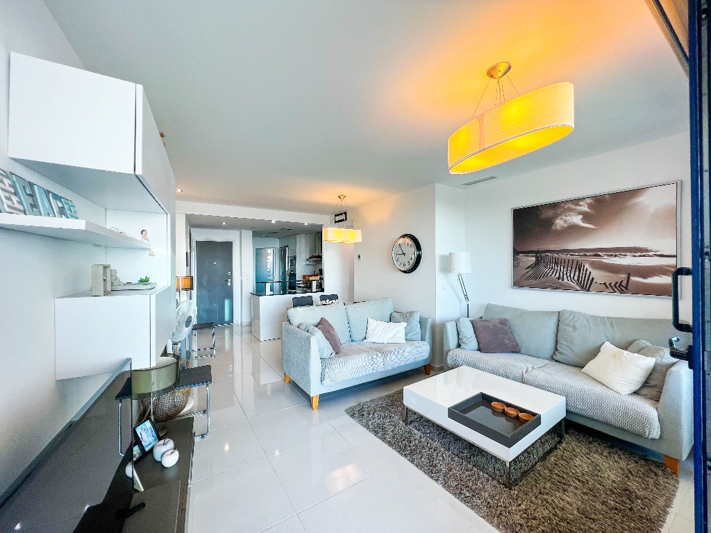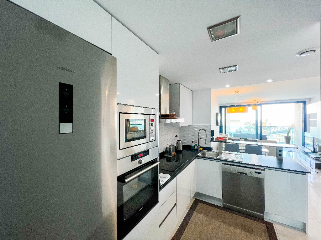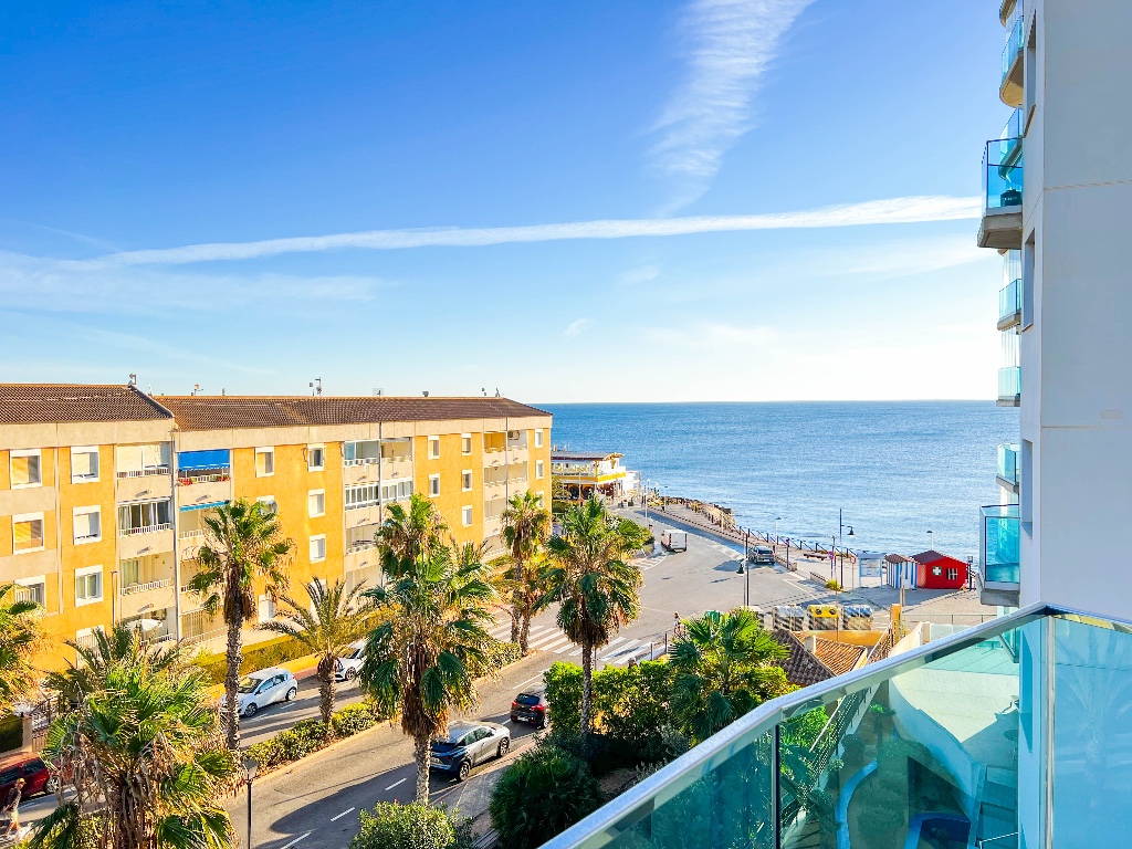 Apartment for sale on the beachfront in a gated luxury residential complex with swimming pools including heated one, gym, sauna, children's playground and chill out area.This beautiful apartment is fully furnished and equipped with everything necessary for a comfortable stay. On the spacious terrace you can enjoy stunning panoramic views of the sea and the pools. The apartment has 2 bedrooms, 2 bathrooms, living room with a sofa, kitchen and a spacious terrace with table and chairs. The apartment has a place in the underground garage as well.The residential complex ¨Sea Senses¨ has landscaped area with infinity pool. One of the pools is heated, the other - with a Jacuzzi, water slides and a water massage bed. There is a cafe and two bars. The complex is equipped with sports facilities: paddle court and a basketball playground, gym overlooking the sea, spa with Turkish and Finish Saunas, children's playground with a toy house, ping pong, zone with free wifi, as well as underground parking.In walking distance there are restaurants, shopping centers, bus stop, supermarket, bank offices of Punta Prima. Also within 10-minute drive you will find several golf courses, water park, clubs and discos, go-karting, sports centers, yacht port and a variety of stunning sandy beaches of Costa Blanca.