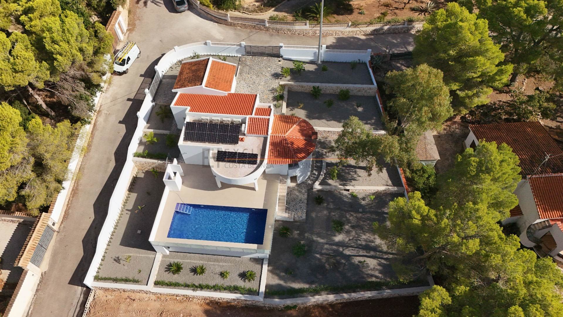 Located in a quiet residential area, this villa is distributed over 2 levels and situated in a terraced mature garden. With 4 bedrooms and 3 bathrooms, a large open living with a kitchen. A pool with a terrace, a lovely garden, and a garage The villa has a very nice atmosphere, due to the abundance of daylight and not least because of the perfect maintenance. New air conditioners have recently been installed throughout the house, with which you can of course also heat the rooms. Double glazing and new PVC windows ensure a comfortable stay, even in winter. Do not delay your visit to this lovely villa.[IW]