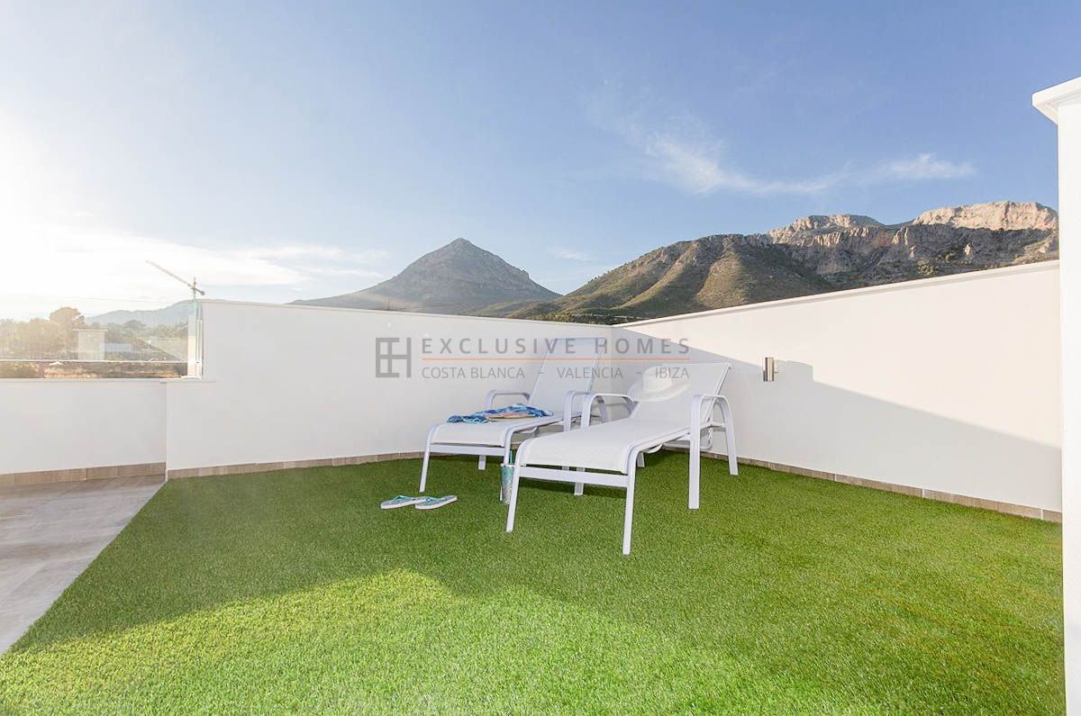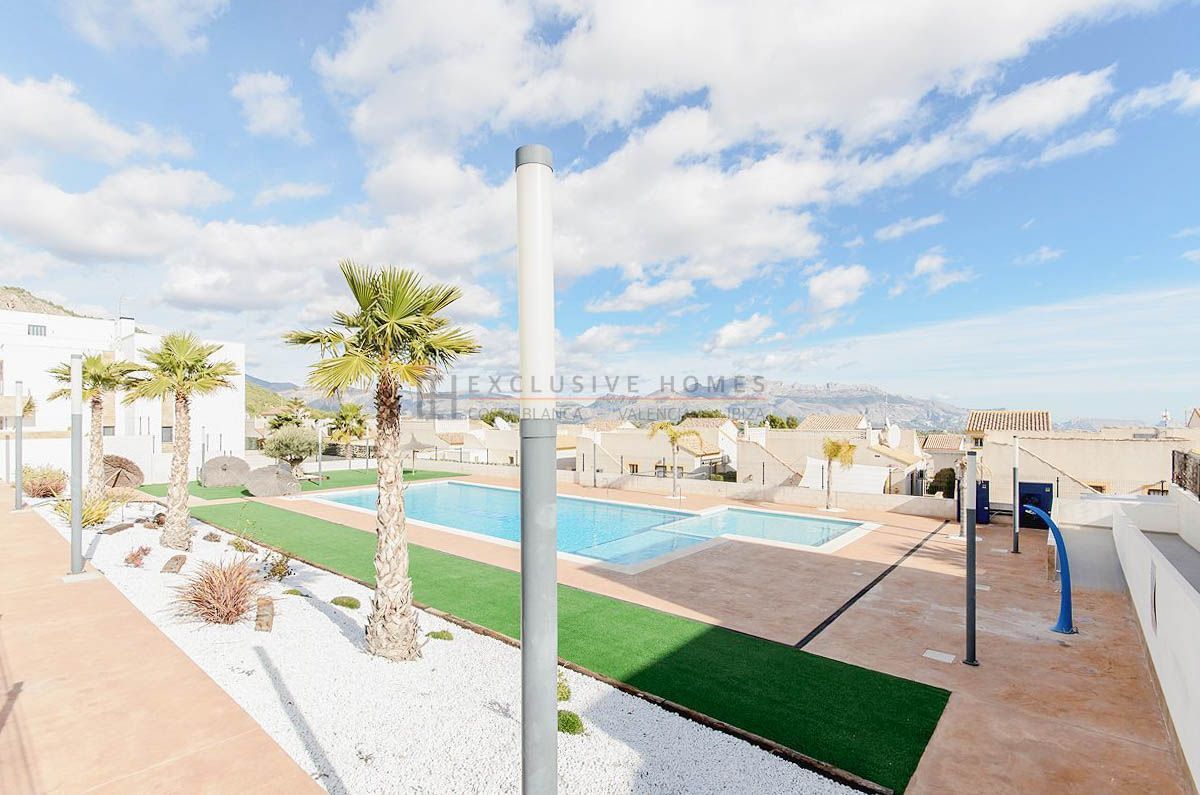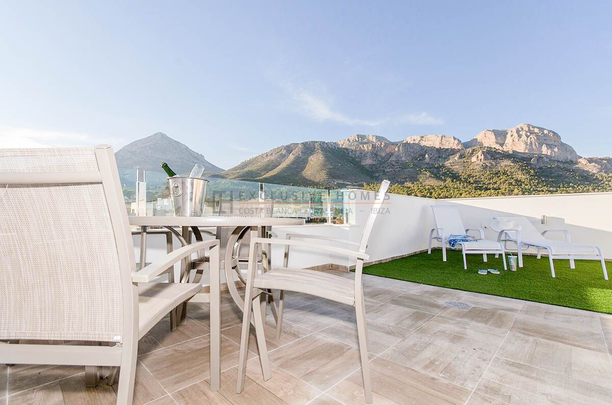 This contemporary penthouse in Polop offers a perfect blend of sophistication, comfort, and breathtaking views. With two bedrooms and two bathrooms, this residence stands out for its modern design and high-end finishes. The kitchen, fully furnished and equipped, is ready to meet the needs of any culinary enthusiast. The multiple terraces that adorn this property allow you to enjoy the Mediterranean climate and the stunning mountain and sea views. Additionally, comfort merges with modernity thanks to ducted air conditioning and underfloor heating, ensuring a perfect temperature year-round. The penthouse features a garage, providing added convenience and security. An additional highlight is the 63 m² solarium, an expansive space ideal for relaxing, sunbathing, or enjoying outdoor dinners under the stars. Built in 2022, this penthouse reflects the latest in design and technology. It is part of an urbanization that includes a pool for refreshing swims and landscaped areas, offering an ideal setting for leisure and recreation. This property is a true gem that combines luxury and functionality in an unparalleled natural environment.[IW]