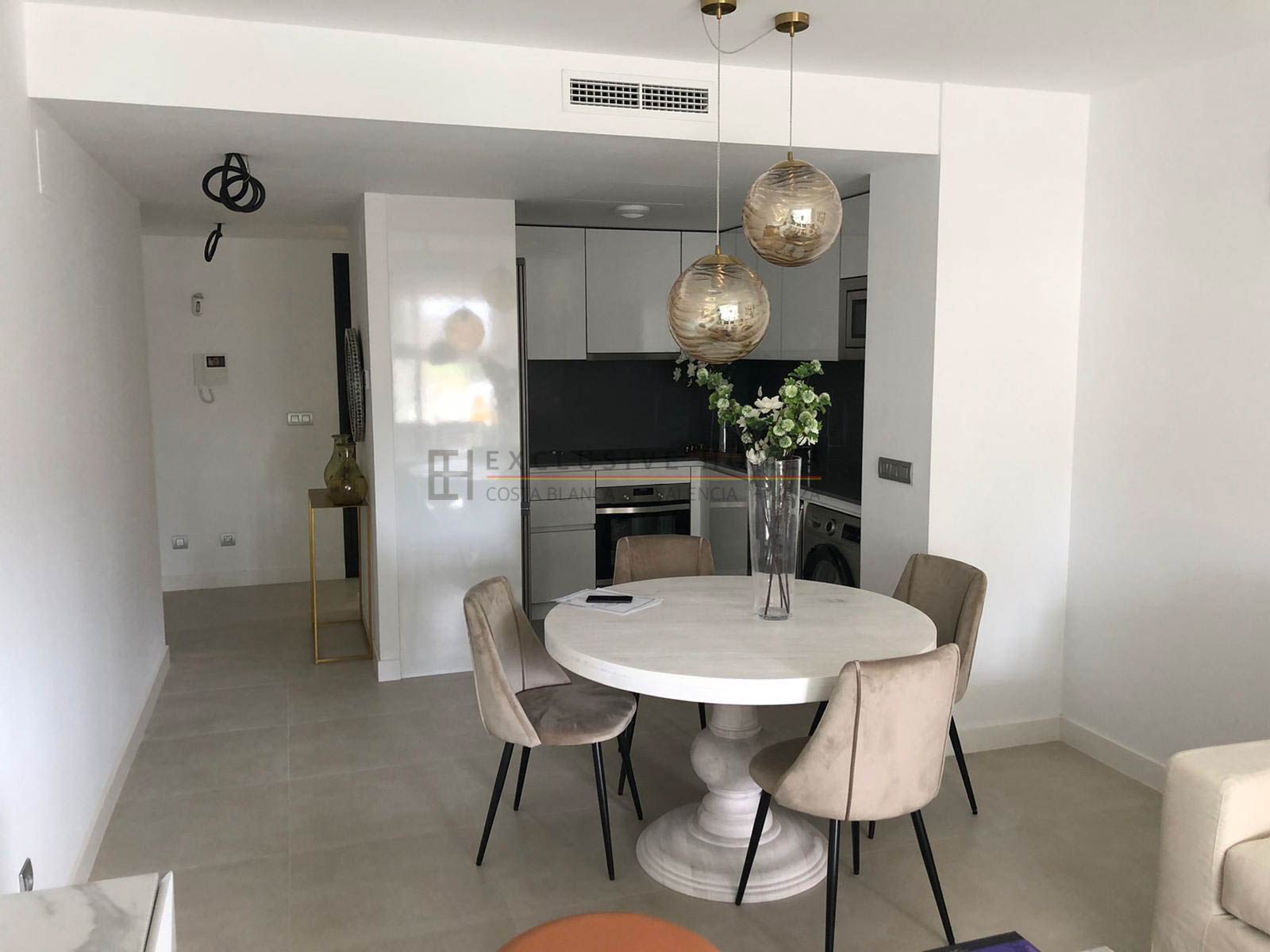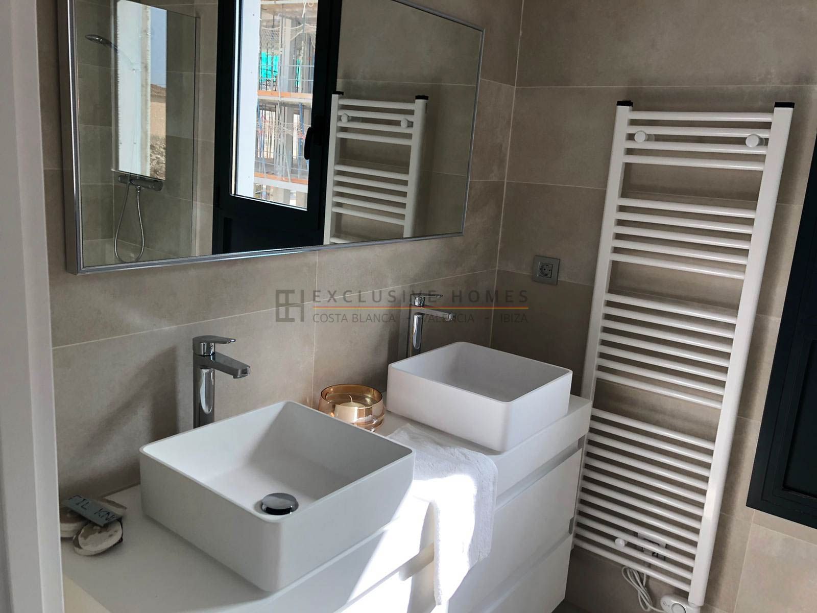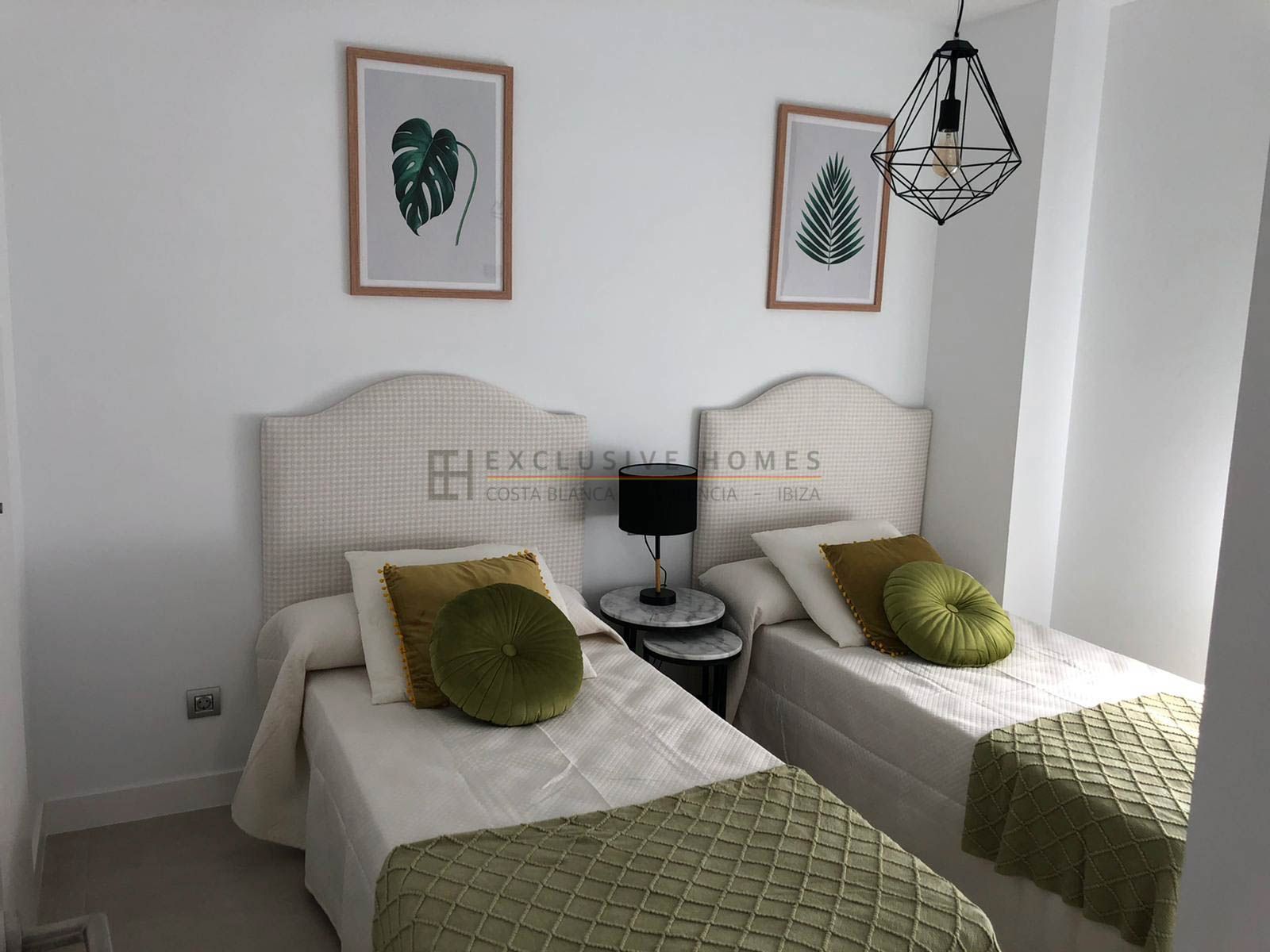 Two modern apartment blocks, currently under construction, located just a 3-minute walk from the Arenal beach and the beautiful promenade. The city centre with its restaurants, cafes, supermarkets, shops and nightlife is a stone's throw from this modern and high-quality complex. Views over the salt lake, Levante beach, the Peñón de Ifach, the mountains and / or the sea. Both buildings consist of 85 apartments spread over 15 floors. Apartments with two or three bedrooms, two bathrooms, living-dining room with fully fitted and equipped open kitchen, large windows, and partially Covered terraces with sea views (from the fifth floor, higher floors, better views). Different materials are offered so that you get a finishing that best suits your style. Equipment: security door, top quality ceramic tiles, Climalit double glazing, video intercom, TV connection, telephone, and internet connection, fitted wardrobes, White bathroom furnishings from leading brands, modern chrome taps, heating, and air conditioning by aerothermal channels, etc. The communal area with gardens, large swimming pool, paddle-tennis court and roofed recreation area invites you to enjoy the beautiful sunset after a sunny day at the beach. Both buildings have a communal area on the ninth floor that will serve as a recreation room, surrounded by the beautiful sea views, gym, terrace, and gourmet area. Price for a 3-bedroom apartment from 301.750 Euro Garage space and storage is not included in the price but can be purchased for 20 000 EUR in addition to the purchase price. Do not hesitate to contact us for more information![IW]