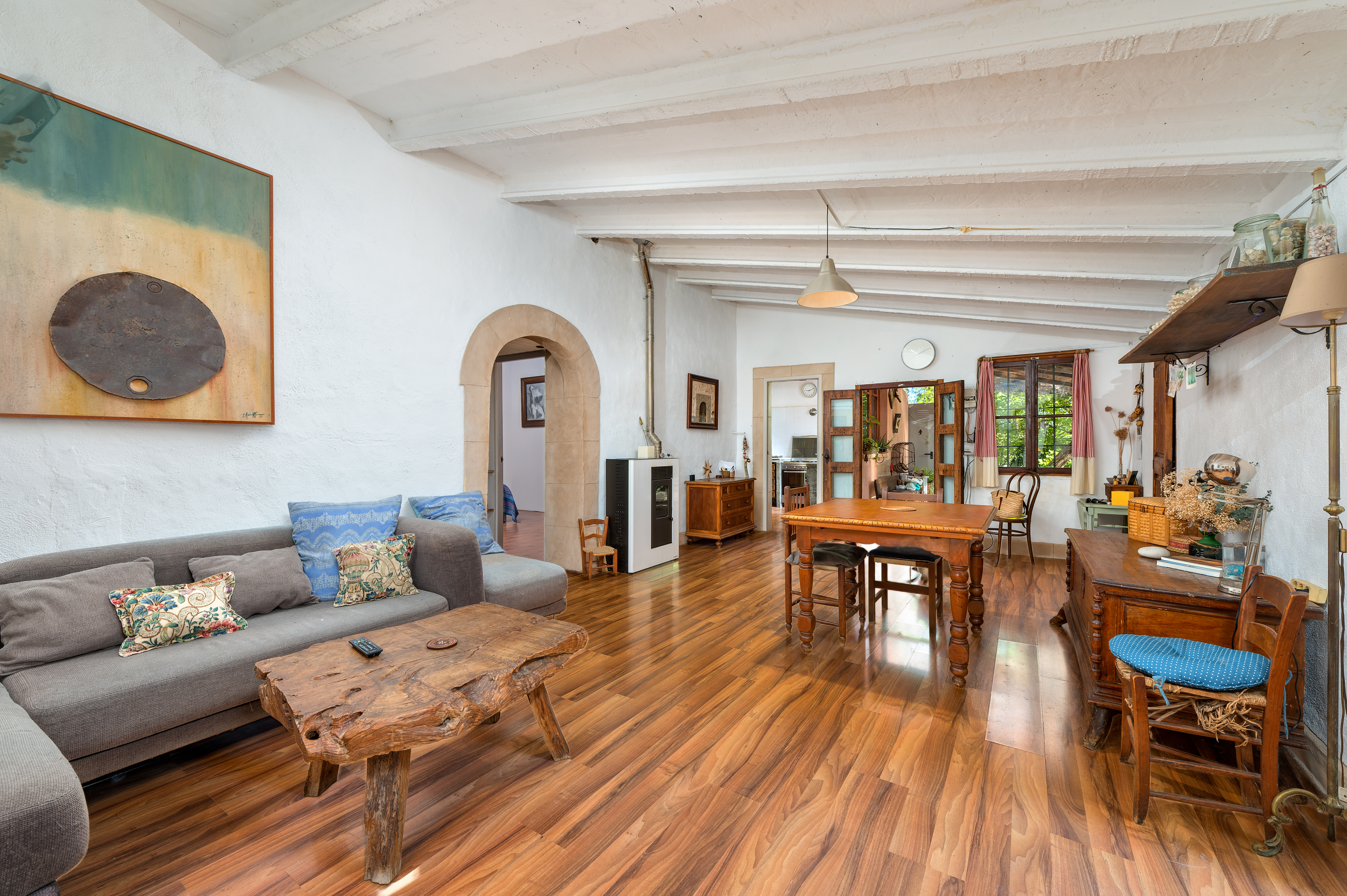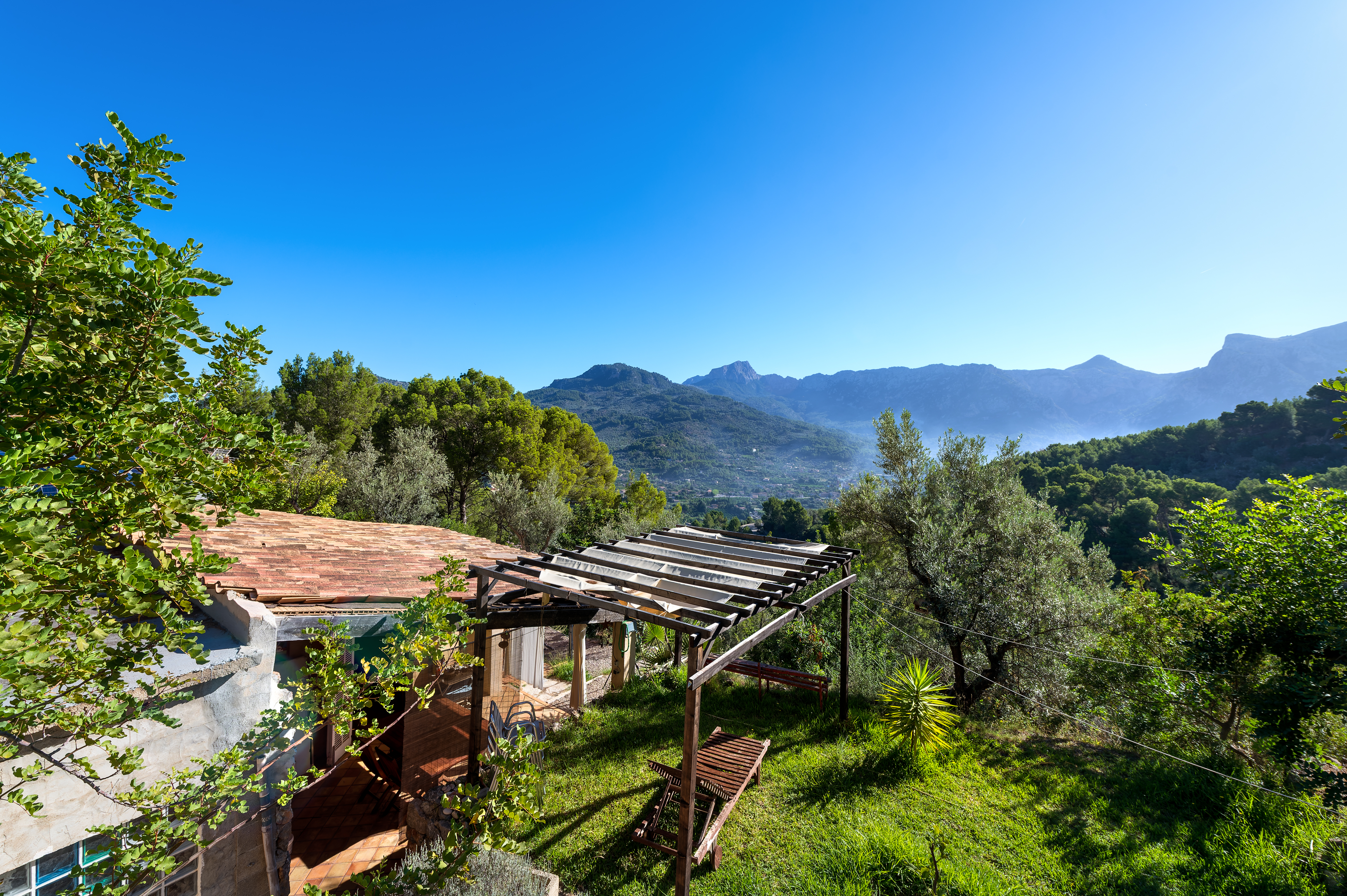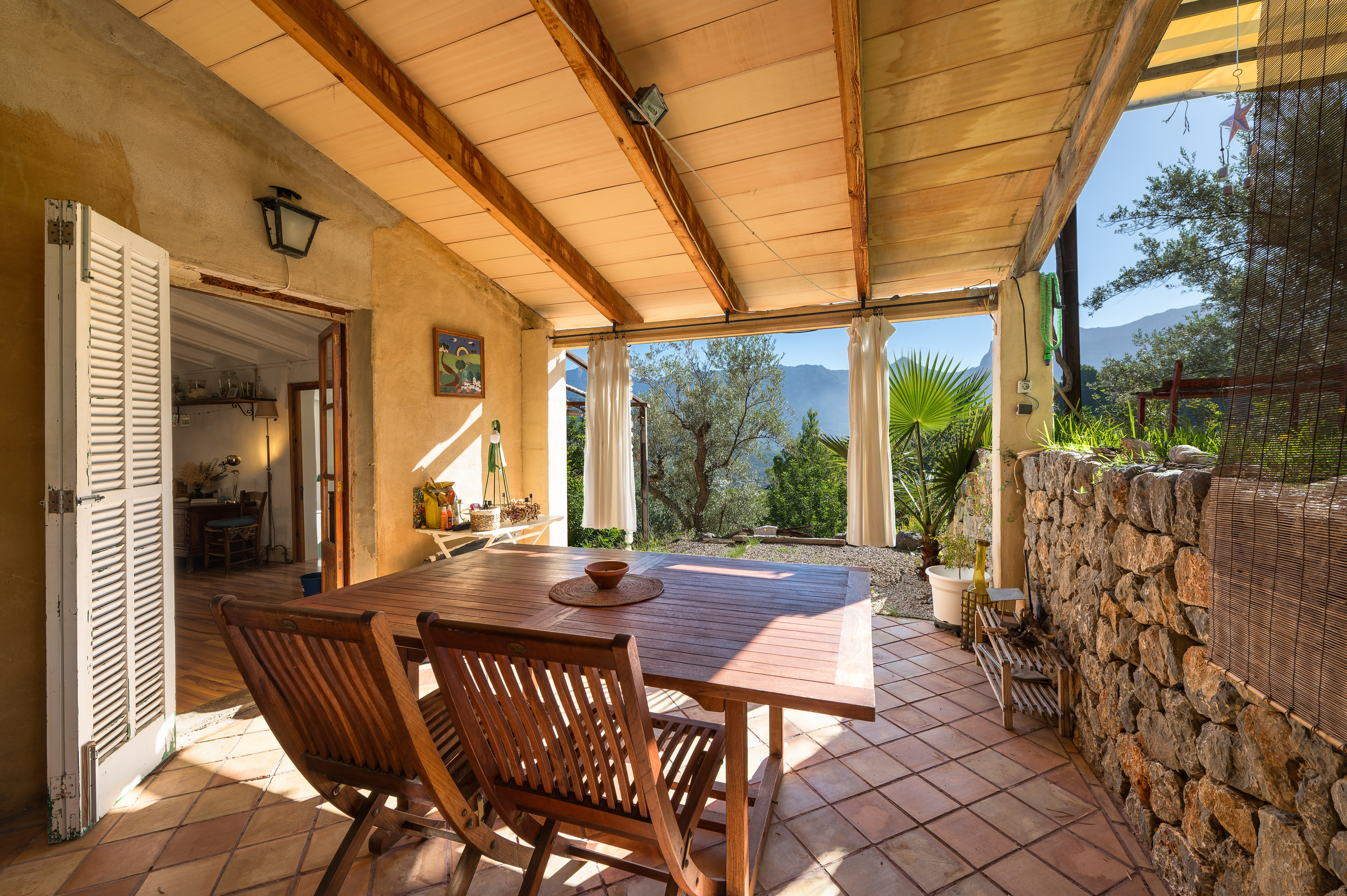 Wonderful country house of 130 m2 in the outskirts of Sóller. It has only one floor and it is distributed in living dining room, fully fitted kitchen, three double bedrooms, one complete bathroom, one toilet and laundry room. The property has a plot of land of about 11.000 m2 and has its own water well. It is equipped with solar panels and pellet cooker. The house also has a nice garden and several terraces to enjoy the tranquillity and the impressive views to the valley of Sóller. It is located in a sunny area during the whole year and only a few minutes by car from the centre of Sóller.
