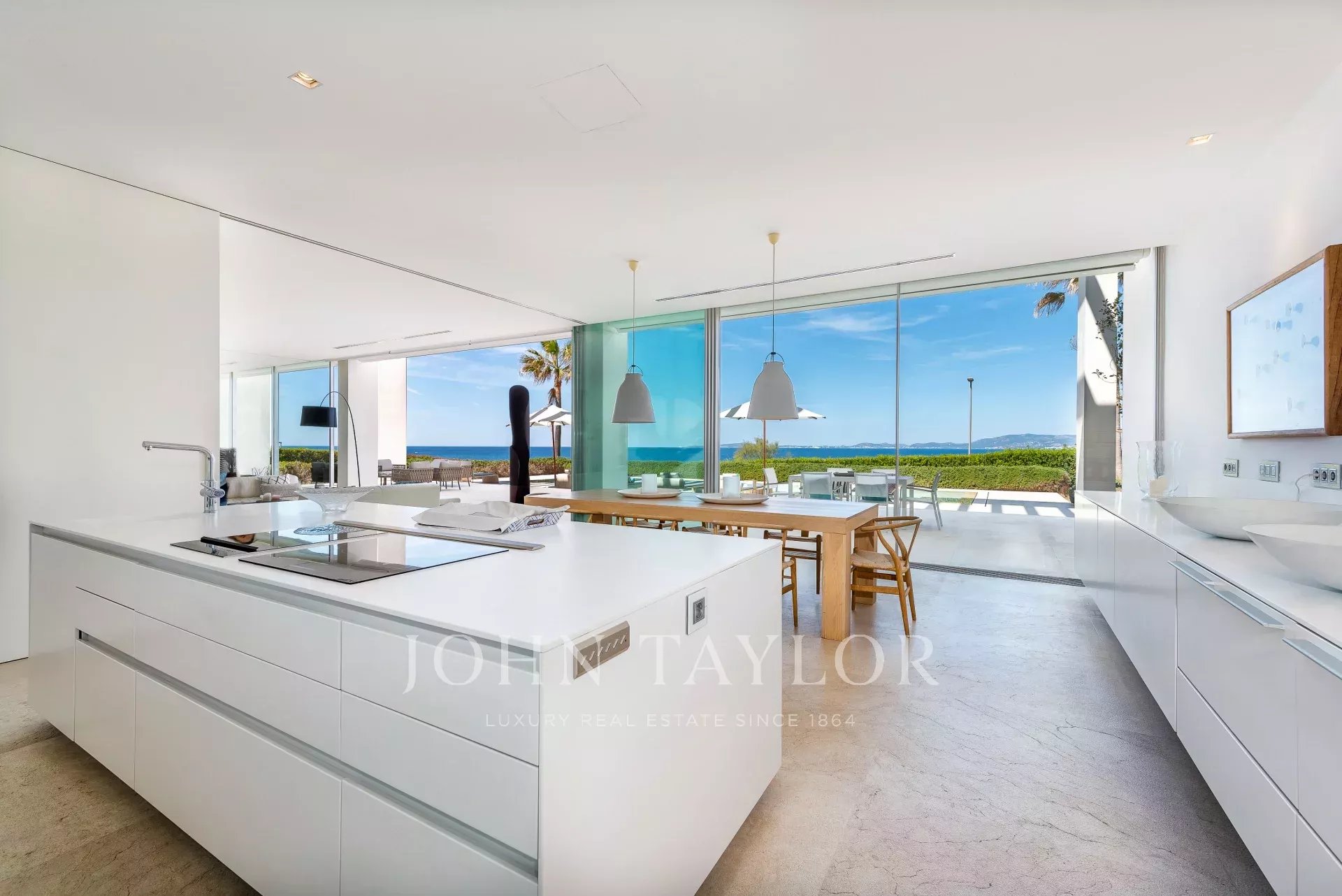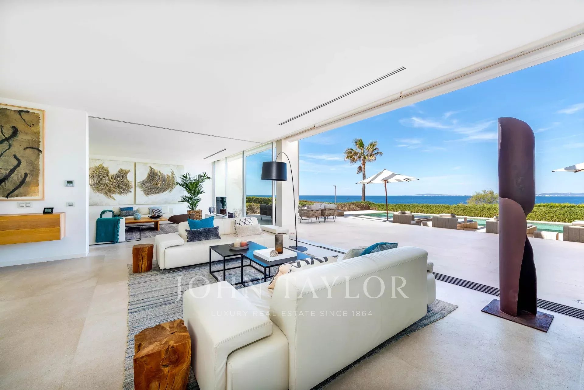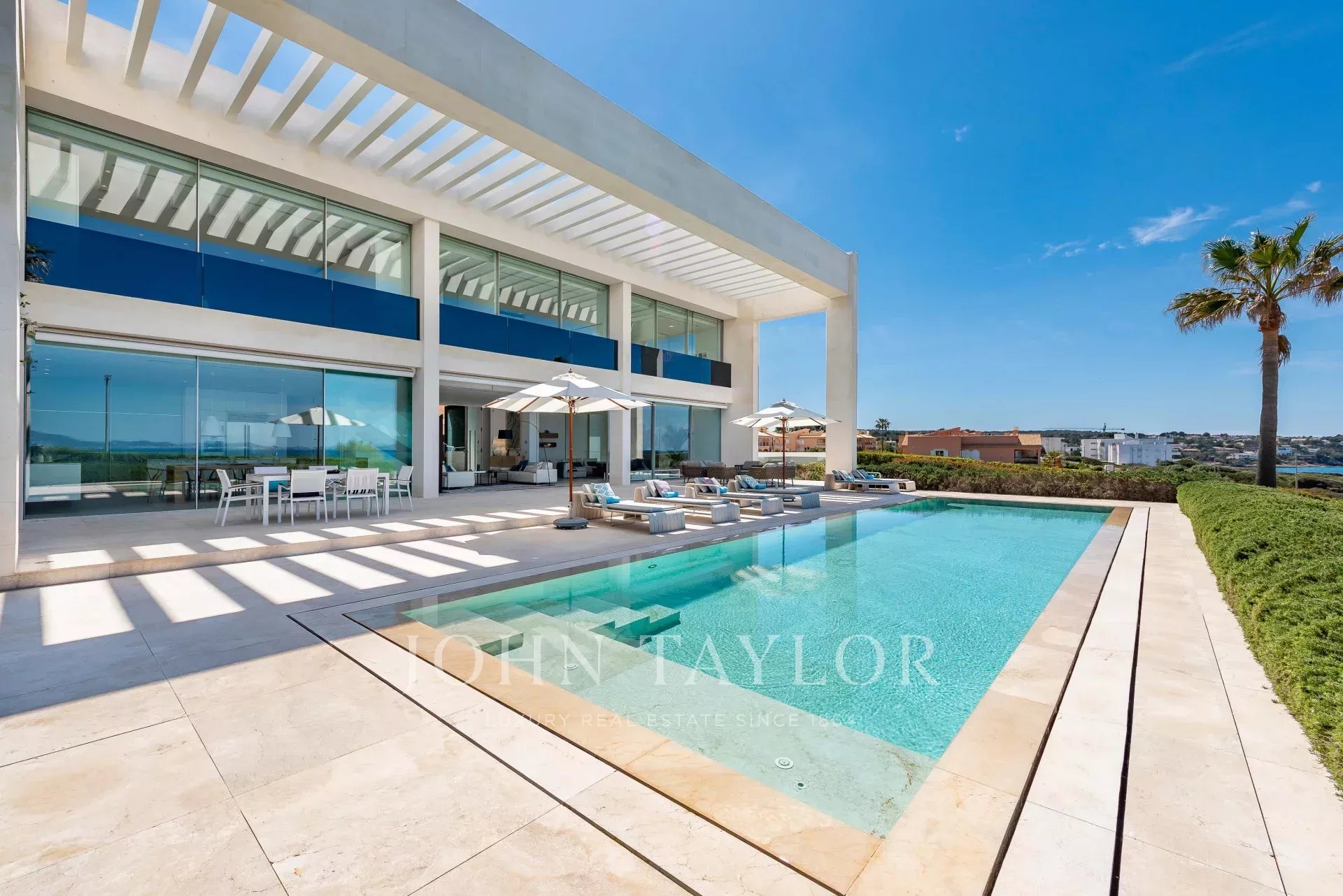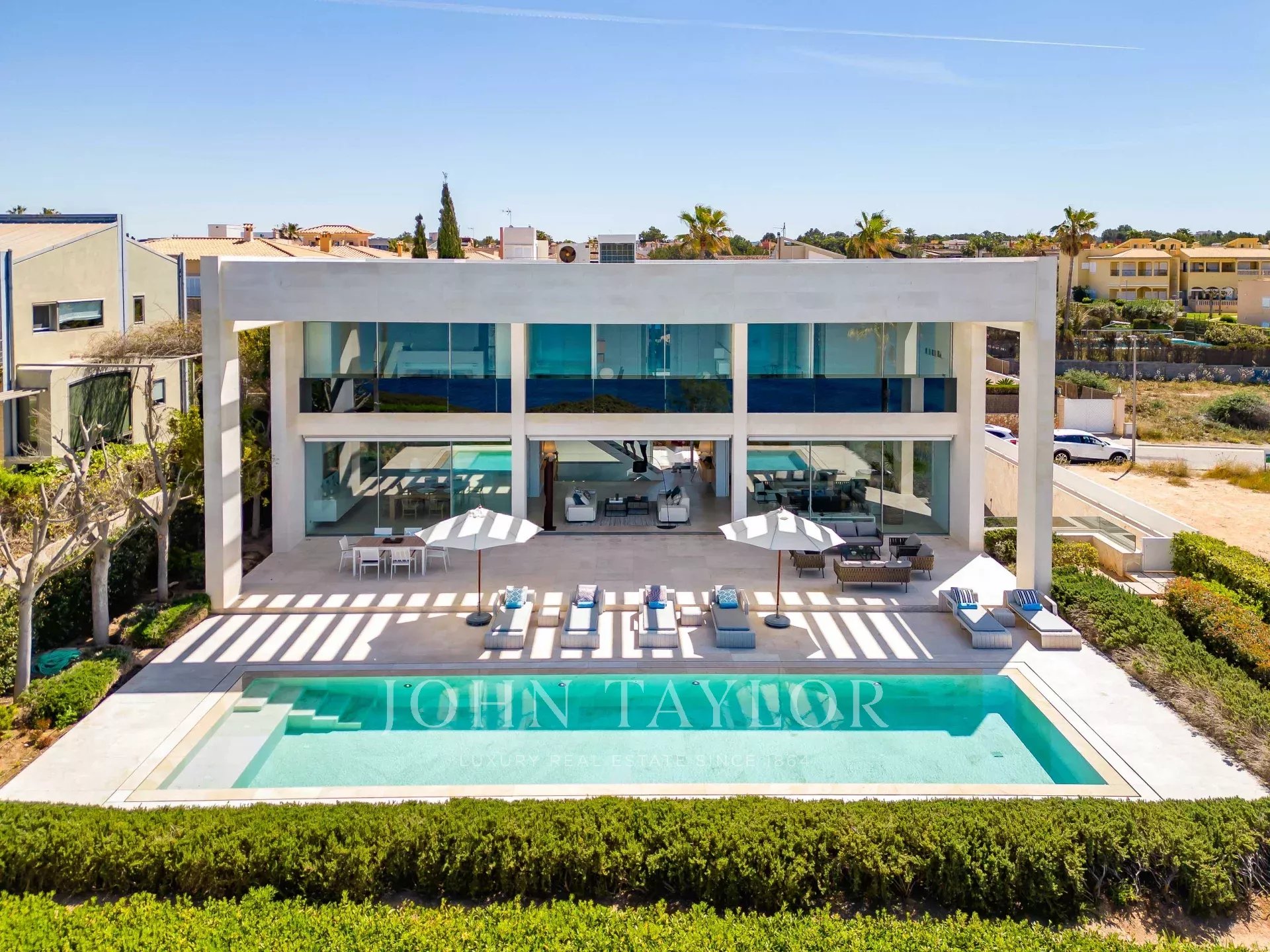 Spectacular luxury Villa Frontline to the Sea This fantastic villa on the seafront in Son Veri, is located in the south of the island of Mallorca. Size, comfort and modern design are the special features of this breathtaking villa, which is characterized by large windows and space, that integrates the landscape and light into the luxury villa. The very high quality villa has 4 large bedrooms with the possibility of a fifth bedroom. Each bedroom enjoys incredible sea views and has its own bathrooms. The living room and dining room are integrated perfectly with the open fully equipped kitchen. Outside there is a fabulous pool with a chill-out zone, where you can enjoy the luxury lifestyle and wonderful sundowns. The property is completed with a beautiful Mediterranean garden and a garage for six vehicles. The area which starts behind the club nautico Arenal is called Son Veri and is devided in an older part with more traditional buildings (Son Veri Vell) and the newer part (Son Veri Nou). The area of Son Veri Vell has many holiday homes of Mallorquin and Spanish families alike who like to spend their summer vacations in this area. Most houses along the seafront have direct sea access and face south west so they enjoy the most amazing sunsets this beautiful island has to offer. Son Veri Nou has a commercial centre with a supermarket, smaller shops, restaurants as well as cafes and a medical centre. The villas are more modern and so are the apartment complexes with their own pools and community gardens. The promenade a long the seafront is perfect for a stroll or cycling. The coastline has one of the cleanest waters around Mallorca and is a popular spot in summer for swimming and snorkeling. Palma and the airport are just 10 - 15min by car and little sandy coves are literally at the doorsteps. The Club Nautico Arenal is the perfect spot for every boat enthusiasts and it offers many facilities like a gym, a sailing school and a boat rental, among others.