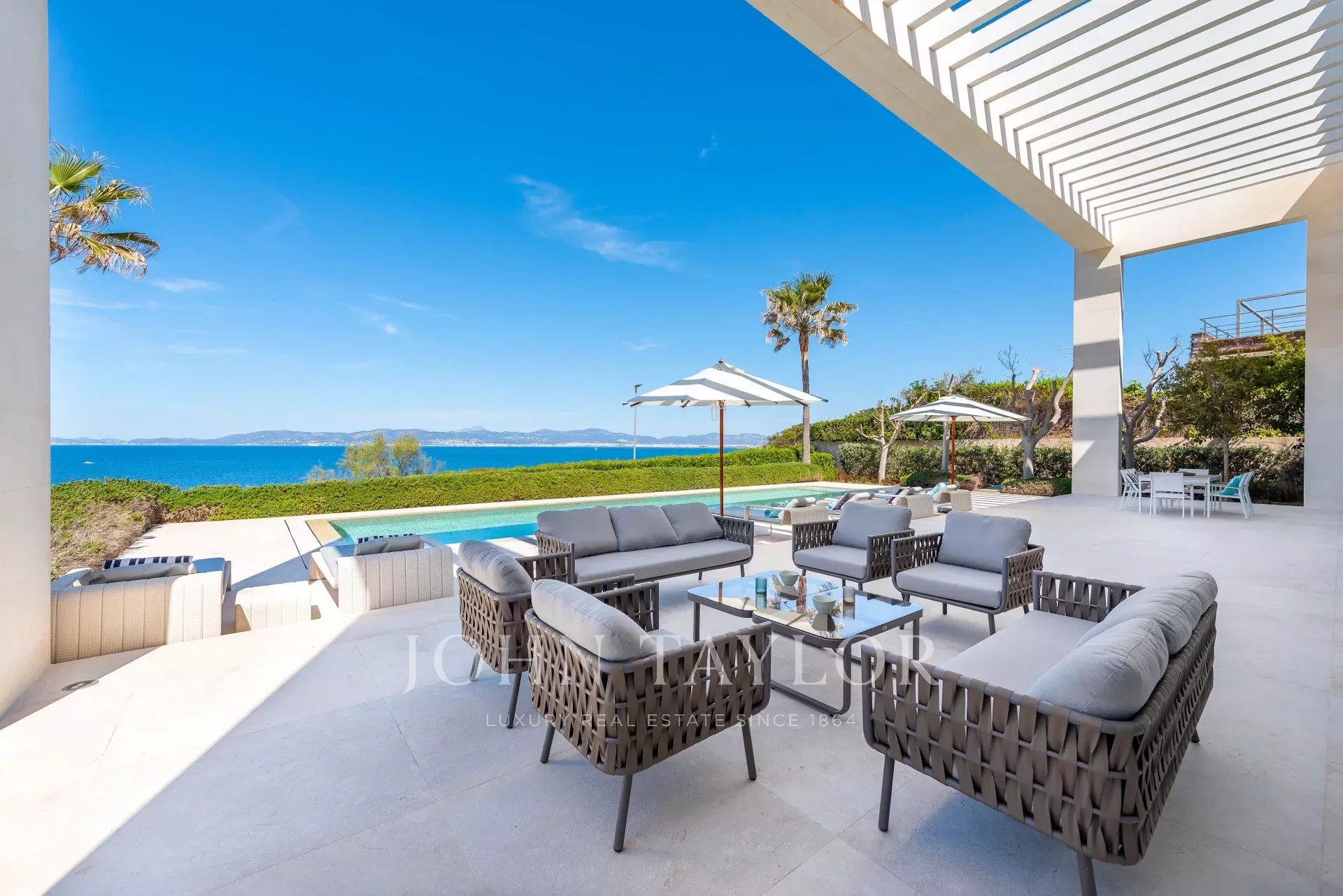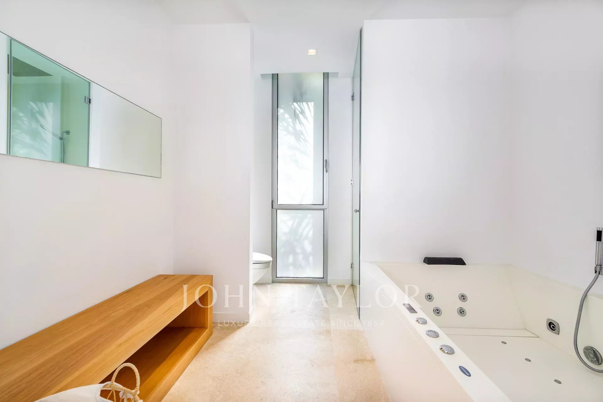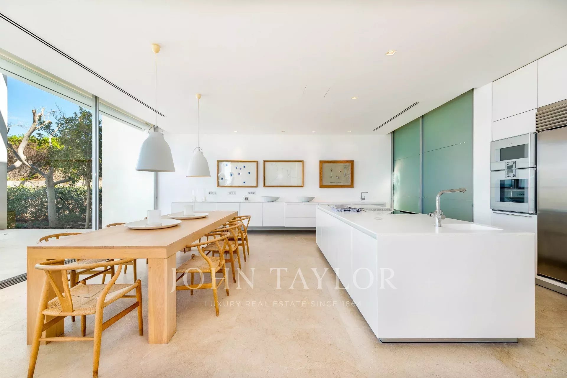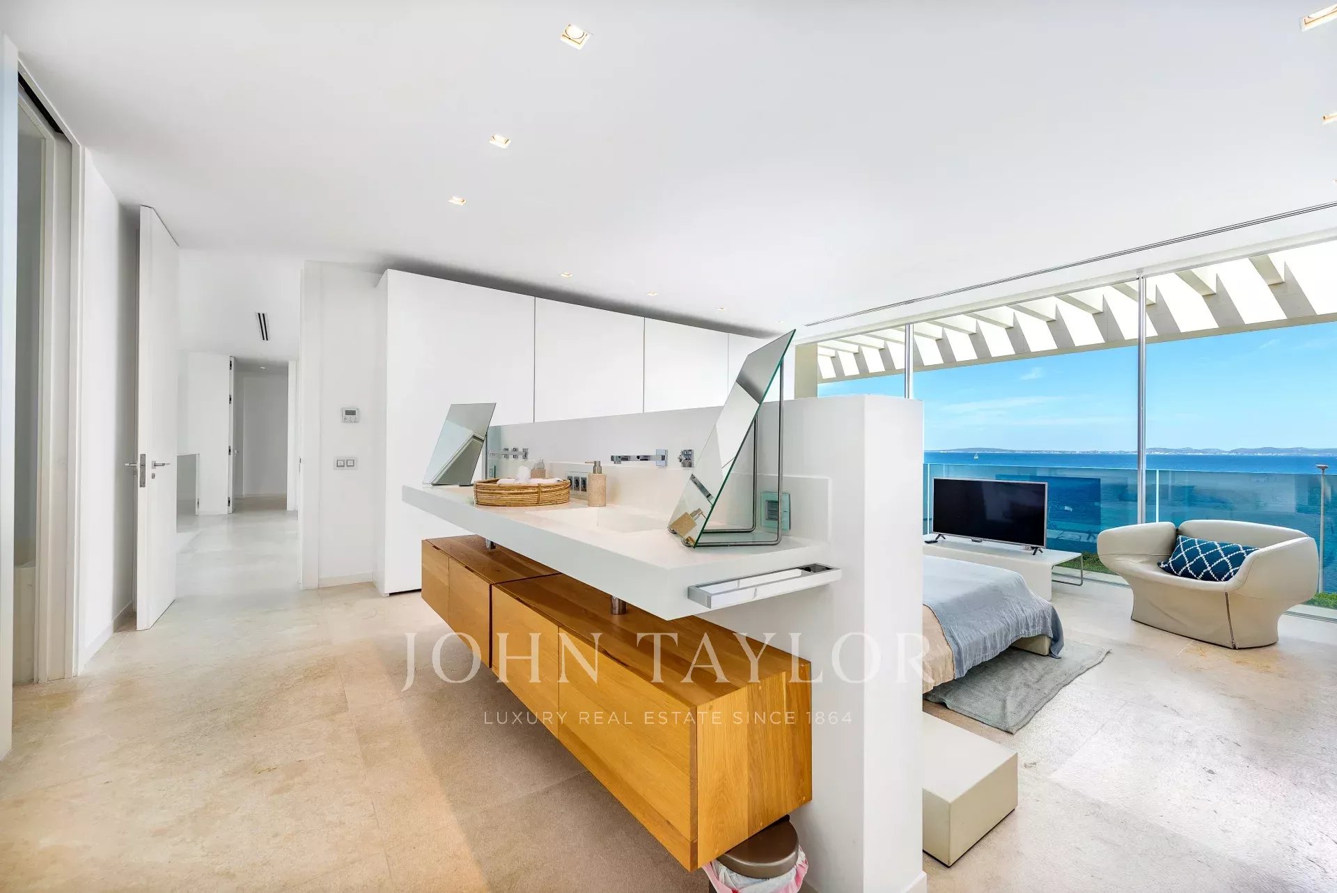 Spectacular luxury Villa Frontline to the Sea This fantastic villa on the seafront in Son Veri, is located in the south of the island of Mallorca. Size, comfort and modern design are the special features of this breathtaking villa, which is characterized by large windows and space, that integrates the landscape and light into the luxury villa. The very high quality villa has 4 large bedrooms with the possibility of a fifth bedroom. Each bedroom enjoys incredible sea views and has its own bathrooms. The living room and dining room are integrated perfectly with the open fully equipped kitchen. Outside there is a fabulous pool with a chill-out zone, where you can enjoy the luxury lifestyle and wonderful sundowns. The property is completed with a beautiful Mediterranean garden and a garage for six vehicles. The area which starts behind the club nautico Arenal is called Son Veri and is devided in an older part with more traditional buildings (Son Veri Vell) and the newer part (Son Veri Nou). The area of Son Veri Vell has many holiday homes of Mallorquin and Spanish families alike who like to spend their summer vacations in this area. Most houses along the seafront have direct sea access and face south west so they enjoy the most amazing sunsets this beautiful island has to offer. Son Veri Nou has a commercial centre with a supermarket, smaller shops, restaurants as well as cafes and a medical centre. The villas are more modern and so are the apartment complexes with their own pools and community gardens. The promenade a long the seafront is perfect for a stroll or cycling. The coastline has one of the cleanest waters around Mallorca and is a popular spot in summer for swimming and snorkeling. Palma and the airport are just 10 - 15min by car and little sandy coves are literally at the doorsteps. The Club Nautico Arenal is the perfect spot for every boat enthusiasts and it offers many facilities like a gym, a sailing school and a boat rental, among others.
