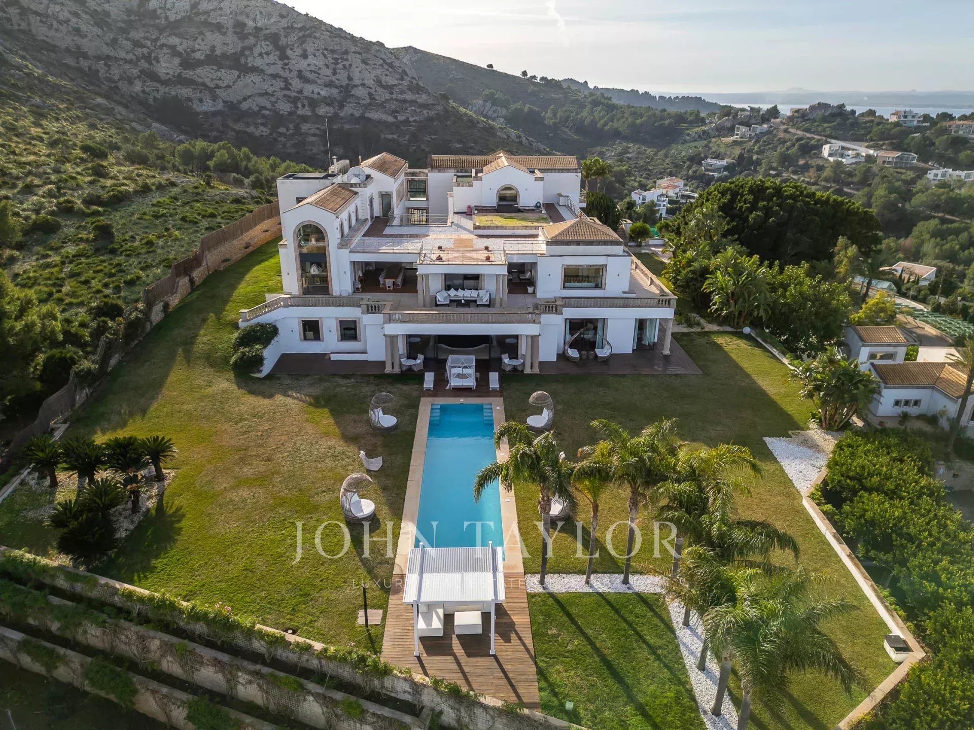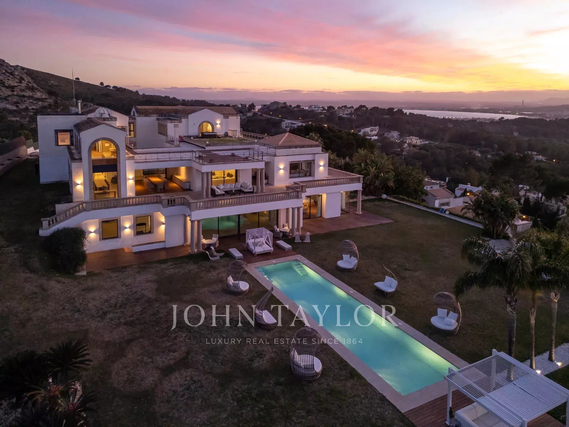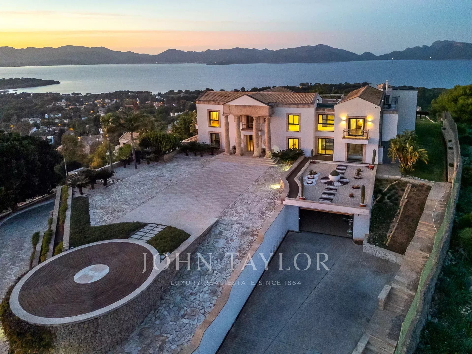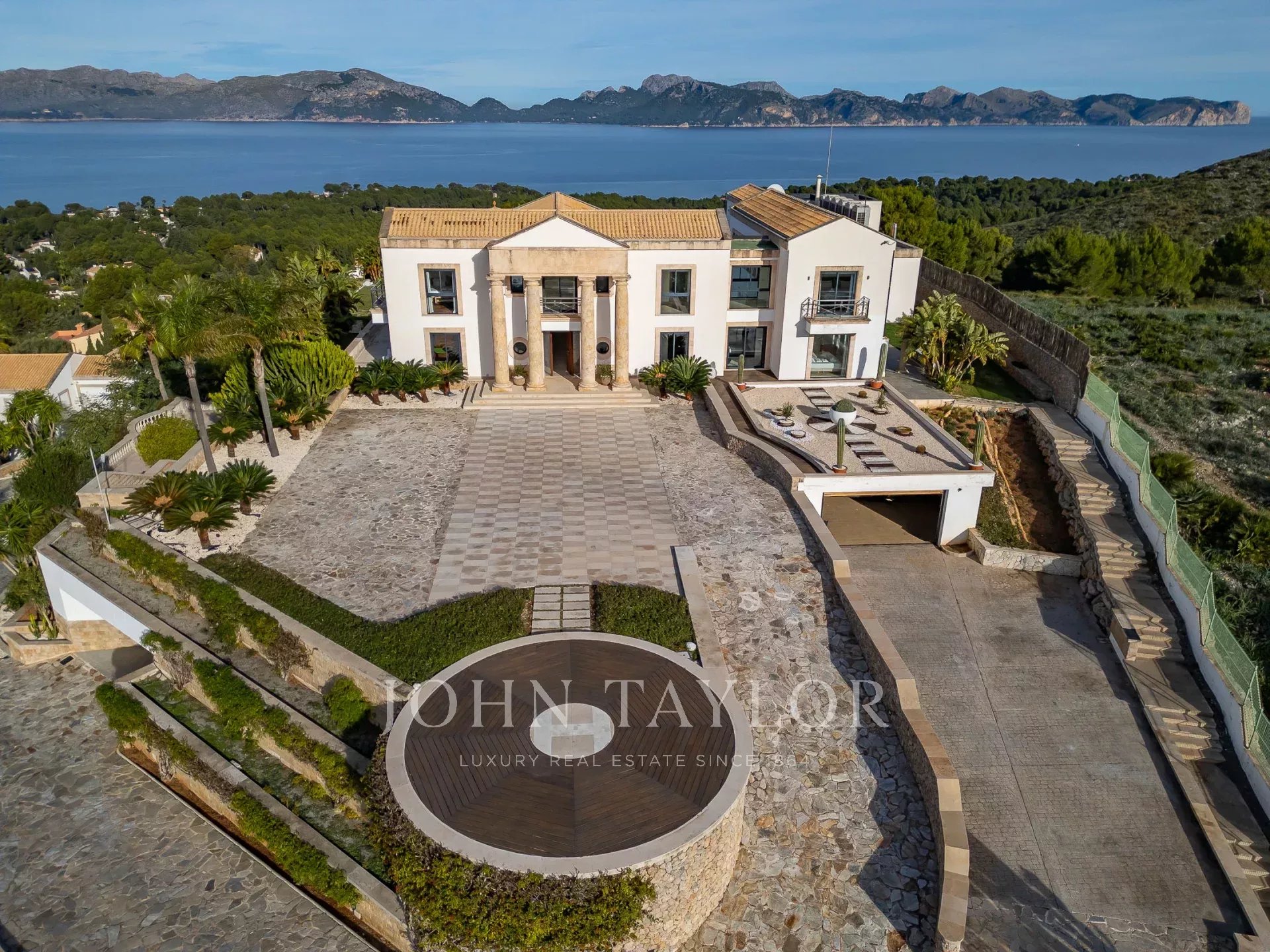 Magnificent Sea View Estate. Perched on the highest point of Mal Pas-Bonaire, Alcudia assuring the most spectacular seaviews over the bay of Pollensa this estate is truly unique and incomparable to anything in the North of Mallorca. Built to the highest specifications assuring the maximum of comfort and designed to impress, "Cielo de Bonaire" is an experience in itself. Built on three levels all connected via lift, the entry level offers an imposing entrance, games rooms, living room with cost fireplace, dining room, principal and secondary kitchens, guest bedroom with en suite bathroom and guest lavatory. The first floor includes the master suite including private living room and ensuite bathroom, two further bedrooms with ensuite bathrooms complete this area. The lower ground floor includes five bedrooms all with ensuite bathrooms, superb indoor heated pool, gym area, spa with turkish steam bath, sauna, jacuzzi and hydrotherapy shower. The exterior of the property offers an array of different areas for al fresco dining and entertaining to cater for both large or small scale groups, swimming pool, manicured mature gardens, tennis court, the "glasshouse" and heliport for direct air access to the property. The property is pefect not only for personal enjoyment but also for conventions, retreats or corporate presentations. Additional consierge services are available (subject to additional cost) such as helicopter hire, chauffeur, private chef, boat rental and babysitting to ensure a flawless experience for its guests. Local restaurants, beaches, yacht club and village are within 2kms. For golf lovers the closed course is 6km and the airport 60kms. For availability and further information please contact us directly to assist you with any information you may require.