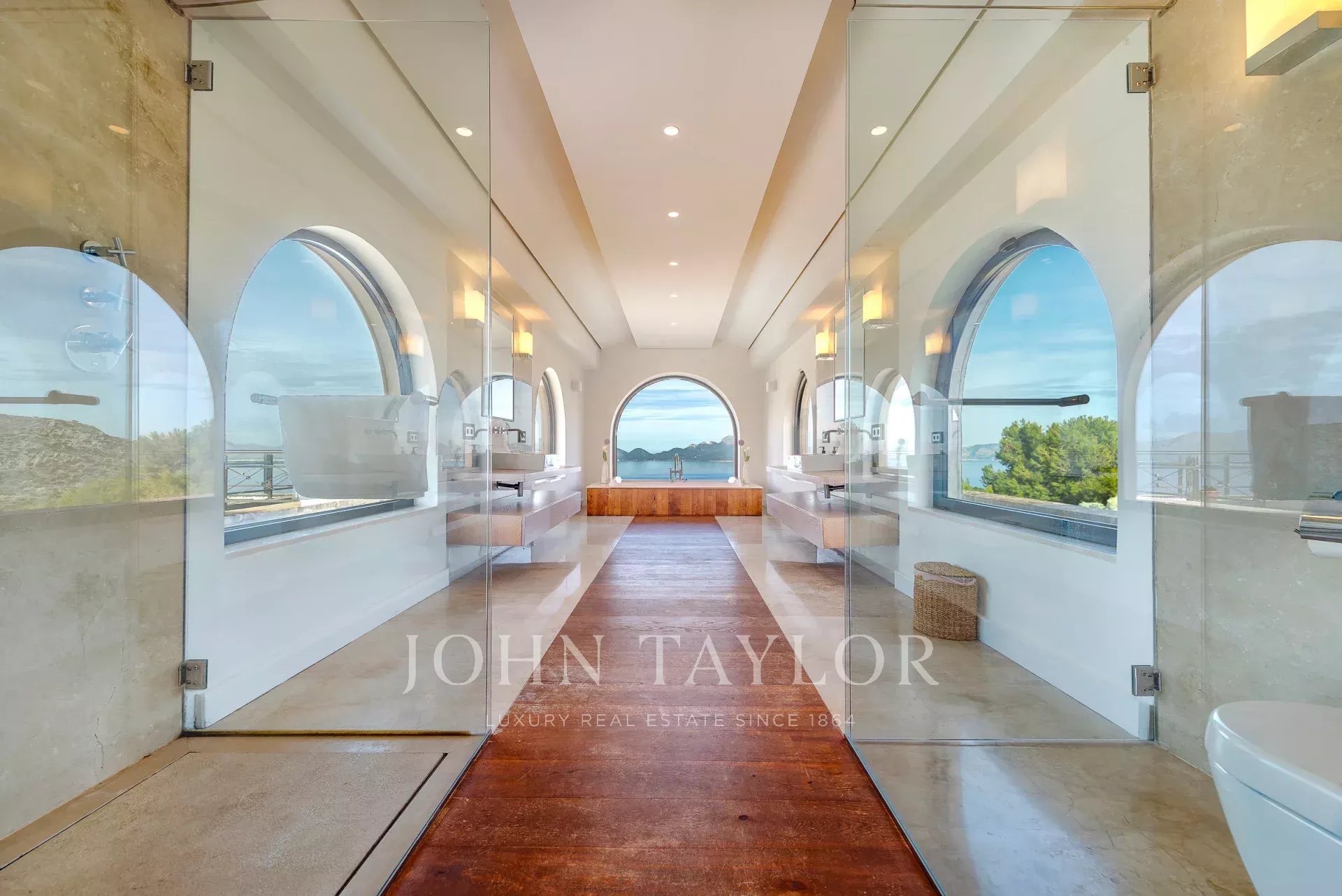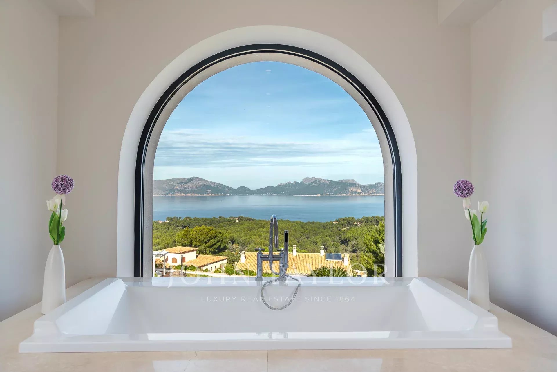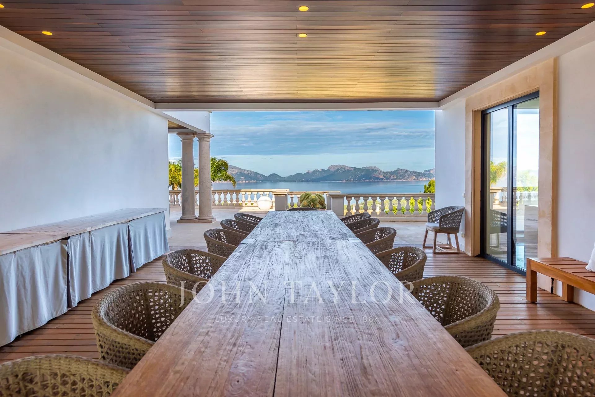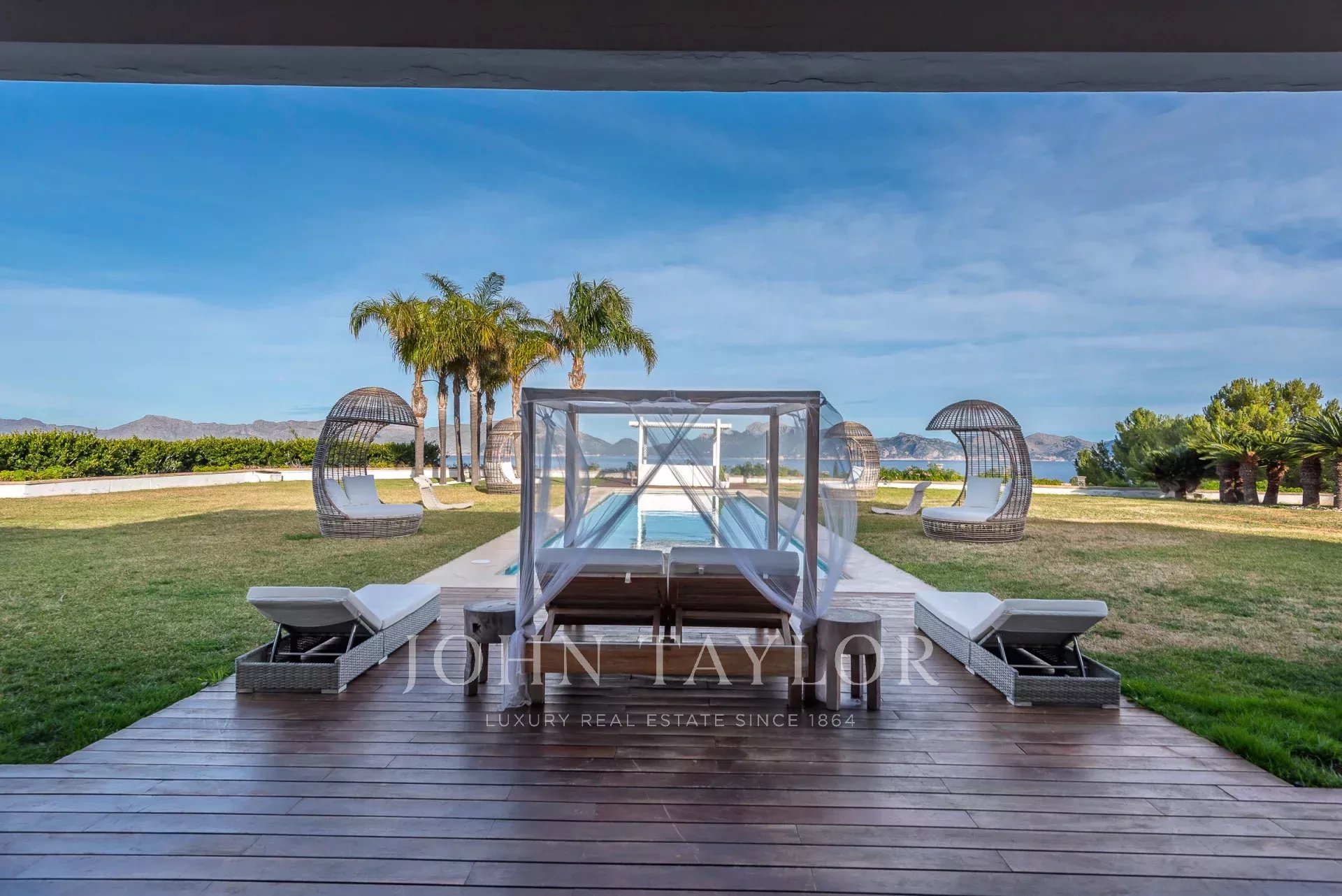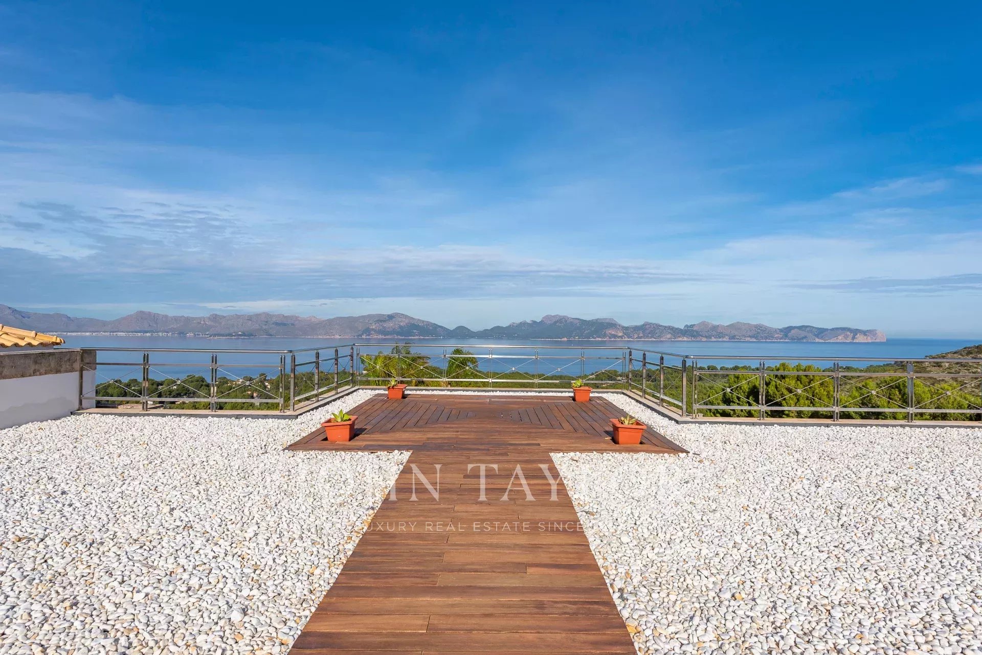 Magnificent Sea View Estate. Perched on the highest point of Mal Pas-Bonaire, Alcudia assuring the most spectacular seaviews over the bay of Pollensa this estate is truly unique and incomparable to anything in the North of Mallorca. Built to the highest specifications assuring the maximum of comfort and designed to impress, "Cielo de Bonaire" is an experience in itself. Built on three levels all connected via lift, the entry level offers an imposing entrance, games rooms, living room with cost fireplace, dining room, principal and secondary kitchens, guest bedroom with en suite bathroom and guest lavatory. The first floor includes the master suite including private living room and ensuite bathroom, two further bedrooms with ensuite bathrooms complete this area. The lower ground floor includes five bedrooms all with ensuite bathrooms, superb indoor heated pool, gym area, spa with turkish steam bath, sauna, jacuzzi and hydrotherapy shower. The exterior of the property offers an array of different areas for al fresco dining and entertaining to cater for both large or small scale groups, swimming pool, manicured mature gardens, tennis court, the "glasshouse" and heliport for direct air access to the property. The property is pefect not only for personal enjoyment but also for conventions, retreats or corporate presentations. Additional consierge services are available (subject to additional cost) such as helicopter hire, chauffeur, private chef, boat rental and babysitting to ensure a flawless experience for its guests. Local restaurants, beaches, yacht club and village are within 2kms. For golf lovers the closed course is 6km and the airport 60kms. For availability and further information please contact us directly to assist you with any information you may require.