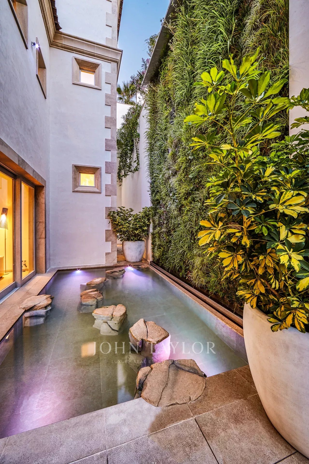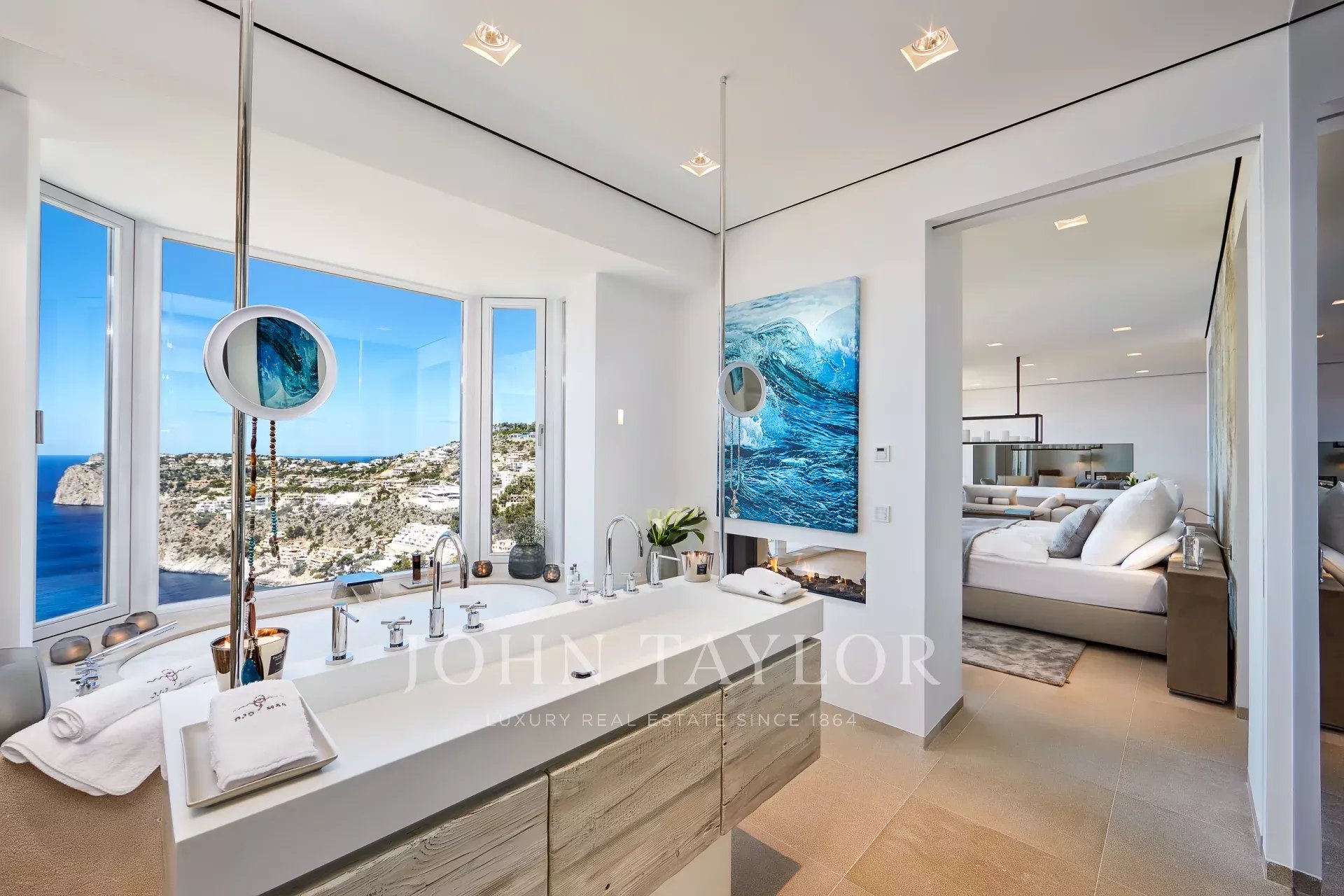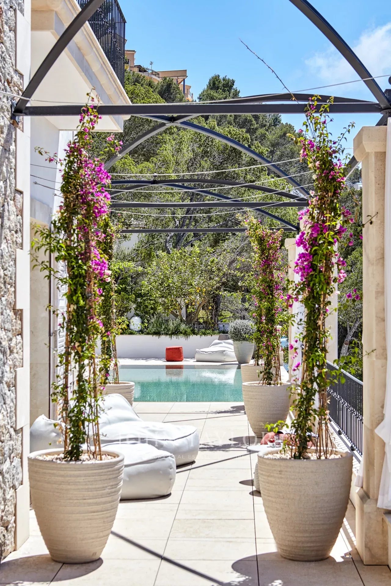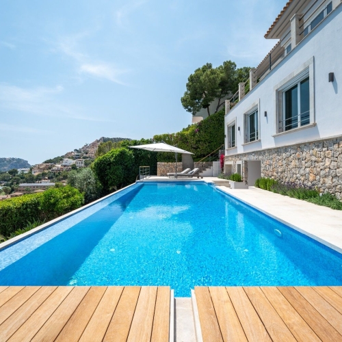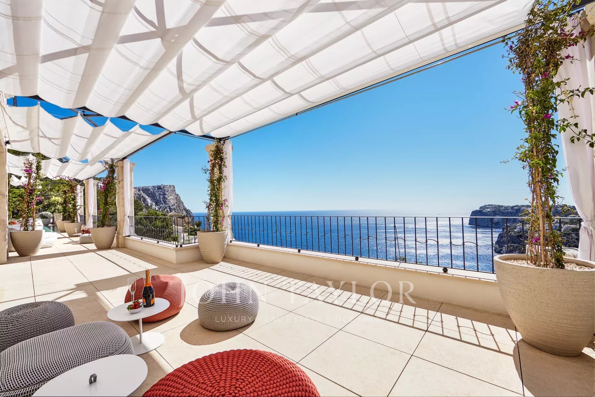 Stunning Sea View Villa in Cala Llamp This luxurious property is situated in a sought-after location above the bay of Cala Llamp and offers breathtaking panoramic sea views. The villa has a constructed area of 700m2 on three levels. On the ground floor, there is an elegant entrance hall leading to the TV lounge, living room, dining room, and kitchen. The spacious living area is extended through the pergolas onto the terraces, where there are two outdoor kitchens with barbecue grills and a large dining table as well as a bathroom. Another highlight is the 60m2 infinity pool. The outdoor area is designed to allow you to perfectly enjoy the Mediterranean climate. The upper floor can be reached via the lift or the elegantly lit staircase, where the sleeping area is located. This consists of two bedrooms with en-suite bathrooms and a comfortable master suite. This consists of an anteroom, a spacious sleeping area, and a luxurious bathroom with a bathtub in the bay window. In the basement, in addition to the 100m2 garage, which offers space for at least 5 cars, there is a bodega, a fitness area with sauna, a home cinema, a service bedroom with en-suite bathroom, a further bathroom, a laundry room, a utility room, and a storage room. The property will be sold including the furniture. Photos courtesy of Marco Richter. The Port of Andrach (officially and in Catalan Port d'Andratx) is a natural port of the Balearic Islands, surrounded by coves with transparent waters such as Cala Llamp, Cala Moragues, and Cala d'Egos. This modern port town, with 3,000 inhabitants, has gone from being a former fishermen's refuge to being one of the most important and visited tourist centers in Mallorca, thanks to its nautical activity, which is conducive to very exclusive residential tourism. El Puerto is a cosmopolitan and lively place, where many cultures mix and shopping, sun, and nightlife are combined. It also offers an infinity of activities related to the sea. However, it has one of the best-equipped marinas on the Islands, the Puerto de Andrach Sailing Club, with about 500 berths occupied by sports and pleasure boats. Shops and restaurants with pleasant terraces overlooking the sea overlook the promenade, which leads to the lighthouse and the Club de Vela, passing through the small torrent des Saluet. The Port of Andrach has a select hotel infrastructure and also some of the most renowned establishments in the island's gastronomic offer. In the afternoon, it becomes one of the liveliest areas of the municipality. From the port, it is possible to go to Sa Mola, from where you can admire a splendid sunset and the open sea with the island of Dragonera.