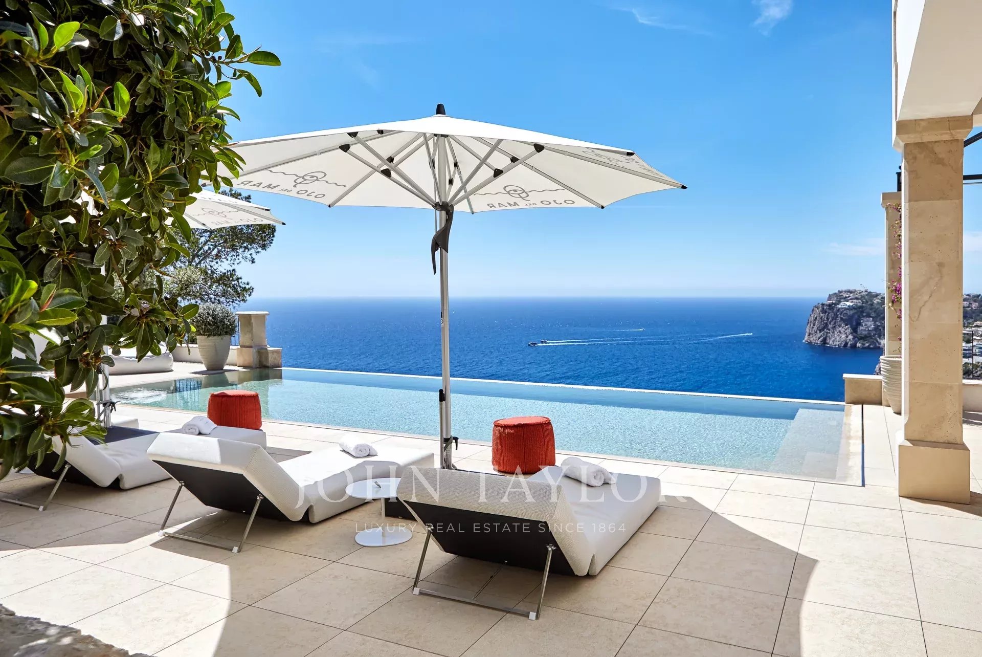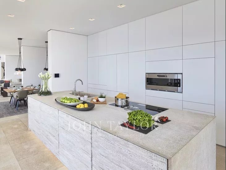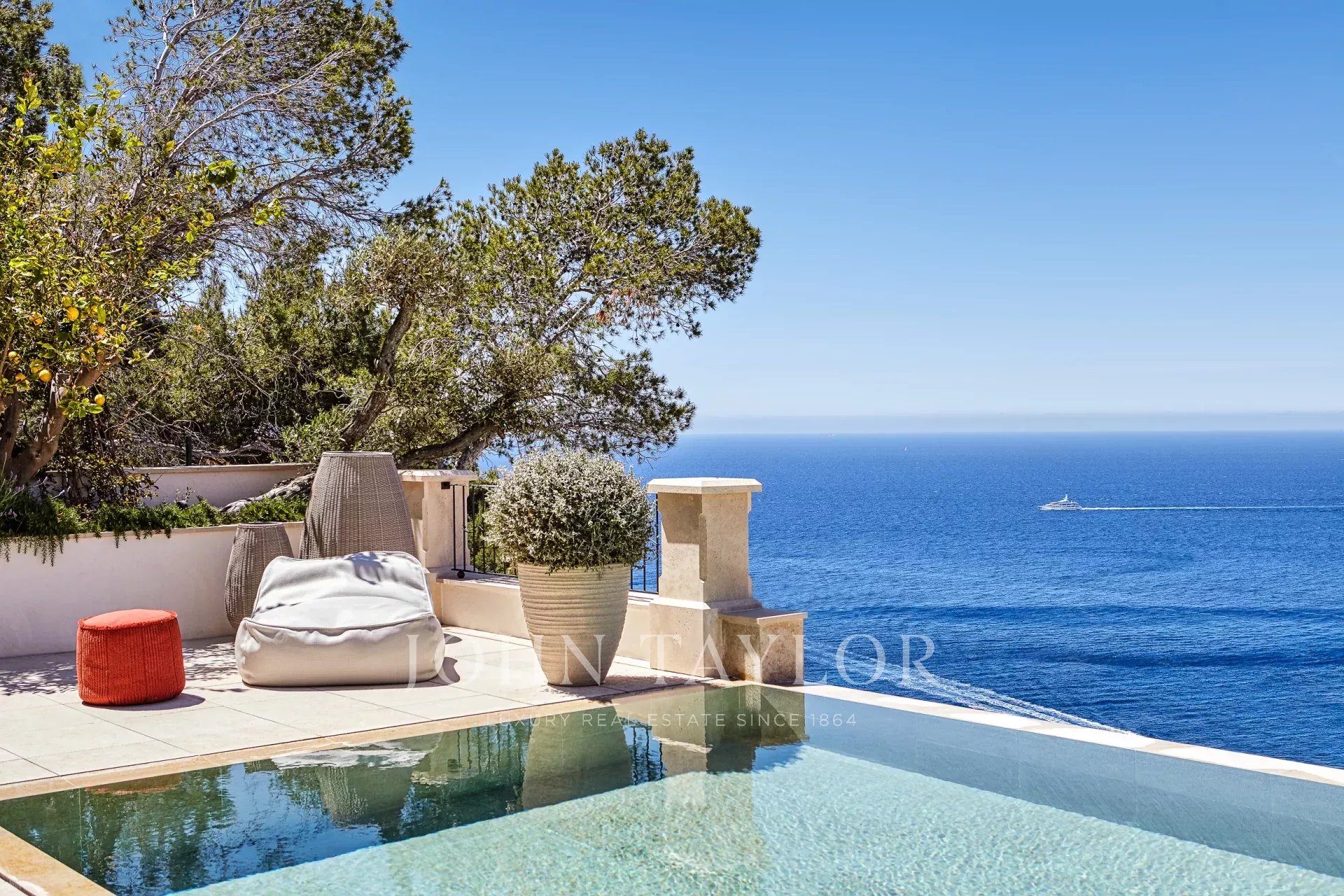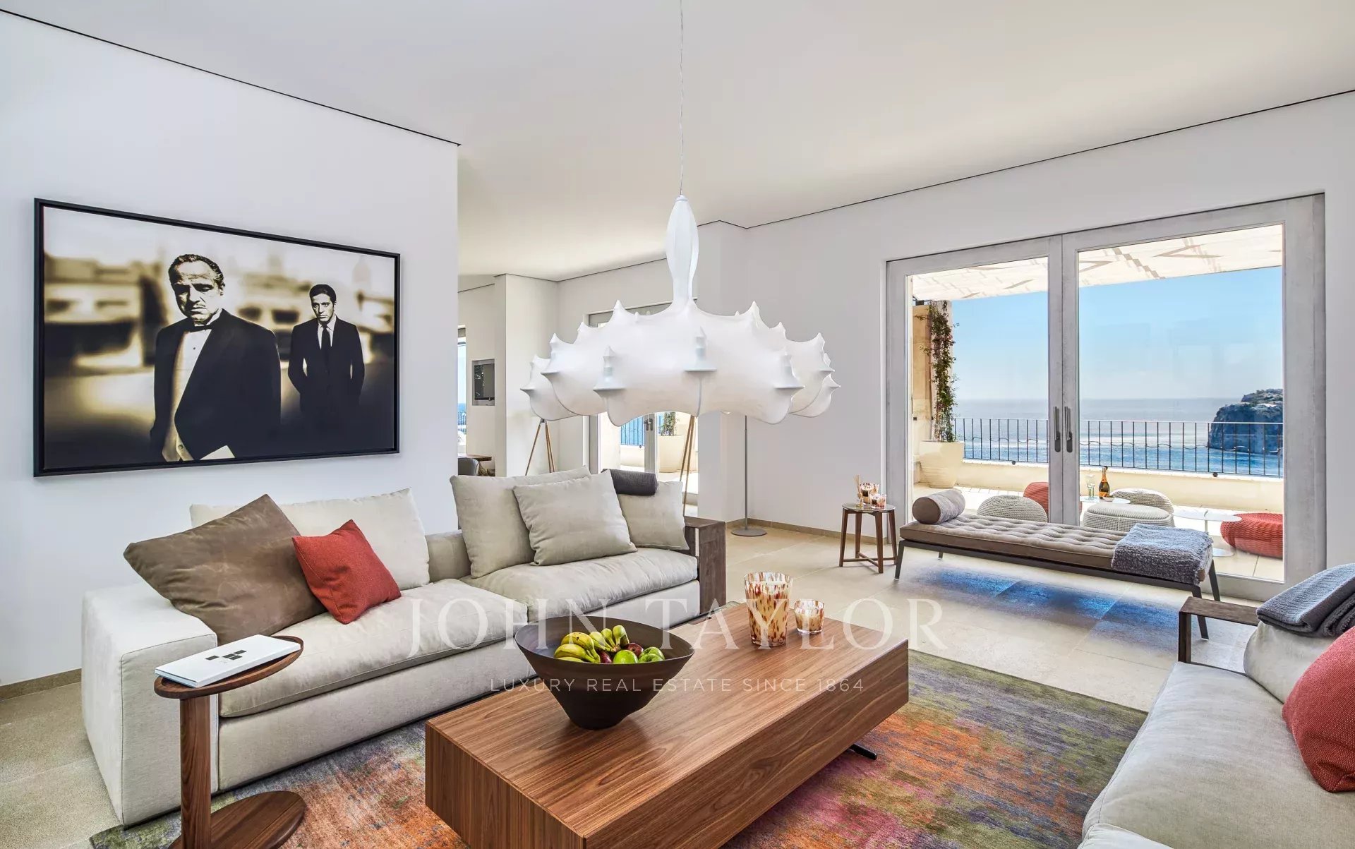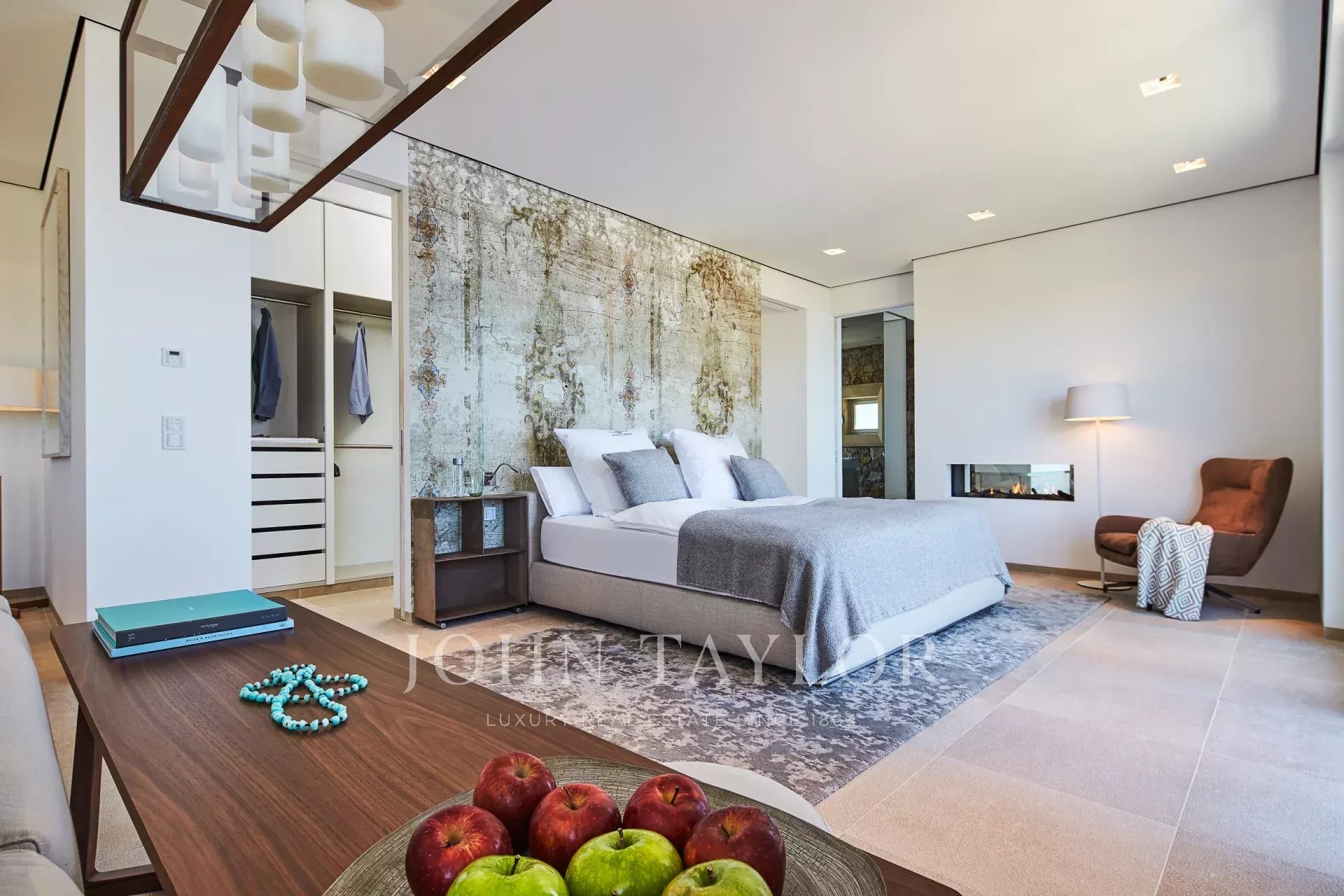 Stunning Sea View Villa in Cala Llamp This luxurious property is situated in a sought-after location above the bay of Cala Llamp and offers breathtaking panoramic sea views. The villa has a constructed area of 700m2 on three levels. On the ground floor, there is an elegant entrance hall leading to the TV lounge, living room, dining room, and kitchen. The spacious living area is extended through the pergolas onto the terraces, where there are two outdoor kitchens with barbecue grills and a large dining table as well as a bathroom. Another highlight is the 60m2 infinity pool. The outdoor area is designed to allow you to perfectly enjoy the Mediterranean climate. The upper floor can be reached via the lift or the elegantly lit staircase, where the sleeping area is located. This consists of two bedrooms with en-suite bathrooms and a comfortable master suite. This consists of an anteroom, a spacious sleeping area, and a luxurious bathroom with a bathtub in the bay window. In the basement, in addition to the 100m2 garage, which offers space for at least 5 cars, there is a bodega, a fitness area with sauna, a home cinema, a service bedroom with en-suite bathroom, a further bathroom, a laundry room, a utility room, and a storage room. The property will be sold including the furniture. Photos courtesy of Marco Richter. The Port of Andrach (officially and in Catalan Port d'Andratx) is a natural port of the Balearic Islands, surrounded by coves with transparent waters such as Cala Llamp, Cala Moragues, and Cala d'Egos. This modern port town, with 3,000 inhabitants, has gone from being a former fishermen's refuge to being one of the most important and visited tourist centers in Mallorca, thanks to its nautical activity, which is conducive to very exclusive residential tourism. El Puerto is a cosmopolitan and lively place, where many cultures mix and shopping, sun, and nightlife are combined. It also offers an infinity of activities related to the sea. However, it has one of the best-equipped marinas on the Islands, the Puerto de Andrach Sailing Club, with about 500 berths occupied by sports and pleasure boats. Shops and restaurants with pleasant terraces overlooking the sea overlook the promenade, which leads to the lighthouse and the Club de Vela, passing through the small torrent des Saluet. The Port of Andrach has a select hotel infrastructure and also some of the most renowned establishments in the island's gastronomic offer. In the afternoon, it becomes one of the liveliest areas of the municipality. From the port, it is possible to go to Sa Mola, from where you can admire a splendid sunset and the open sea with the island of Dragonera.
